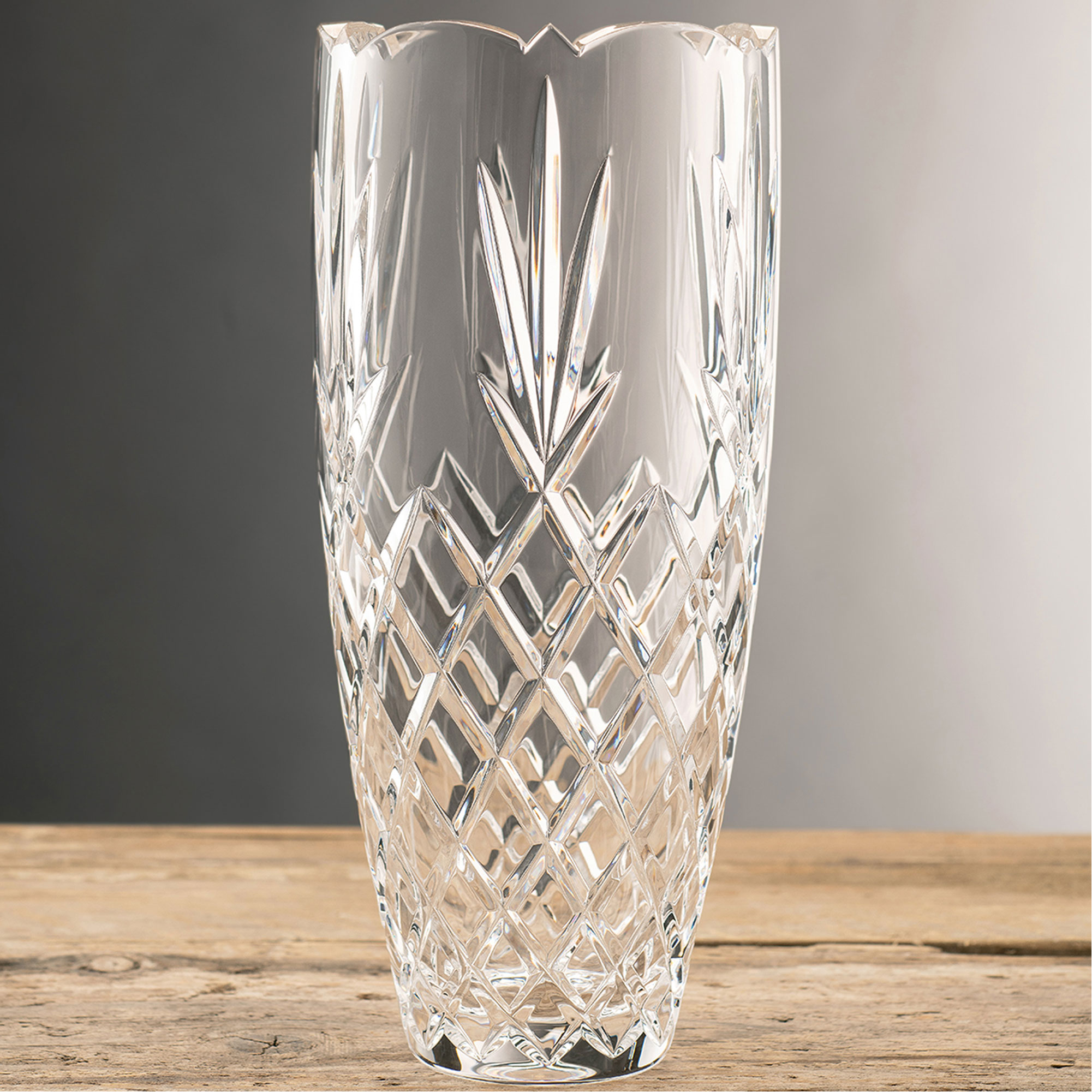 Renmore, or An Rhinn Mhór in Gaelic, is the beautiful range from Galway Crystal designed for everyday use. The stunning Renmore Vase will make the perfect statement piece for your table this season. With its beautiful cut, the vase can be completely functional or used as a centrepiece.