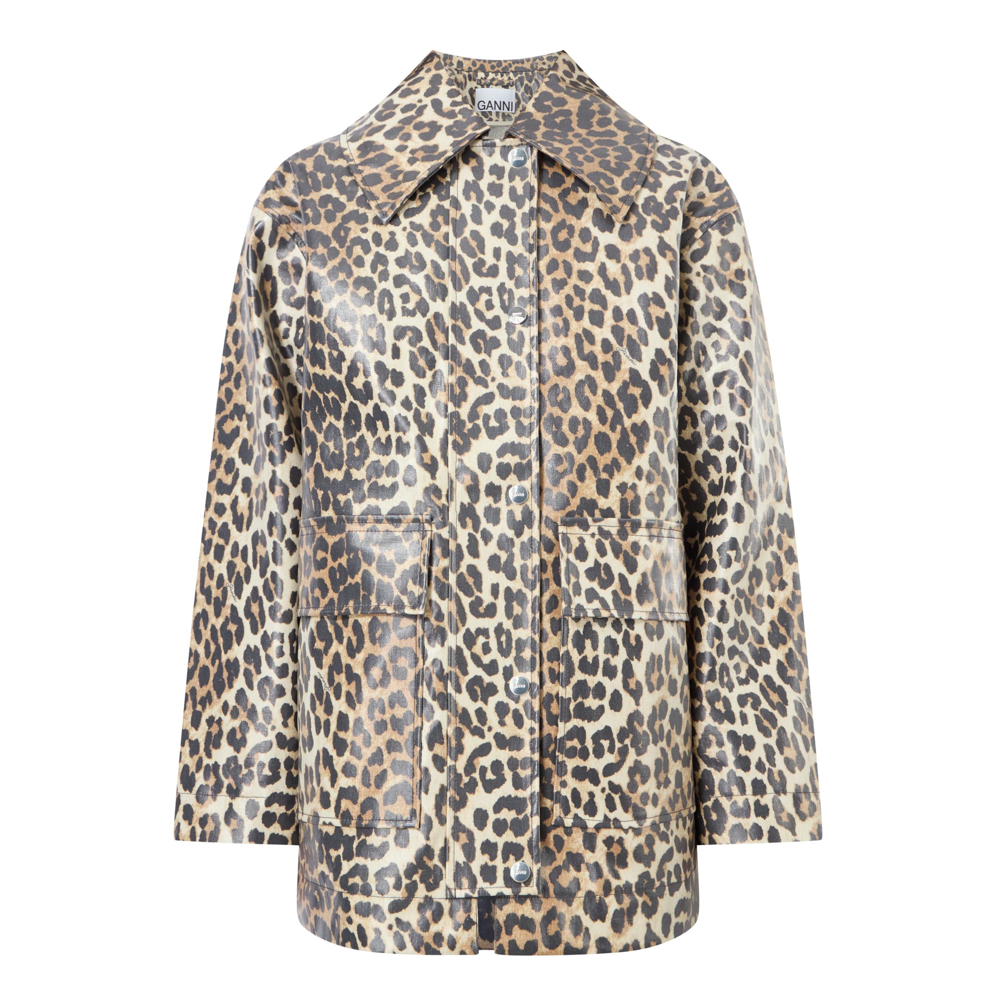 GANNI Laminated Leopard Print Coat