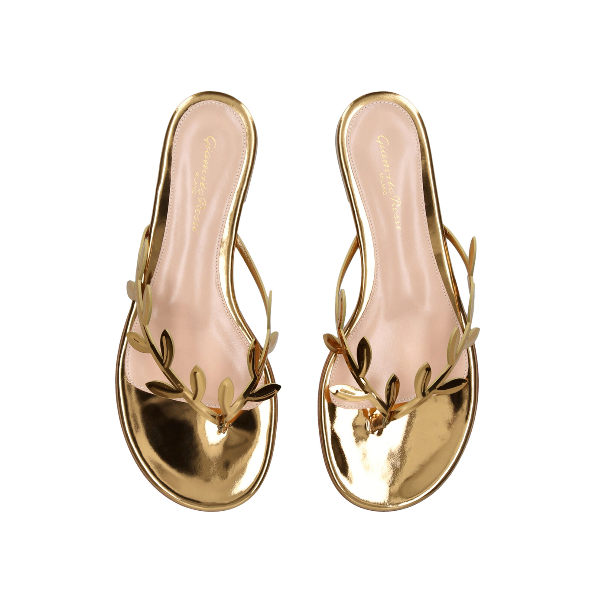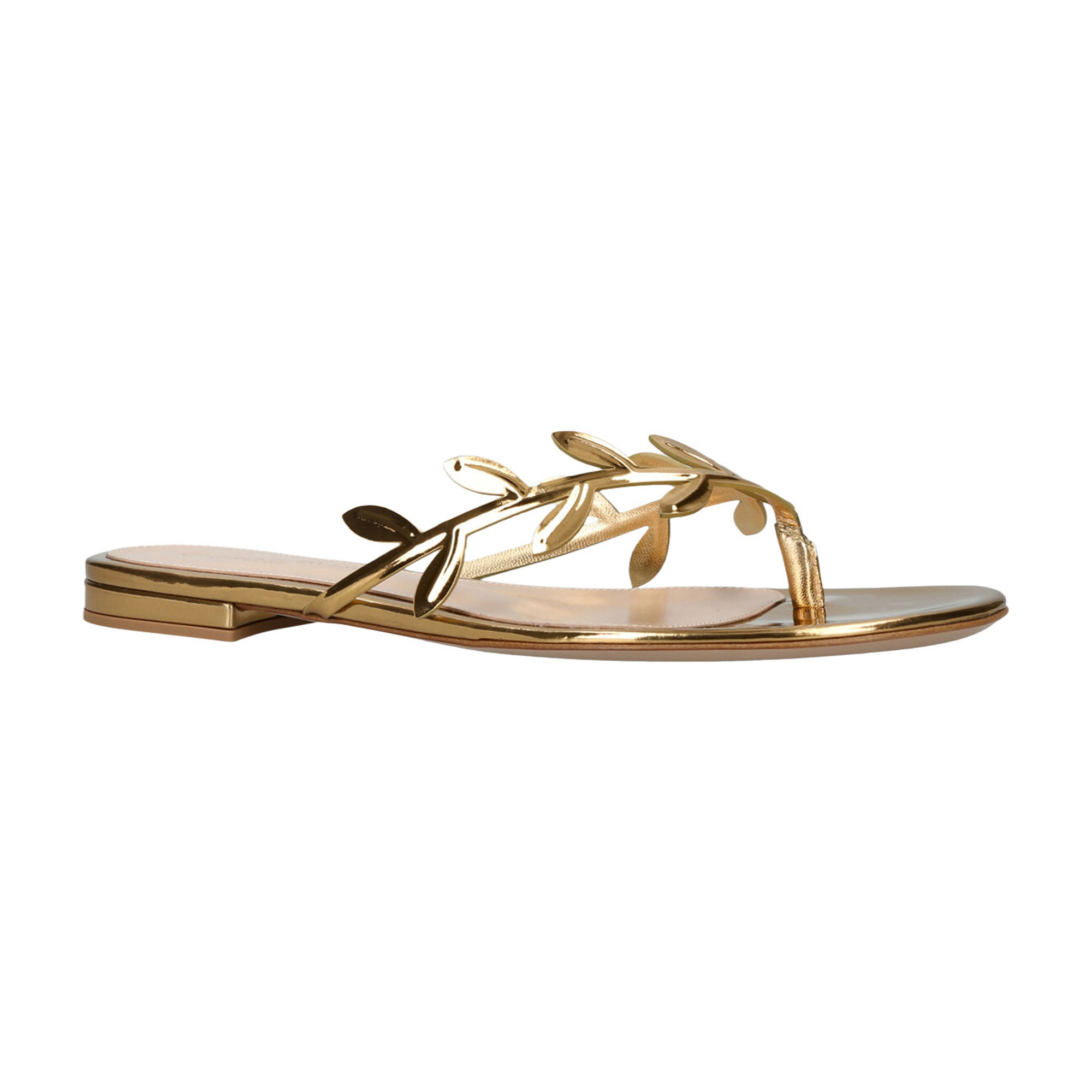 Founded in Milan in 2006, Gianvito Rossi creates beautiful footwear with a timeless aesthetic. These flat sandals from the collection feature a slip-on design, enhanced with gold-tone leaf detailing for a statement finish.