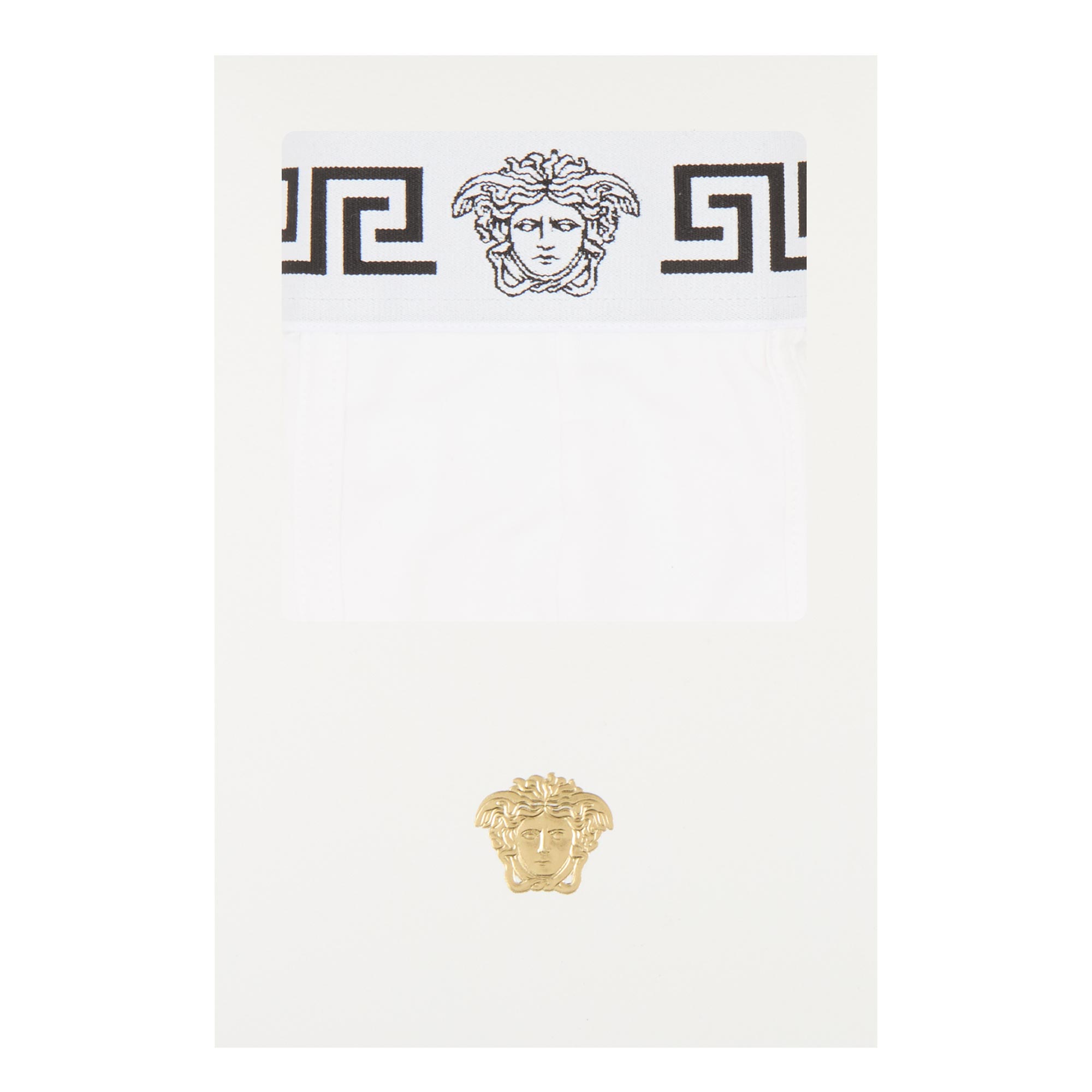 - One pair, elasticated waistband with Greca border, Medusa head logo, low-rise, seamed pouch