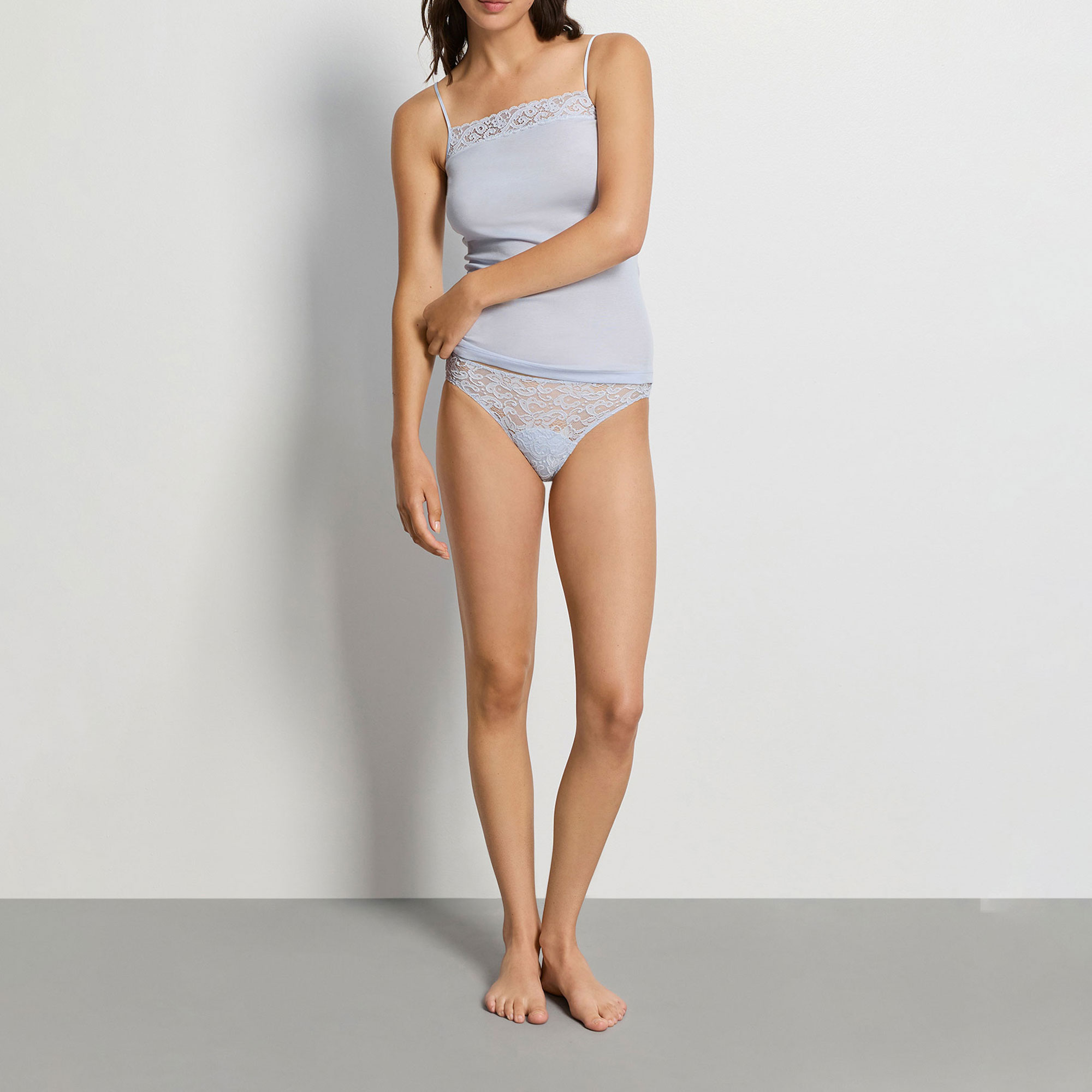 - Composition and Care: Main: 82% polyamide, 18% elastane. Back: 67% cotton, 33% elastane. Lace: 90% polyamide, 10% elastane. Machine wash at 40 degrees