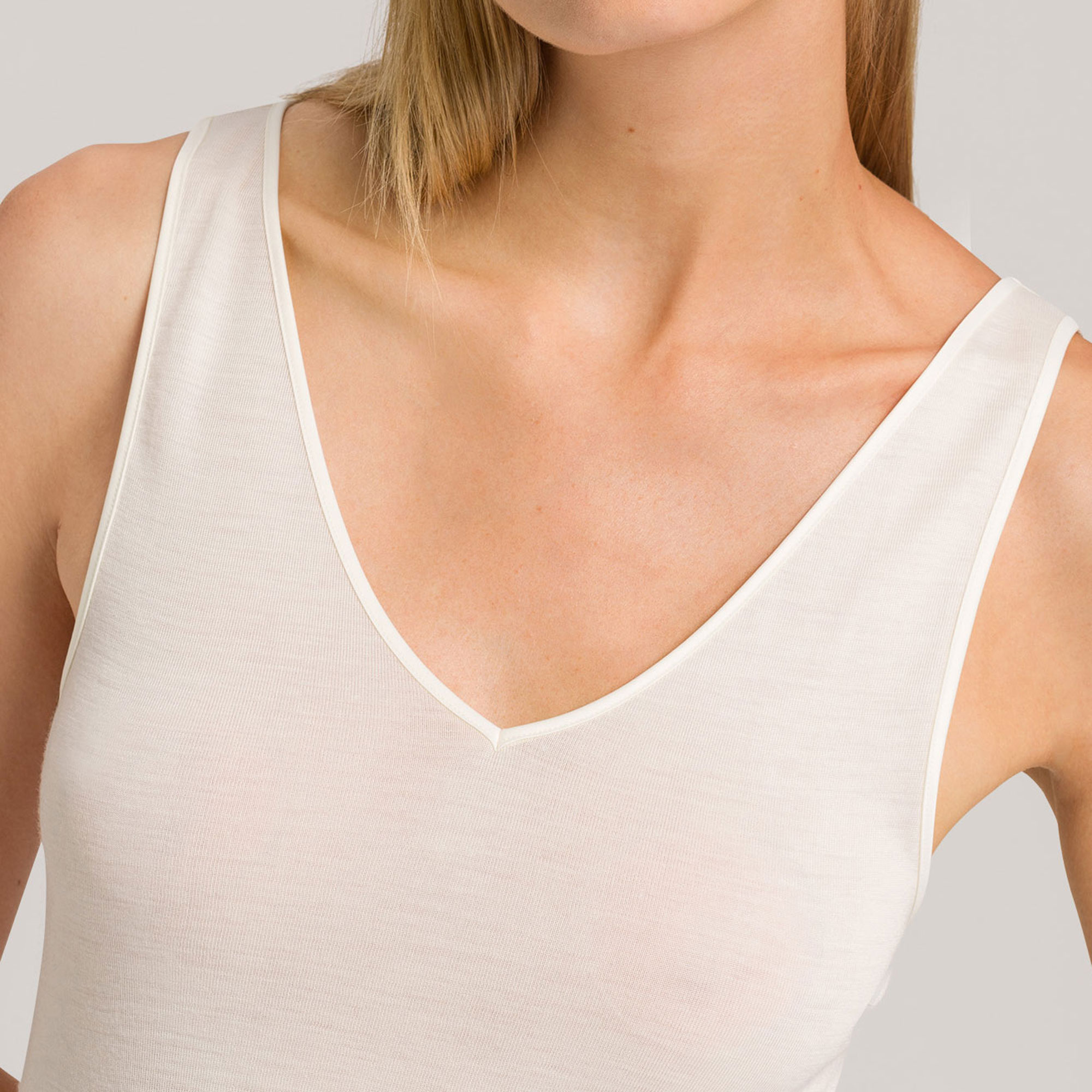 Ideal for everyday wear, this luxuriously soft tank top from Hanro has been created from premium fabrics for a comfortable fit. A perfectly balanced blend of white wool and sumptuous silk ensures the Woollen Tank Top is a casual yet elegant classic staple for the modern wardrobe .