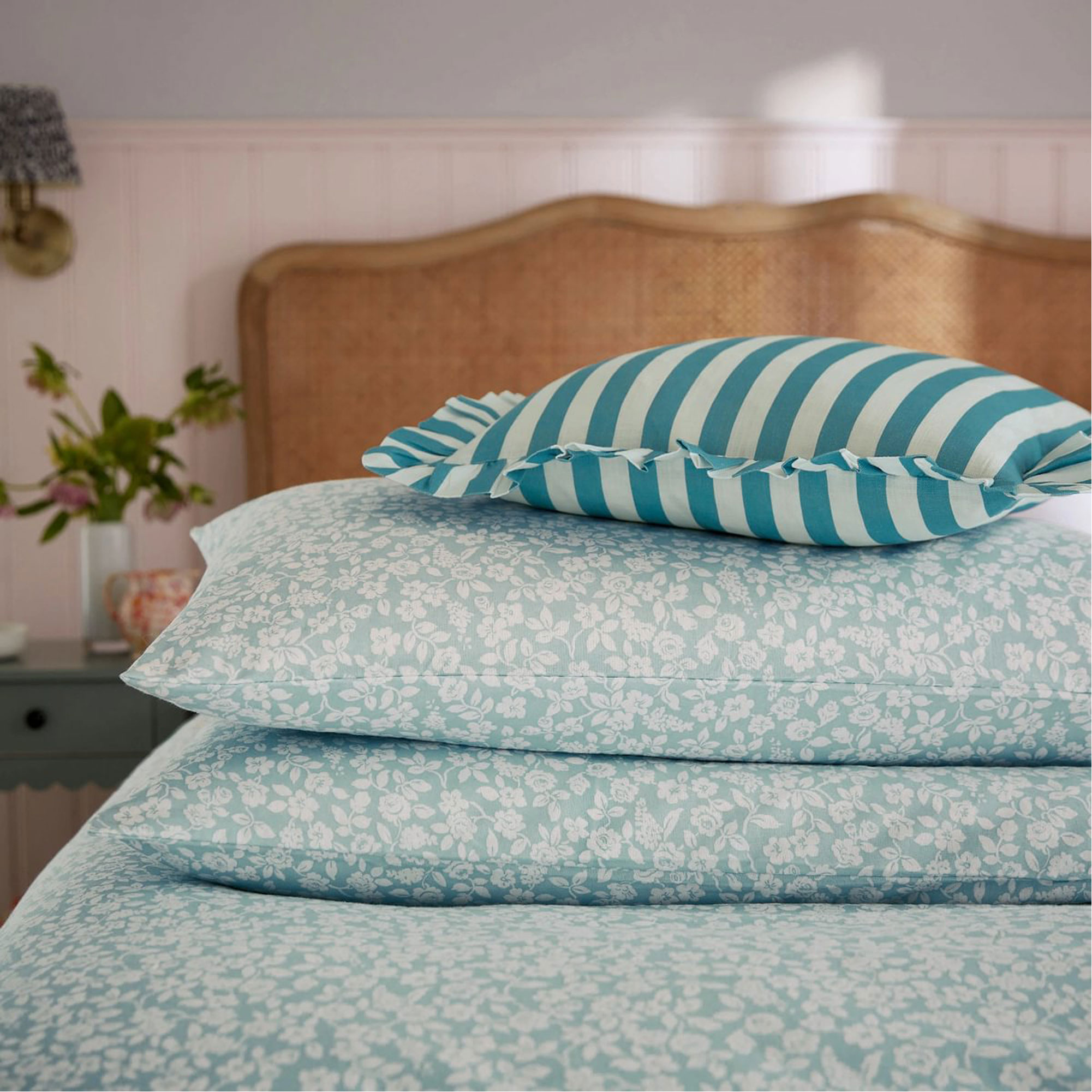 Soft, serene, and made for snuggling. Crafted from brushed cotton for a warm, fluffy feel, this charming bedding showcases a delicate floral print that adds a gentle, calming touch to your space. Fully reversible and effortlessly cosy, it pairs perfectly with the pink Candy Stripe cushion for a layered, lived-in look. Available Duvet Set includes pillowcase(s).