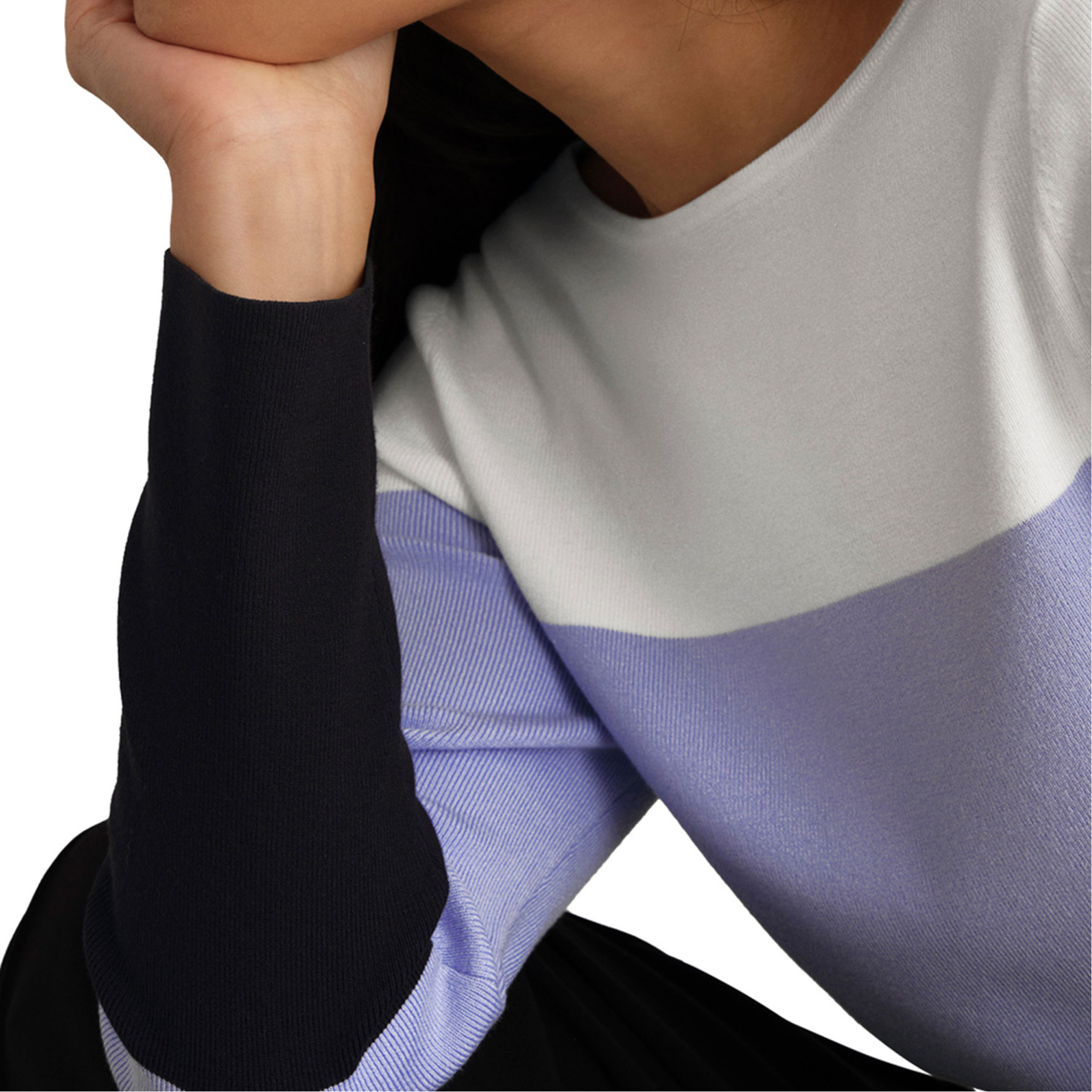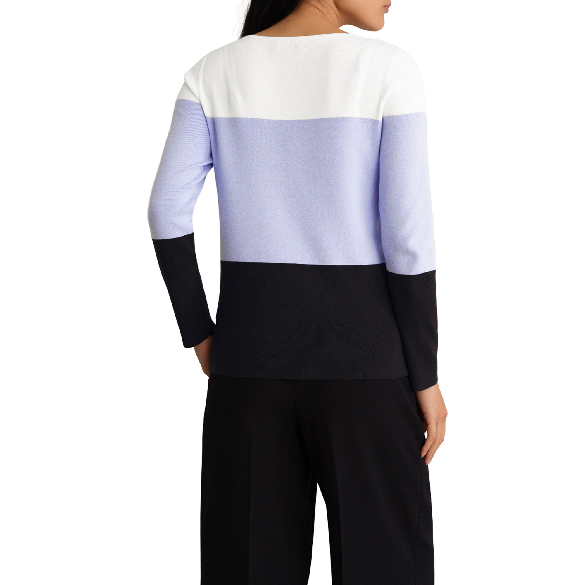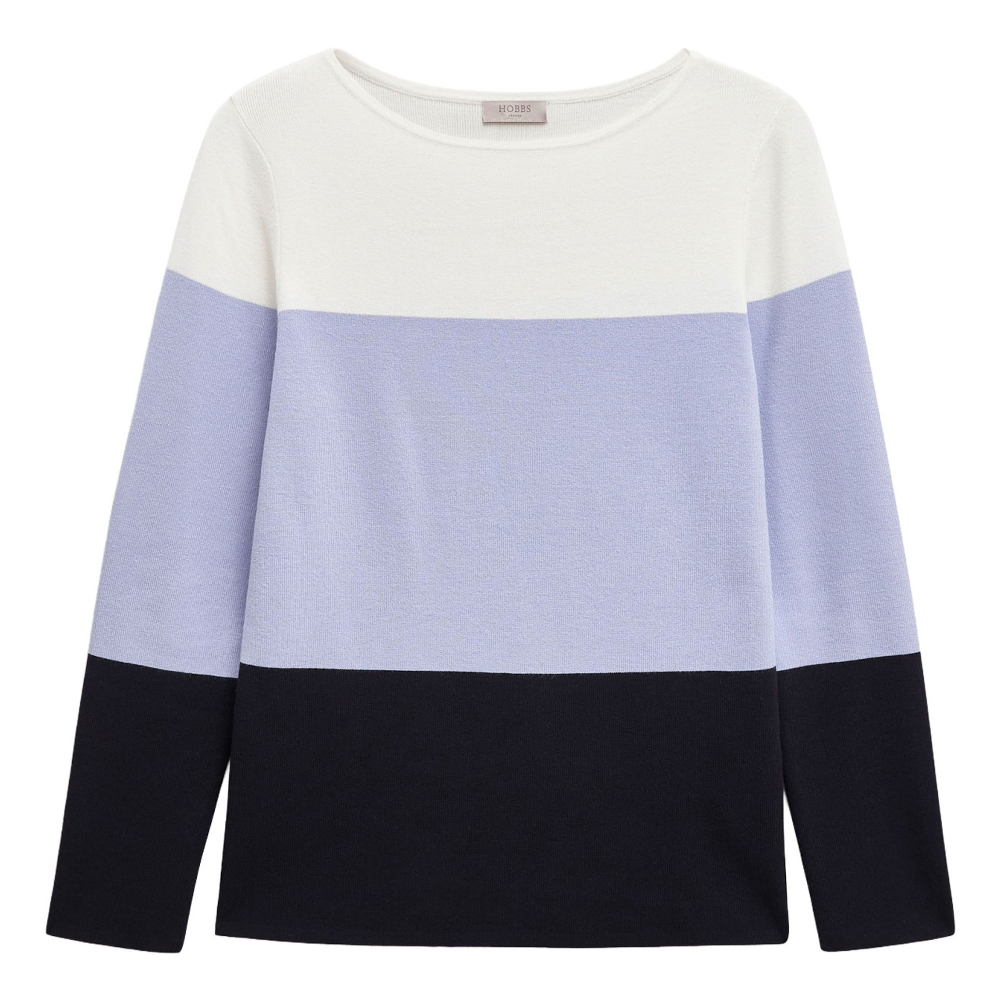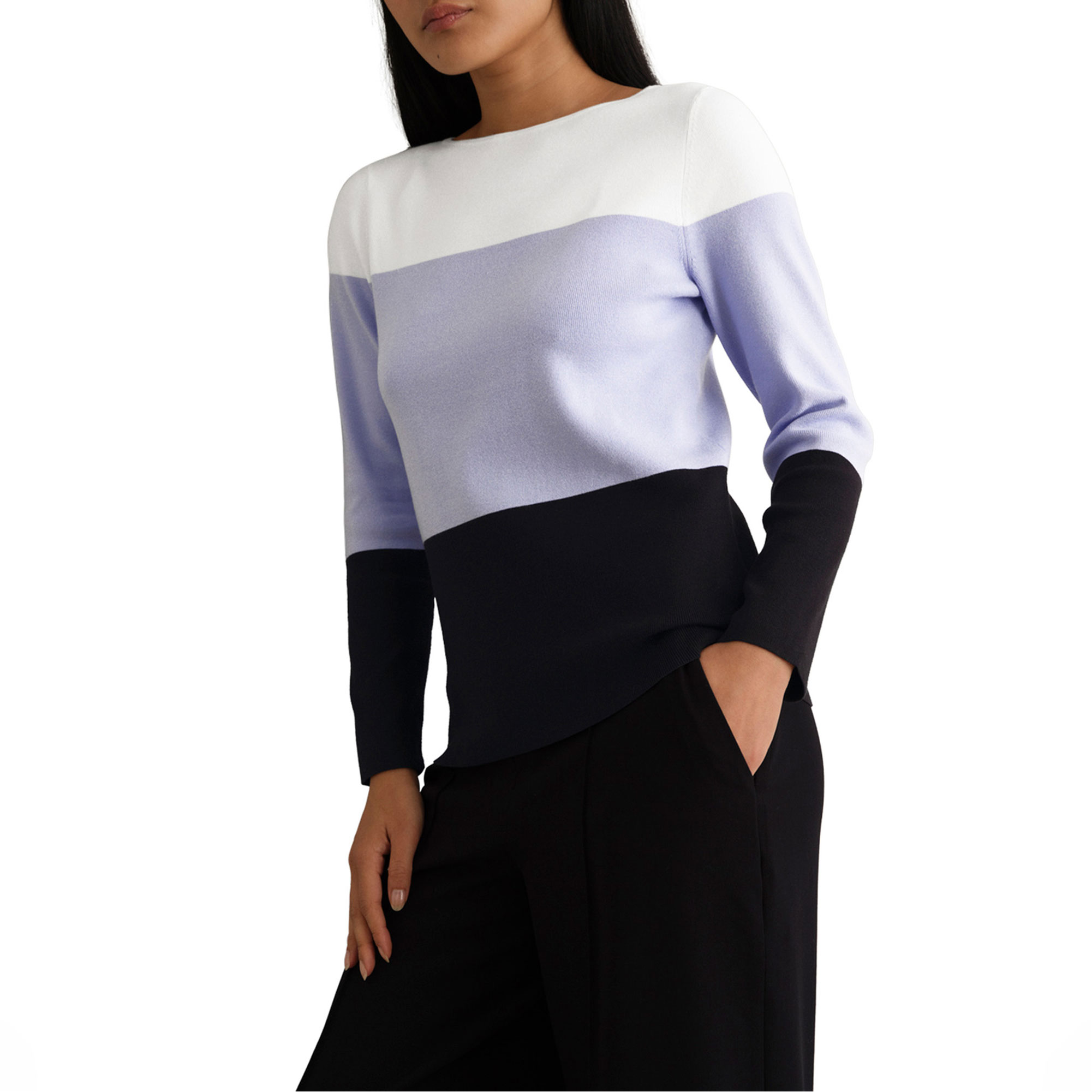 - Soft feel, colour-block design, bracelet-length sleeves, boat neckline