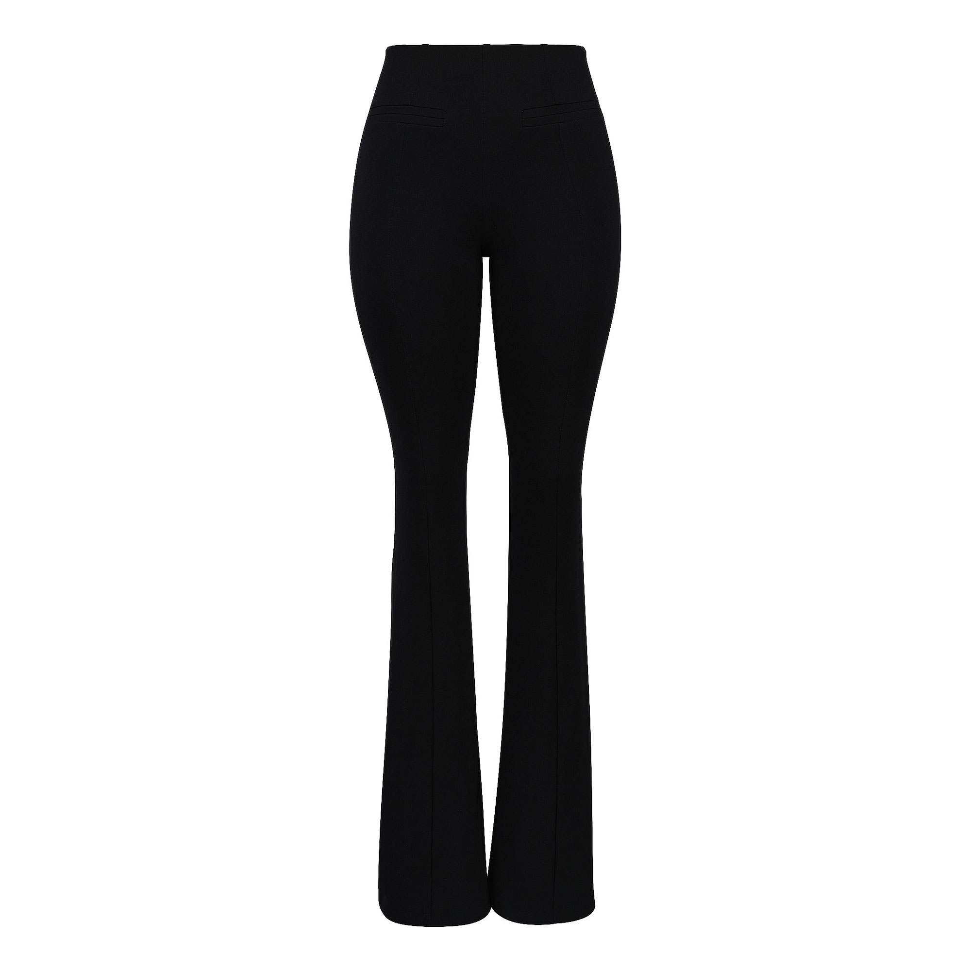 - Heavyweight jersey, added stretch in waistband, seamed detailing, flared cut, two faux welt pockets