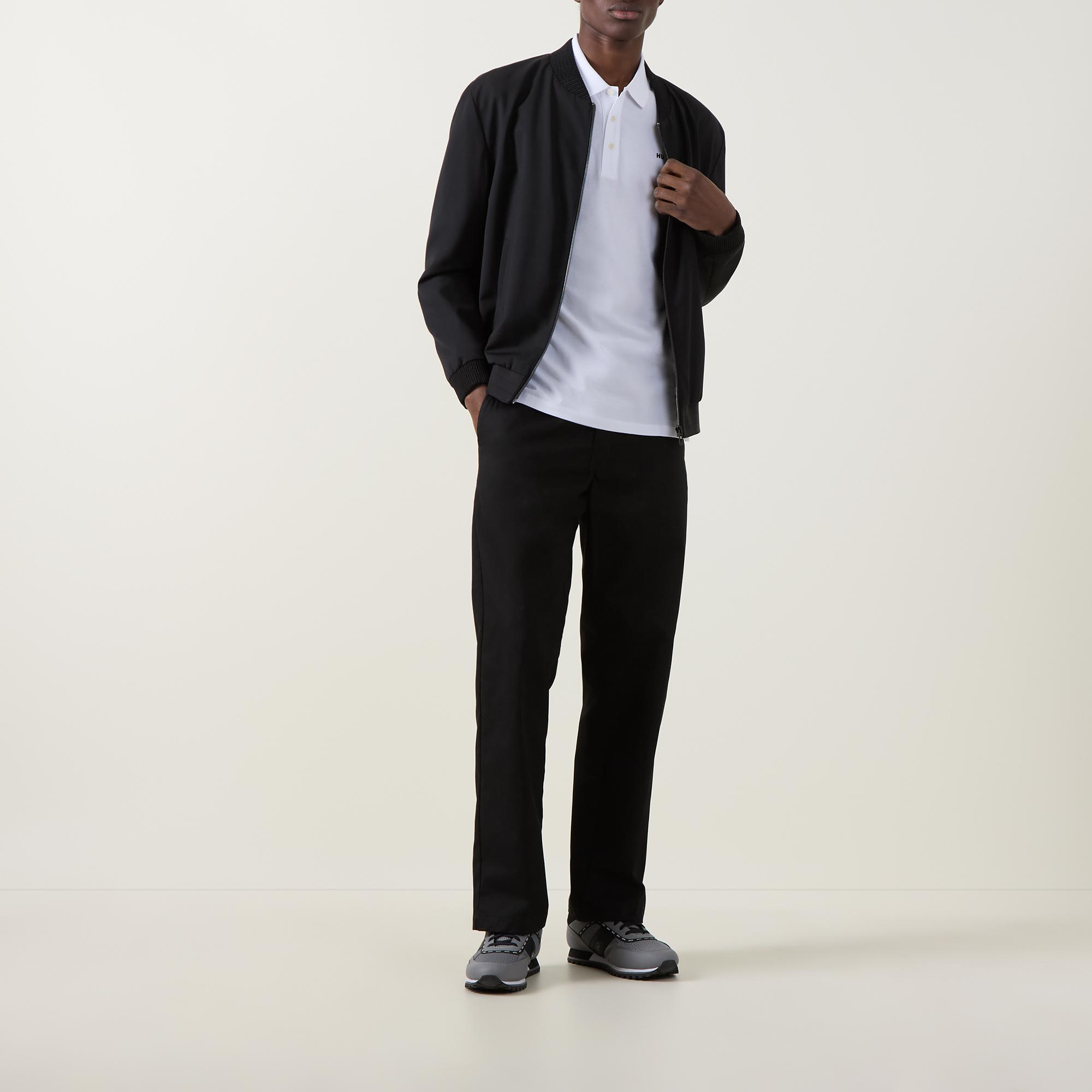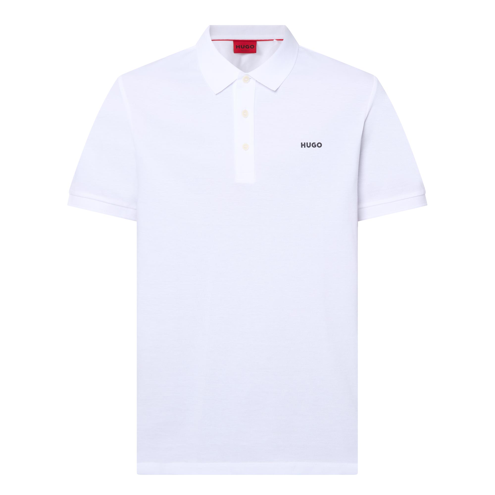 - Polo collar, short sleeves, straight hemline, logo detail, button fastenings