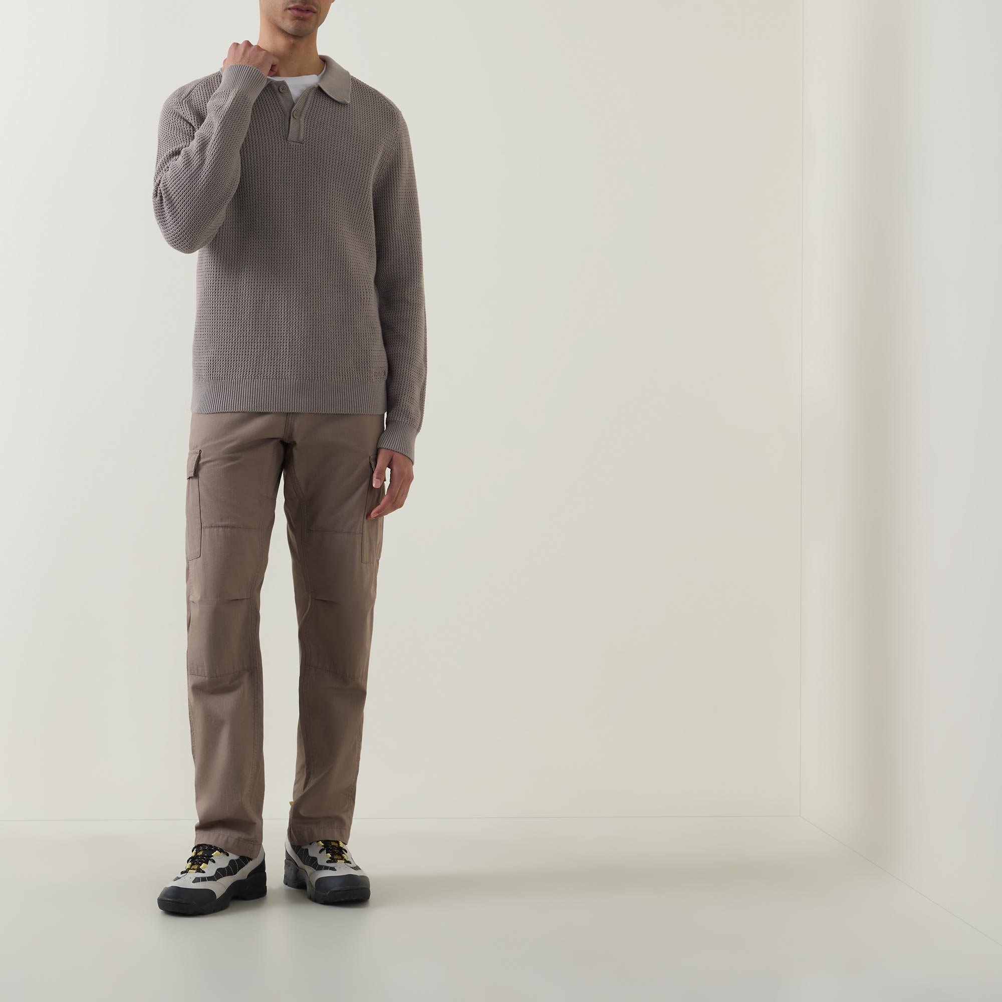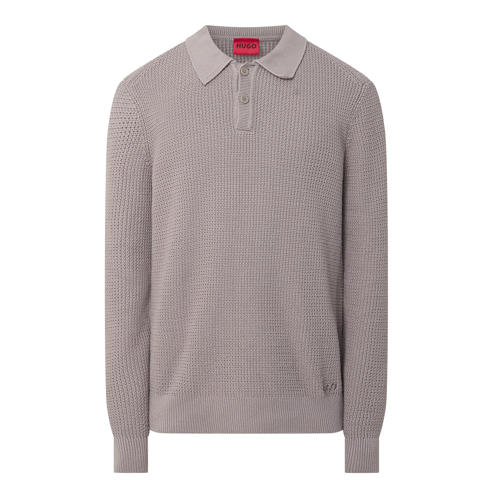 - Two-button polo placket, knitted, tonal logo detail, long sleeves, ribbed trims