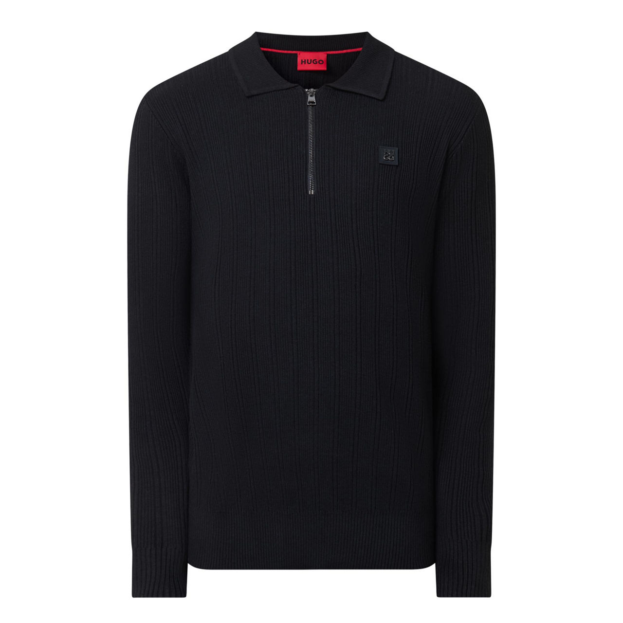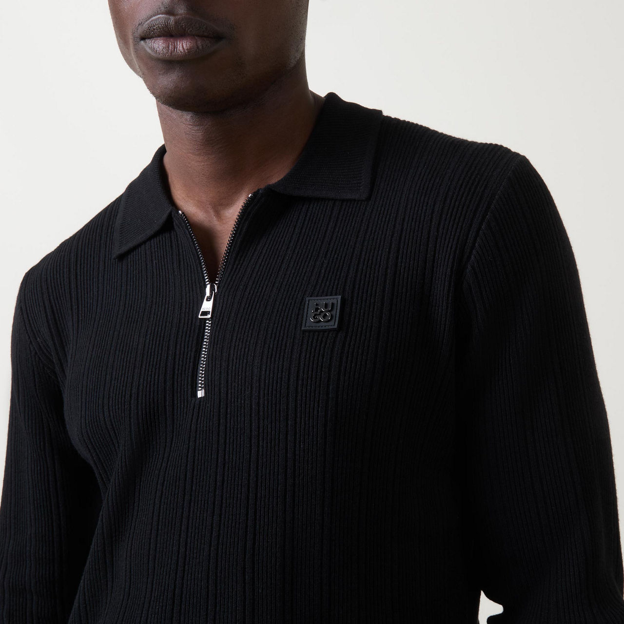 - Long sleeves, half zip fastening, polo collar, ribbed knit, logo badge, regular fit
