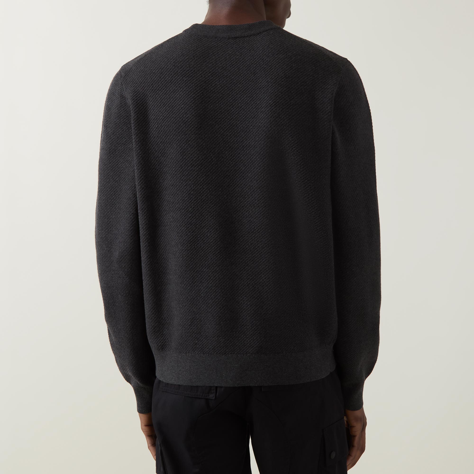 • Logo badge, crew neckline, straight hemline, ribbed trims, long sleeves