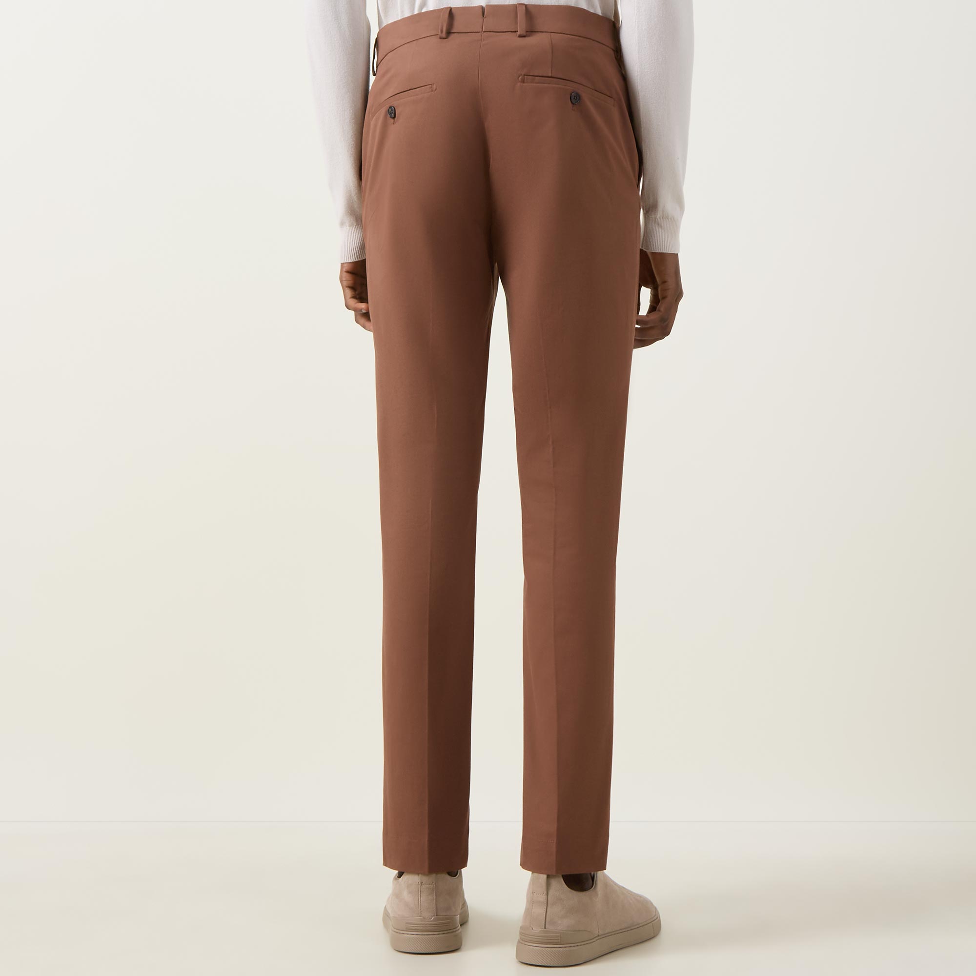 - Mid rise, slim leg, semi-elasticated waistband, belt loops, concealed fly and button fastening, two side in-seam pockets, two rear welt pockets with button fastenings, clean hems, tonal stitching, pressed creases, soft finish