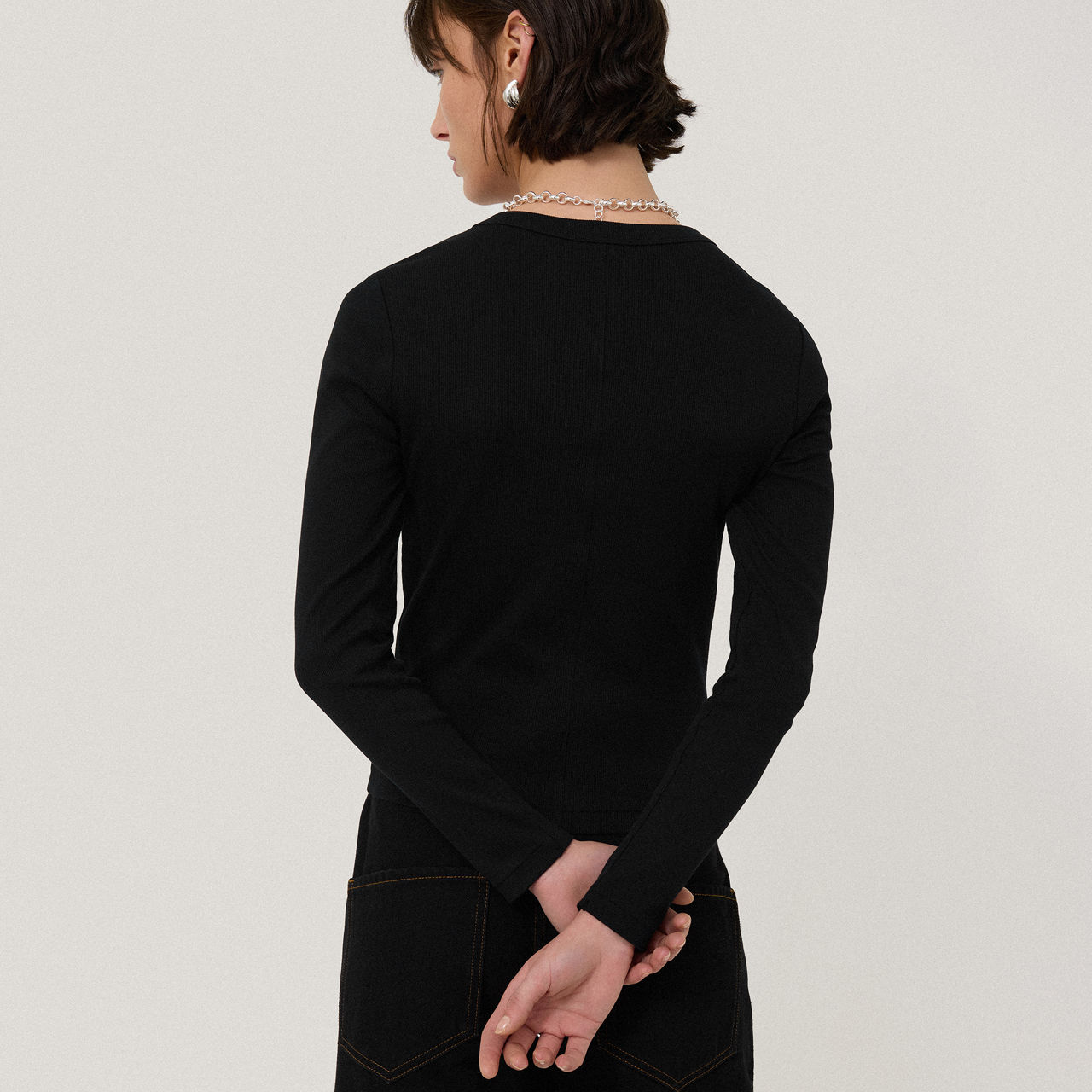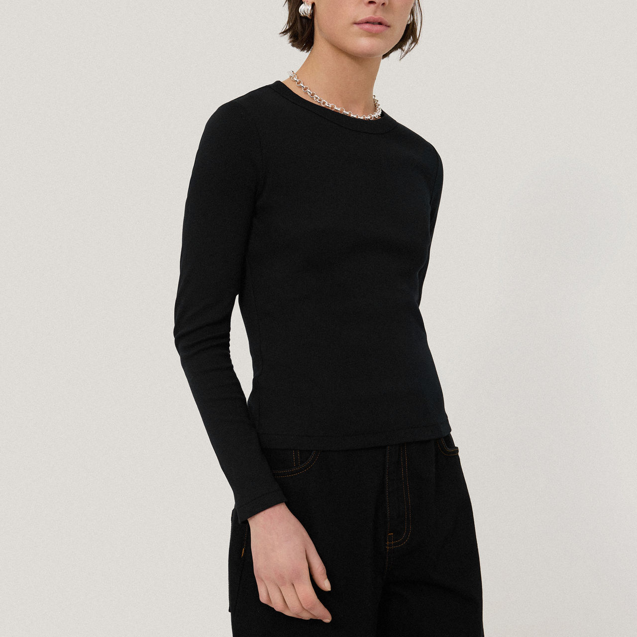 - 90s-inspired silhouette, long sleeves, soft cotton jersey, round neckline