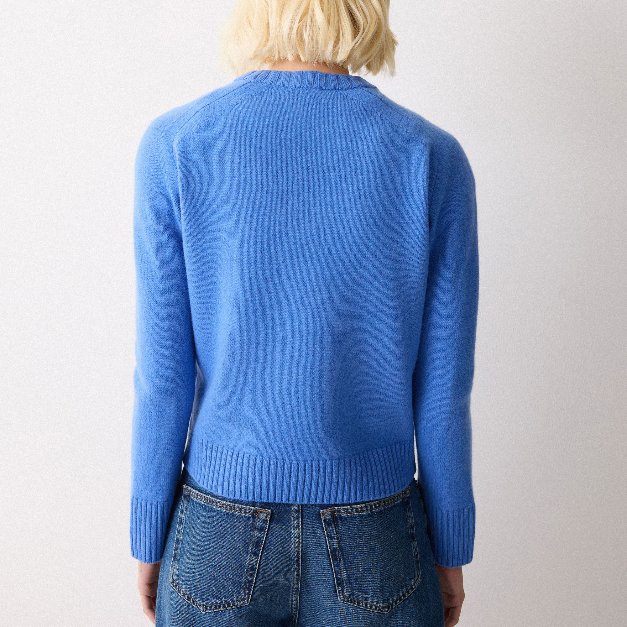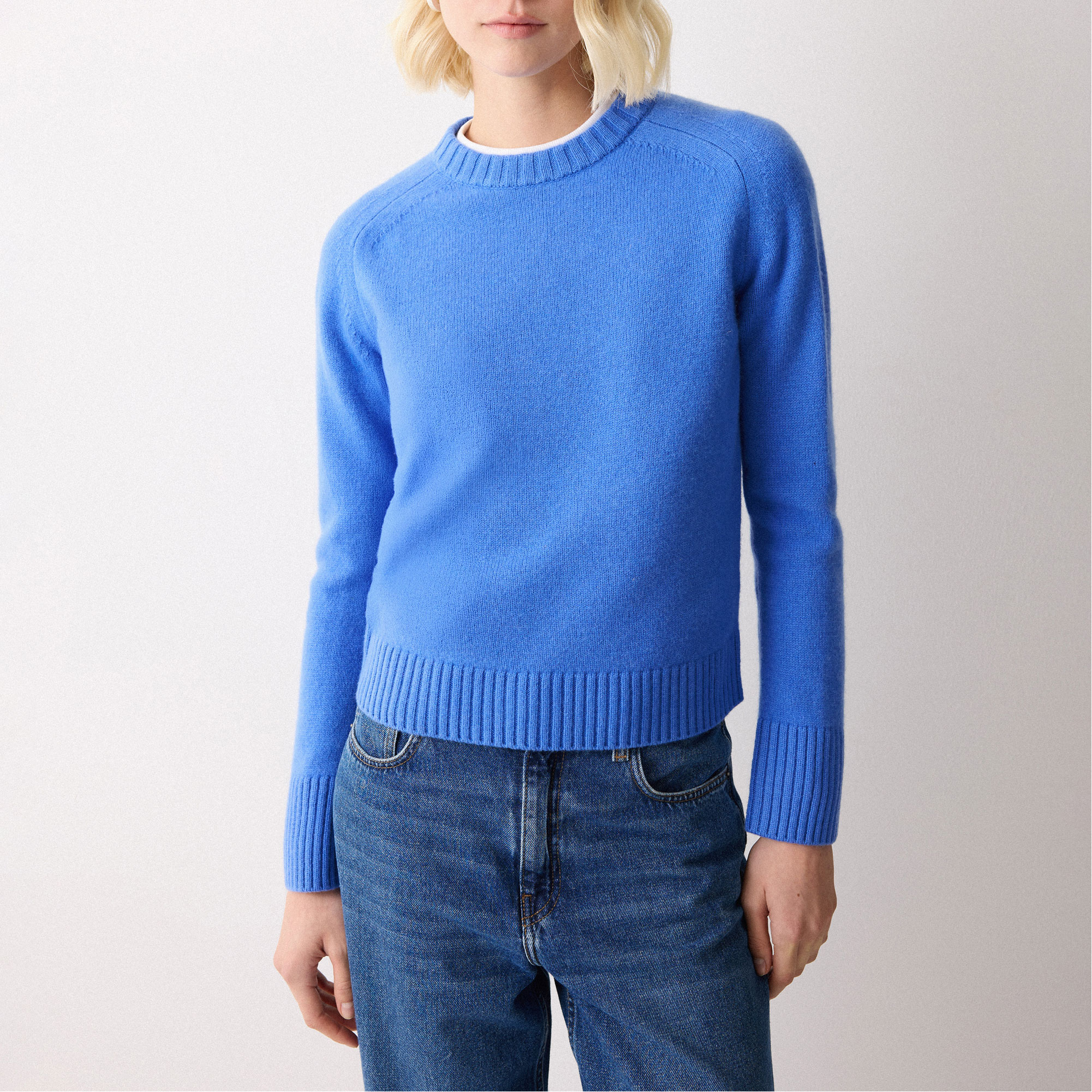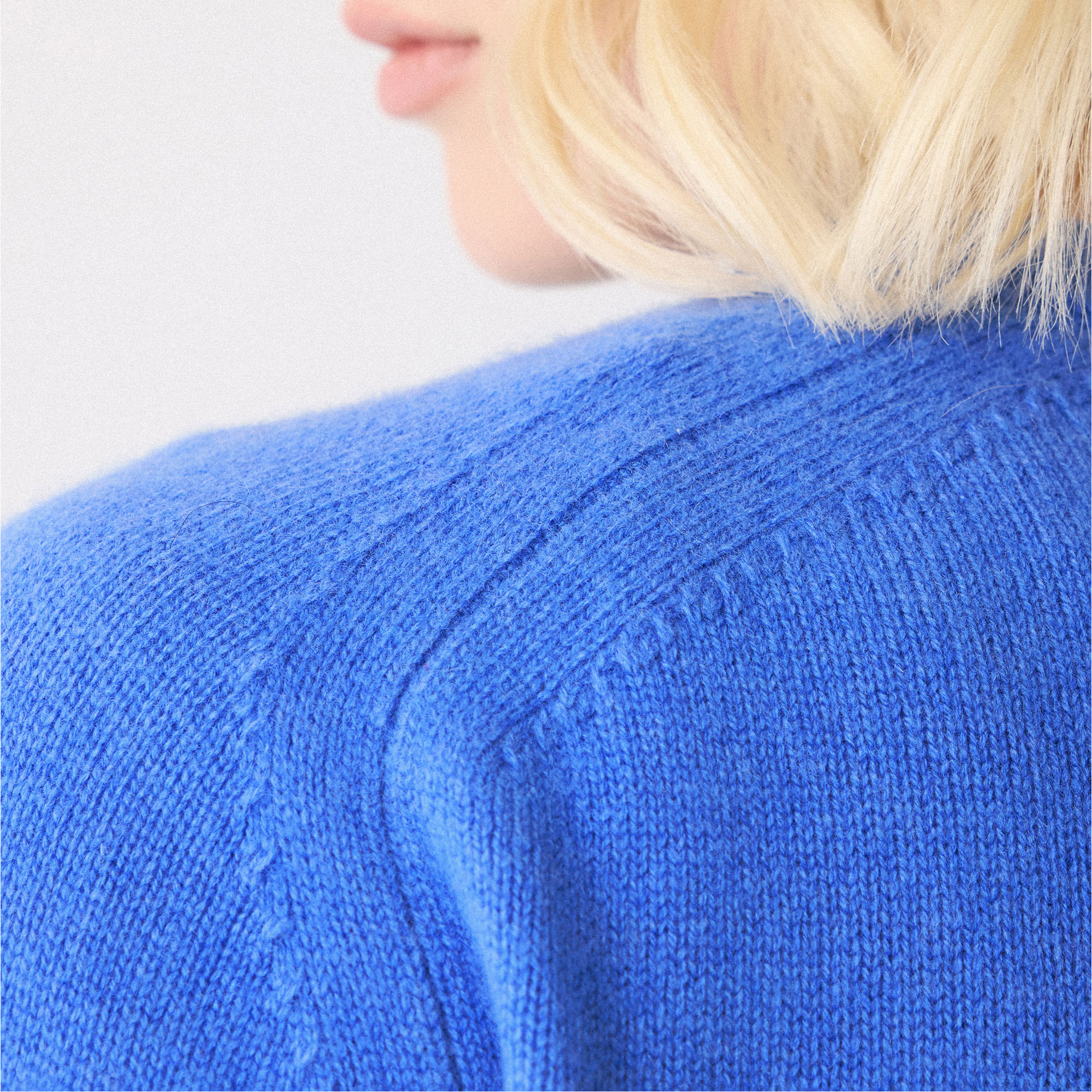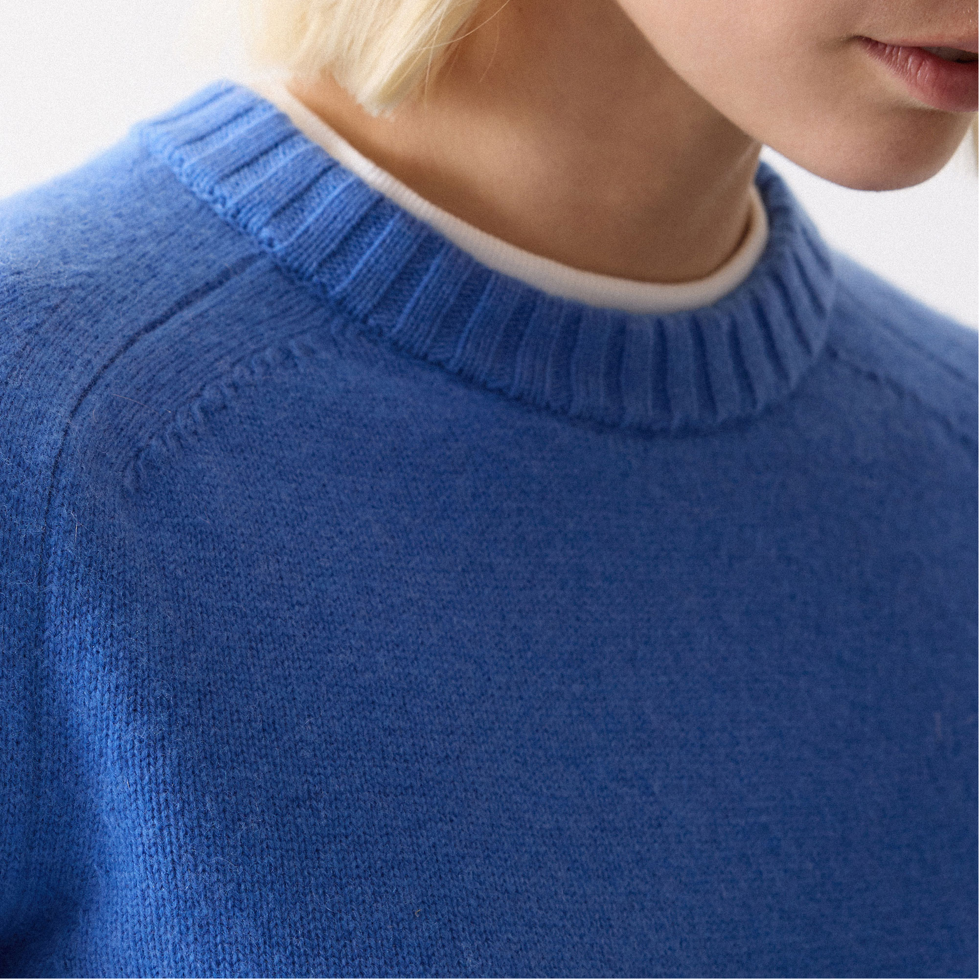 • Crew neckline, long sleeves, saddle stitch detail, modern chunky rib at neck cuffs and hem, warm and super-soft, perfect transitional layer