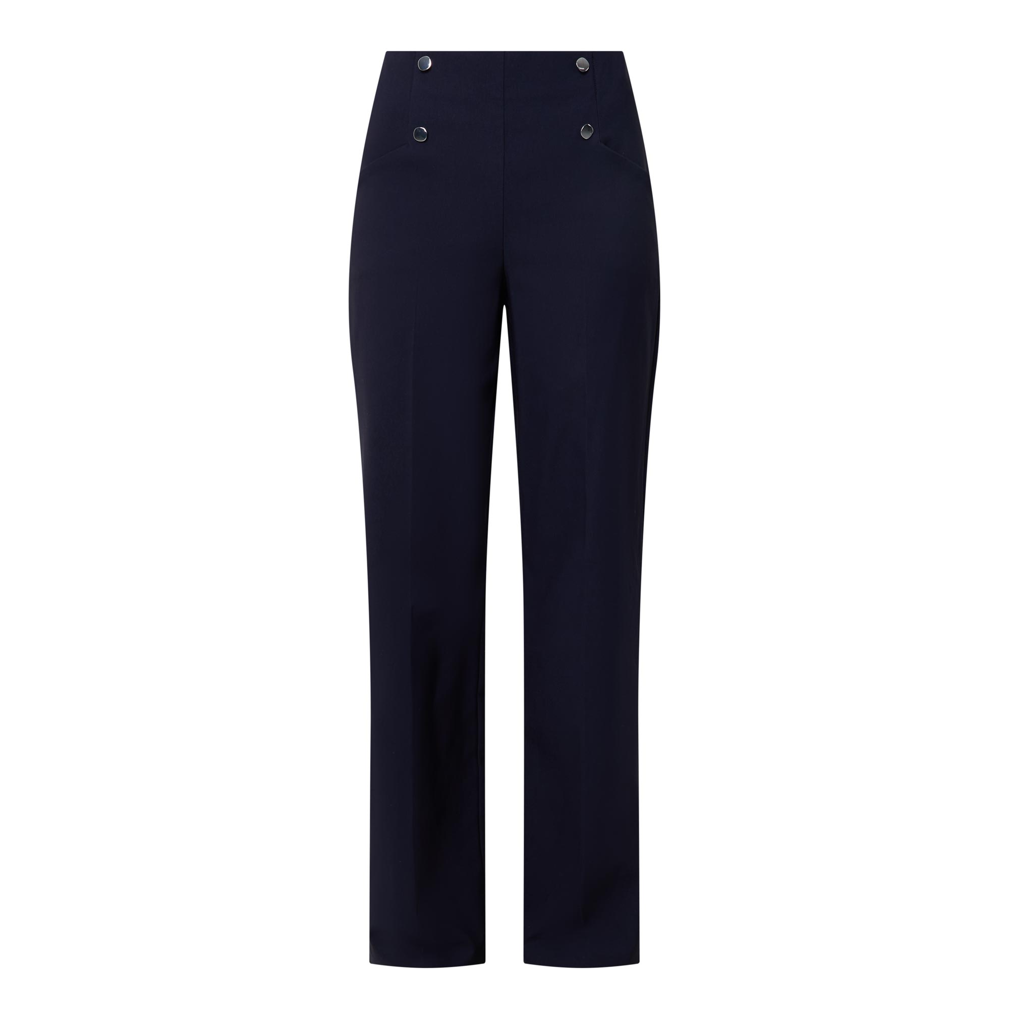 - Double breasted button effect, silver-toned buttons, elasticated waist, wide leg