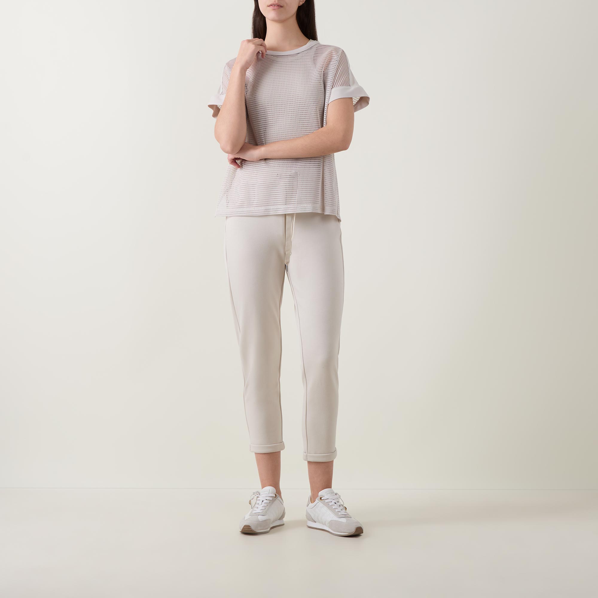 - Crew neckline, short sleeves, solid cuffs, straight hem, mesh style, layerable design