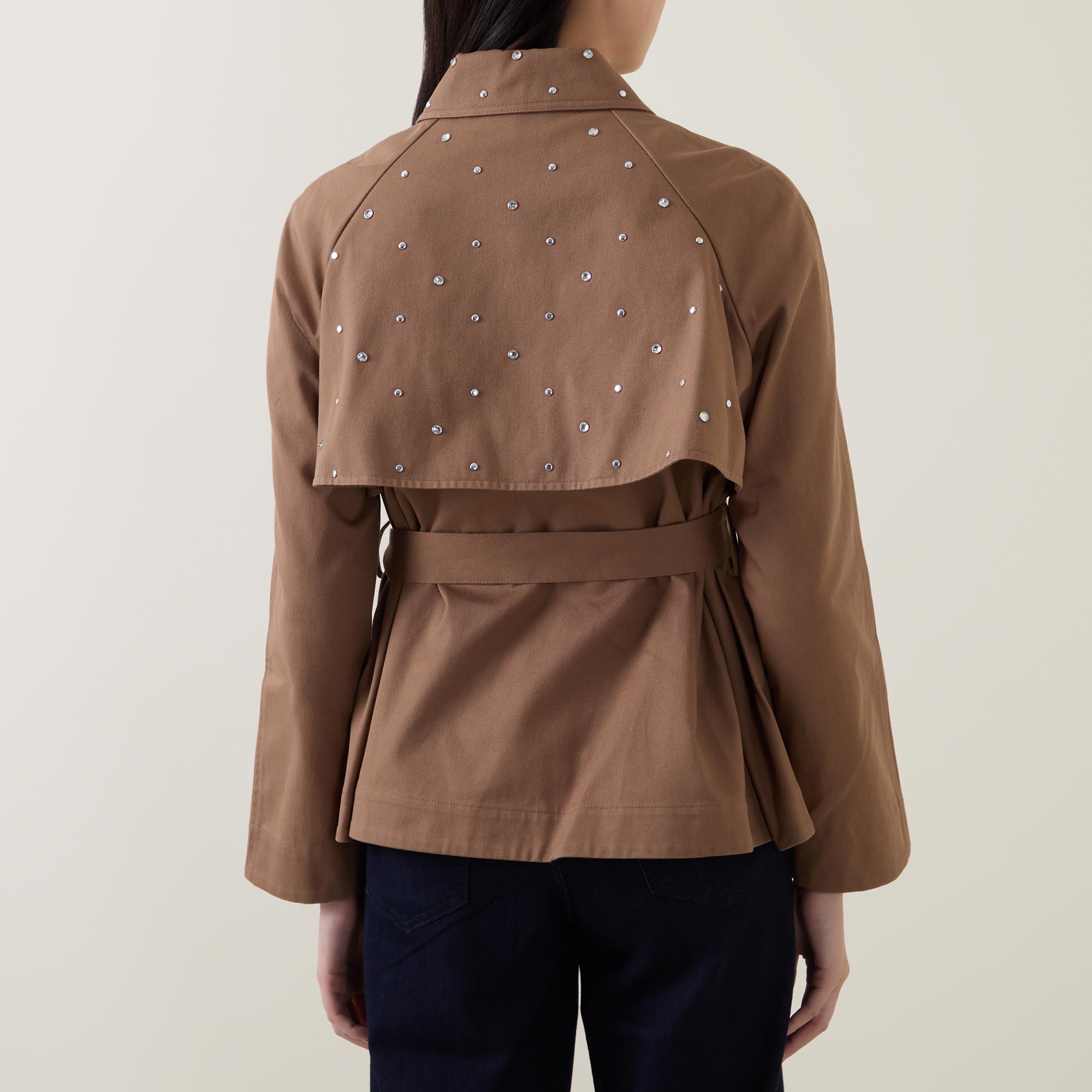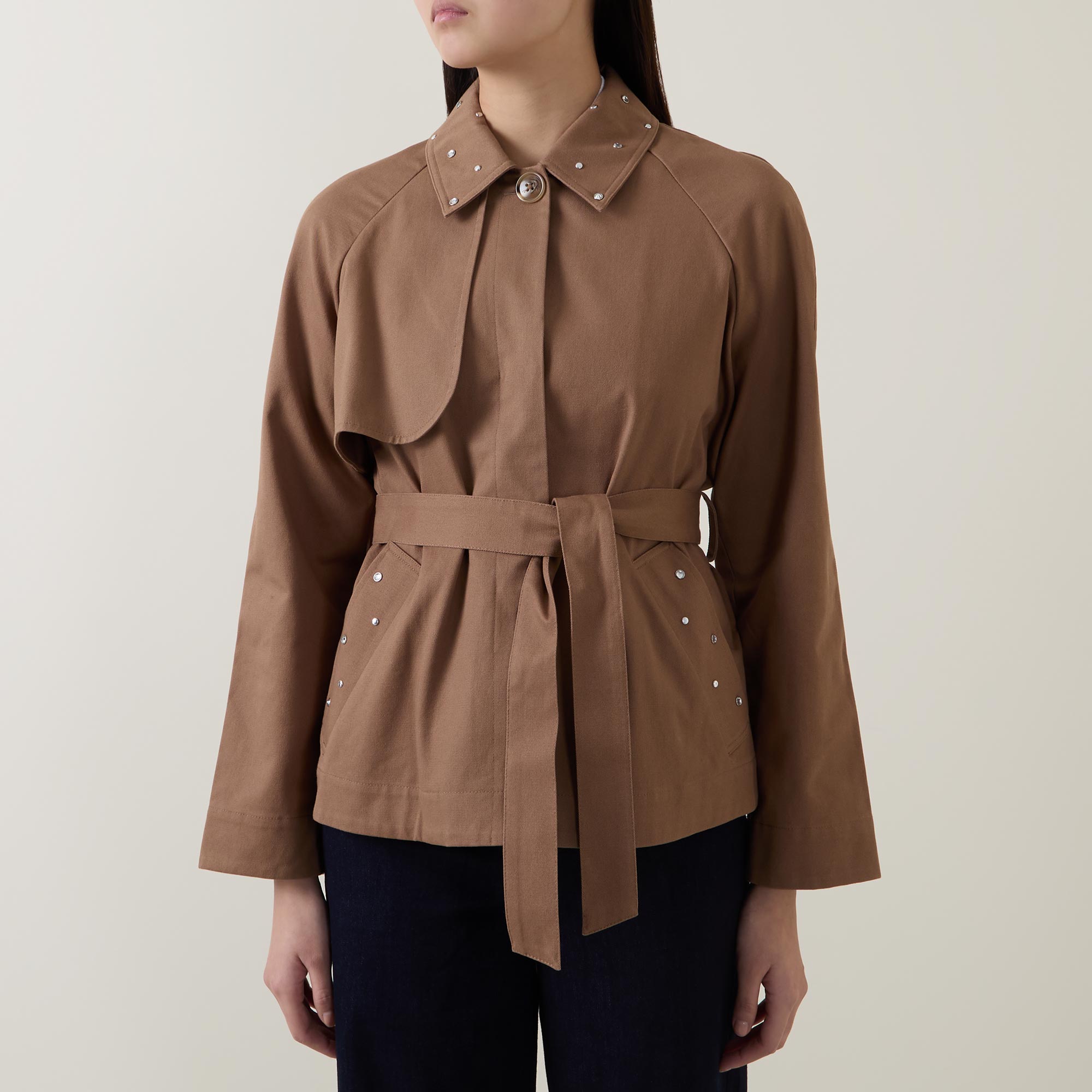 JOSEPH RIBKOFF Short Stud Embellished Belted Trench Coat
