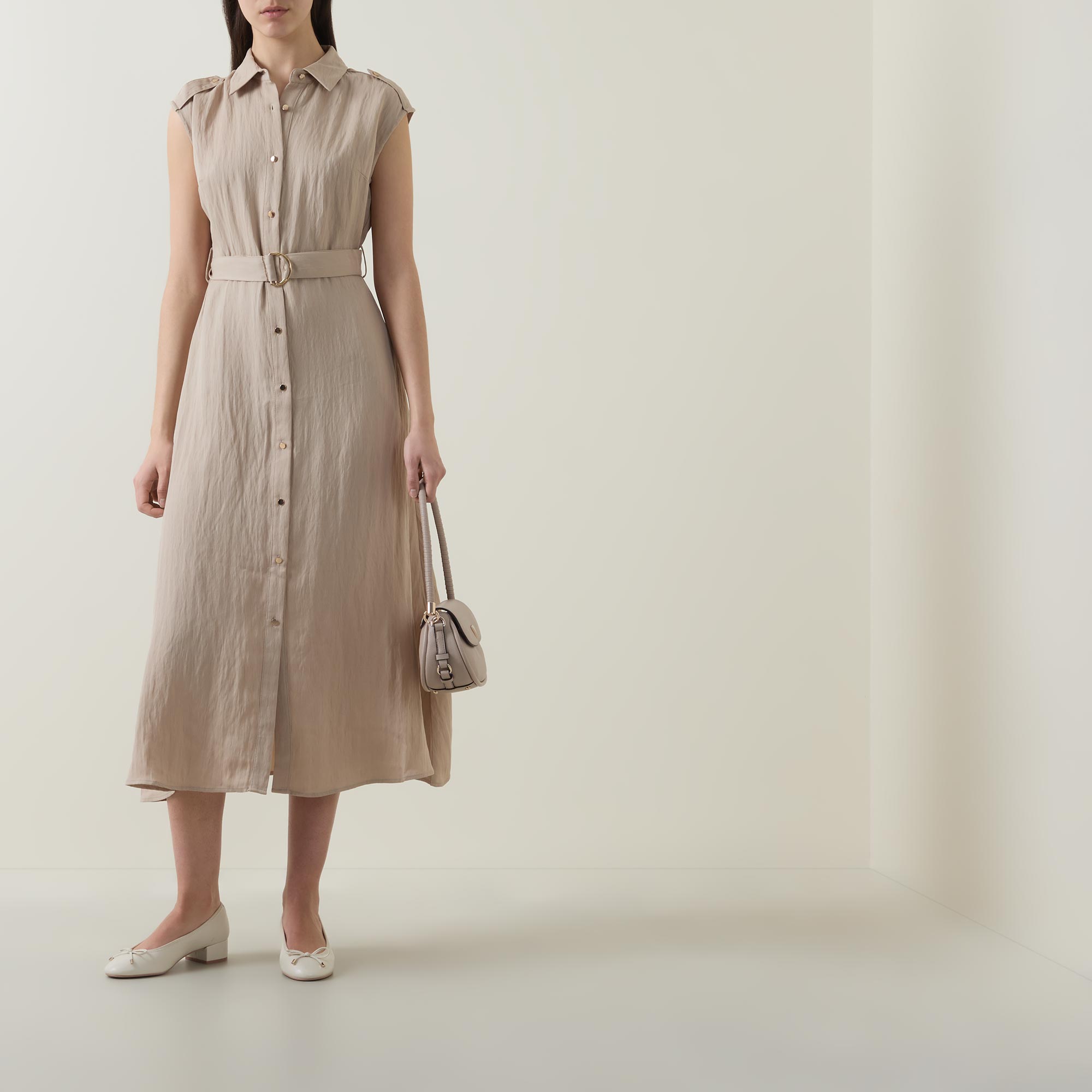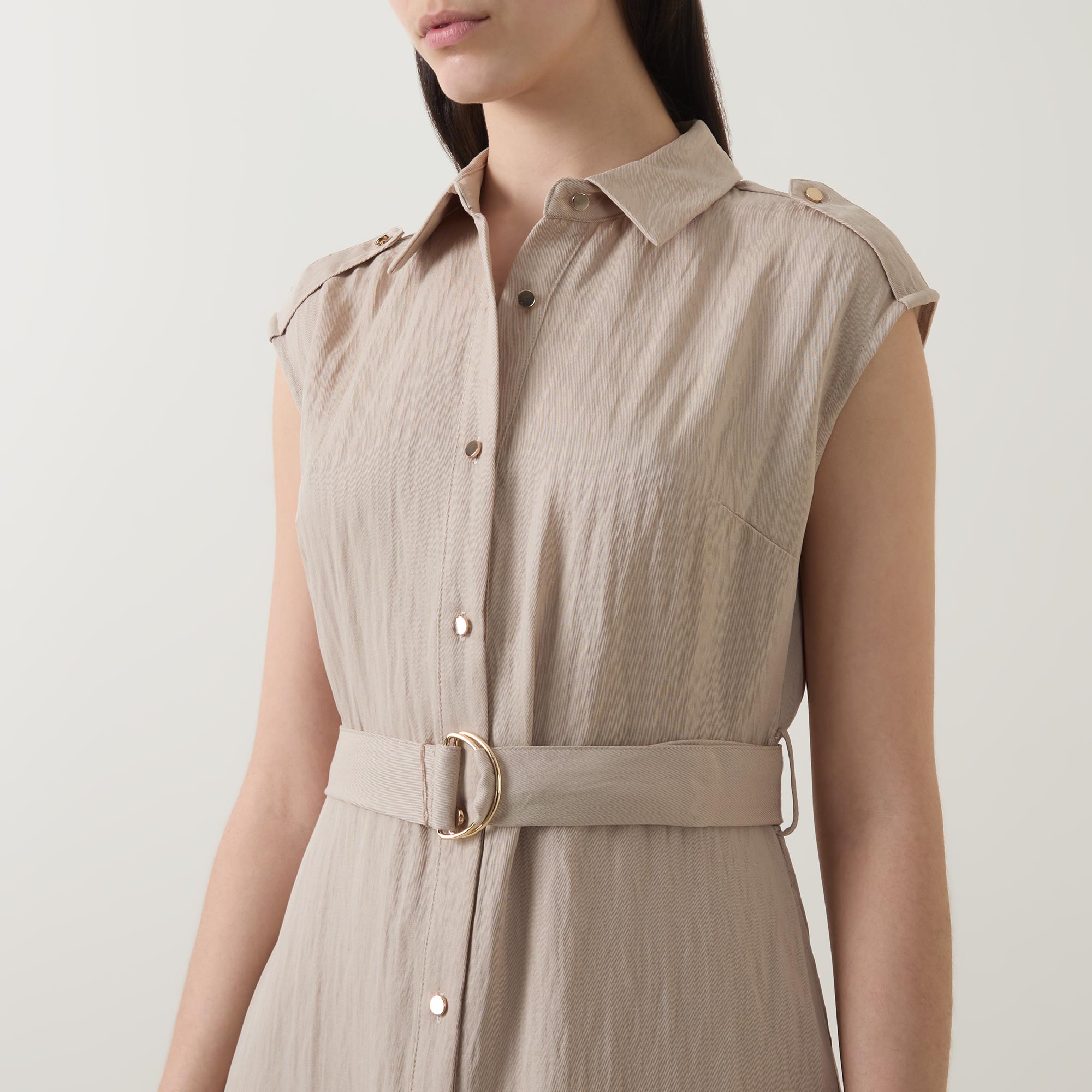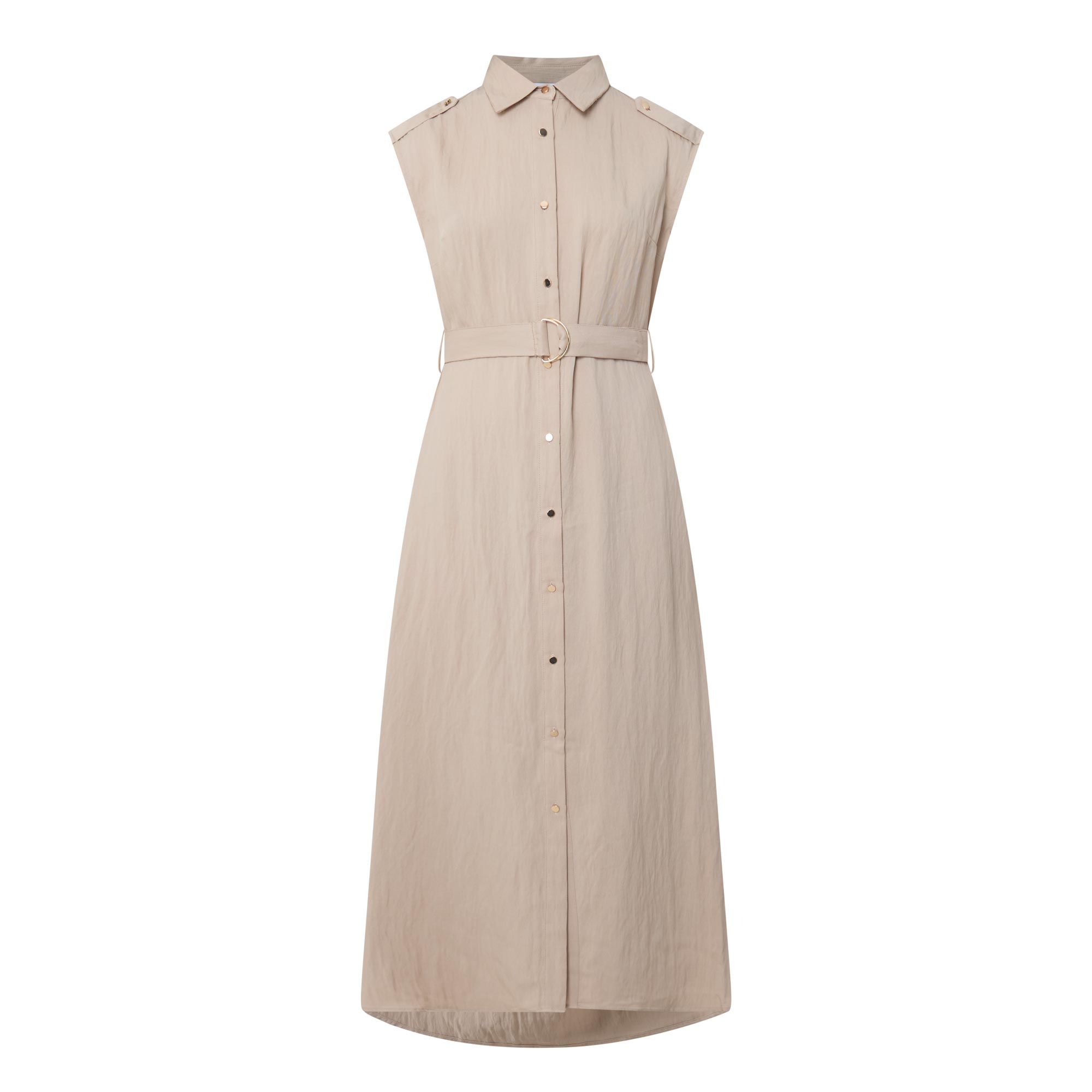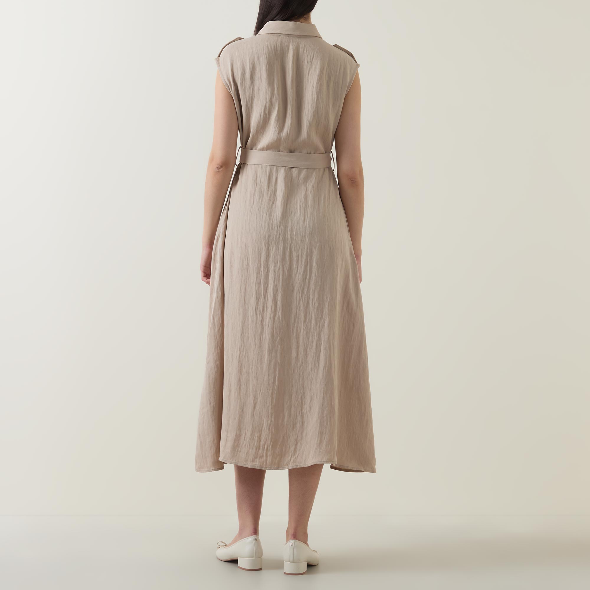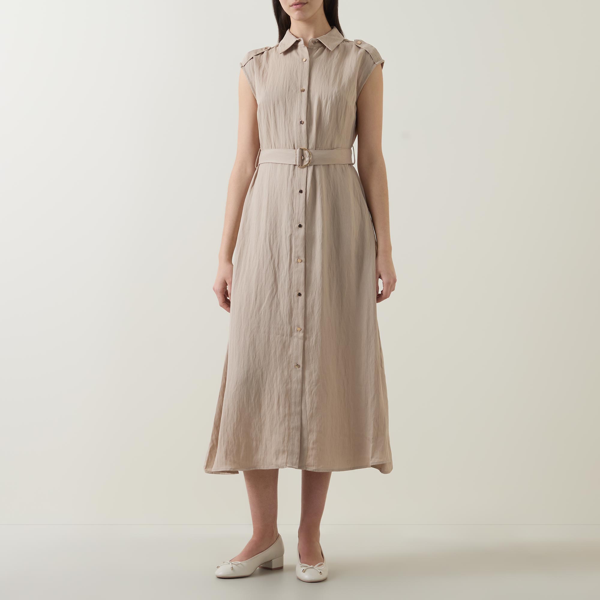 • Shoulder tabs, sleeveless, button fastenings, belted, midi length