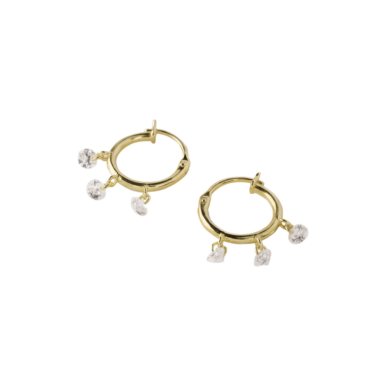 - Three cubic zirconia gems, suspended design, hinge fastenings, gold-tone finish