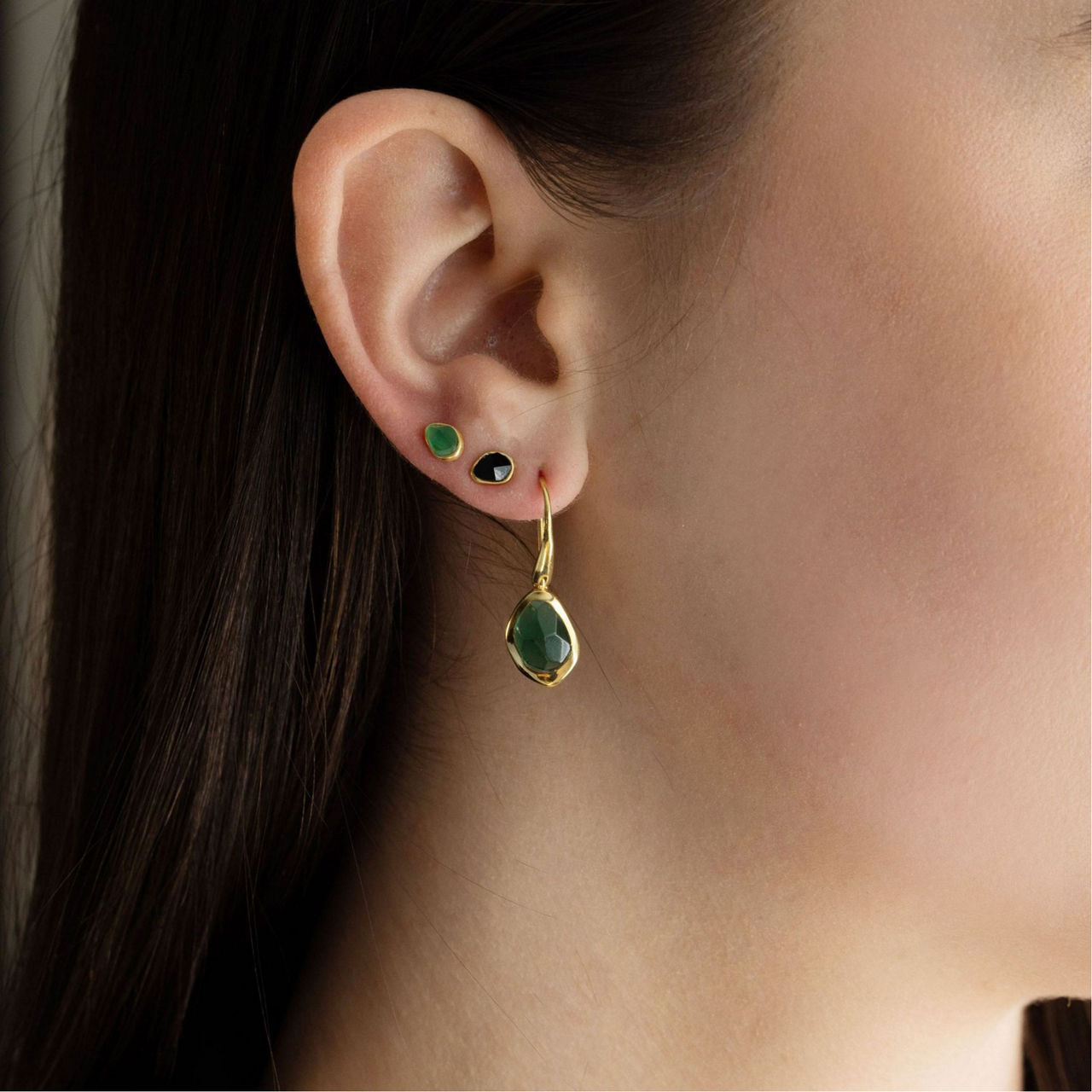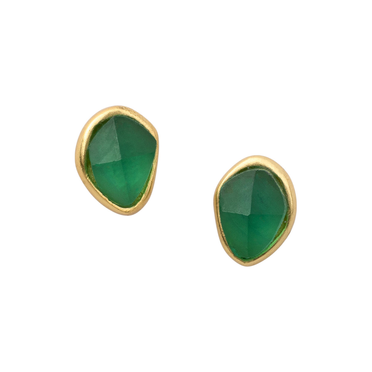 - Stud earrings, hand cut green tourmaline gem, post and butterfly back fastenings, polished gold-tone finish