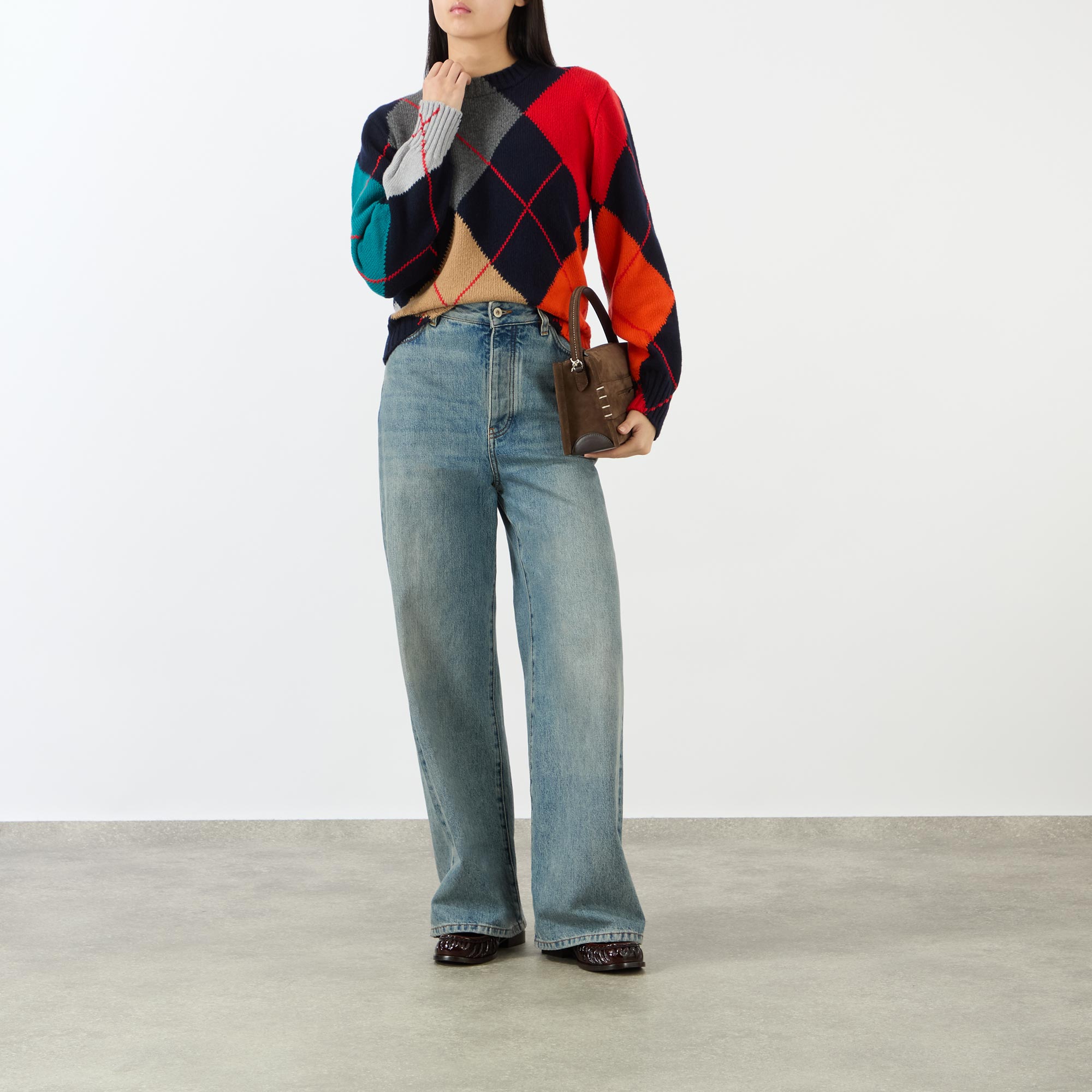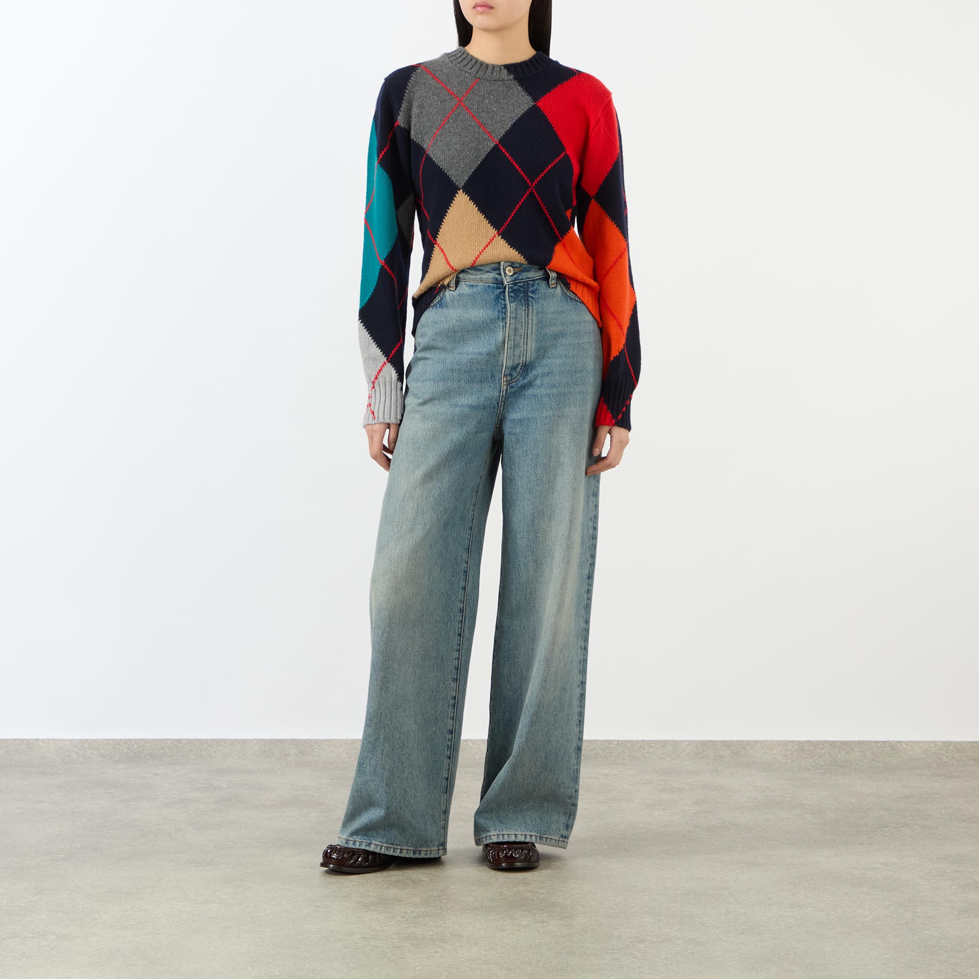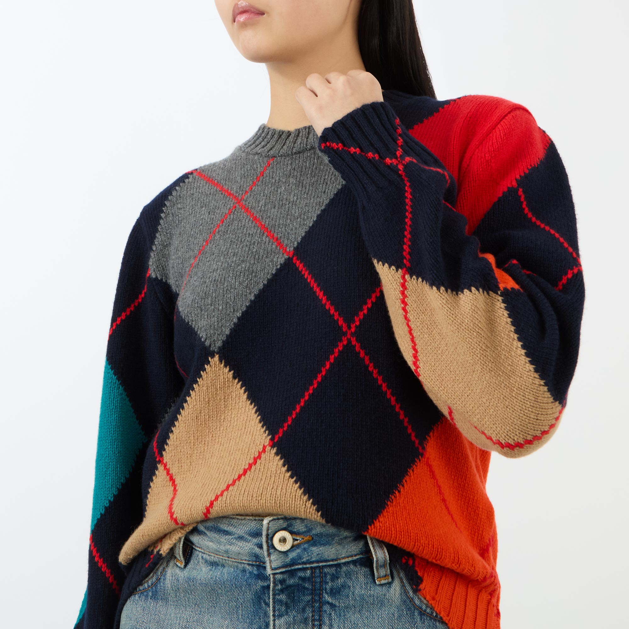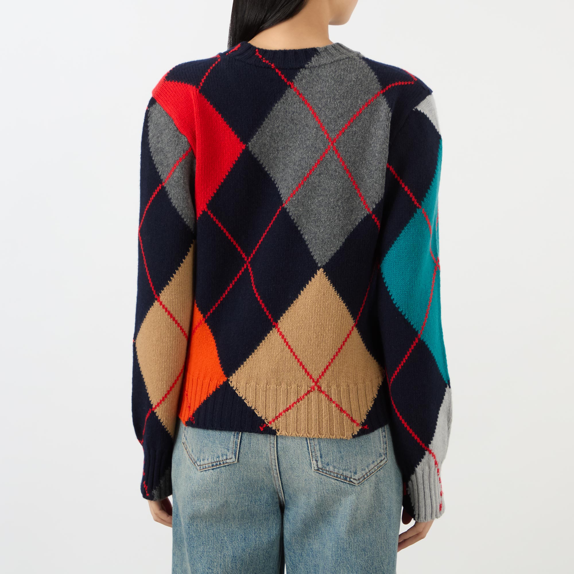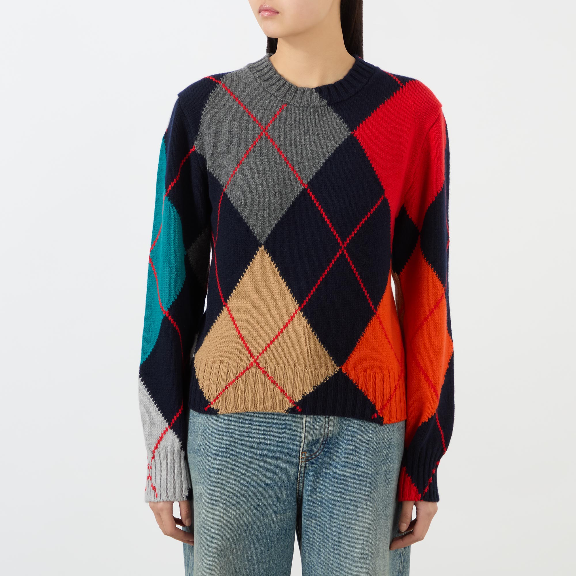 • Crew neckline, long sleeves, ribbed trims, knit structure, oversized argyle pattern, cropped fit