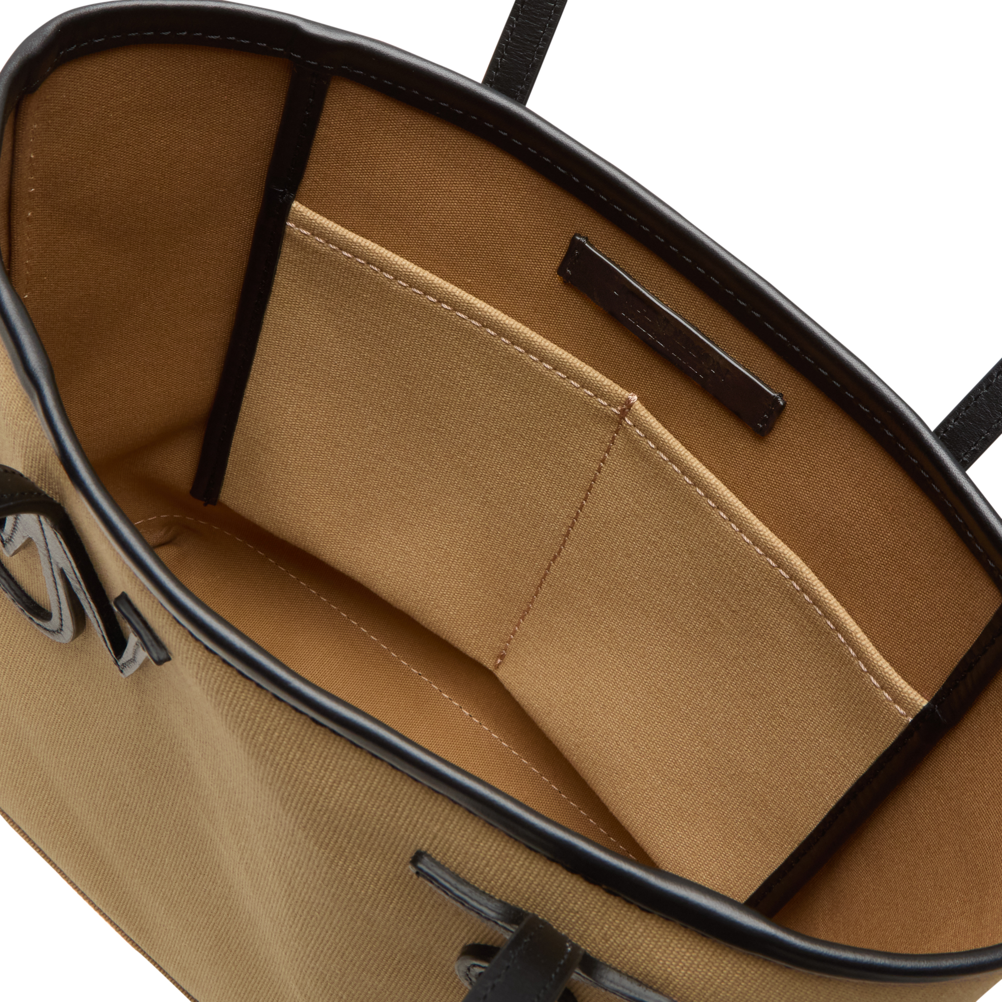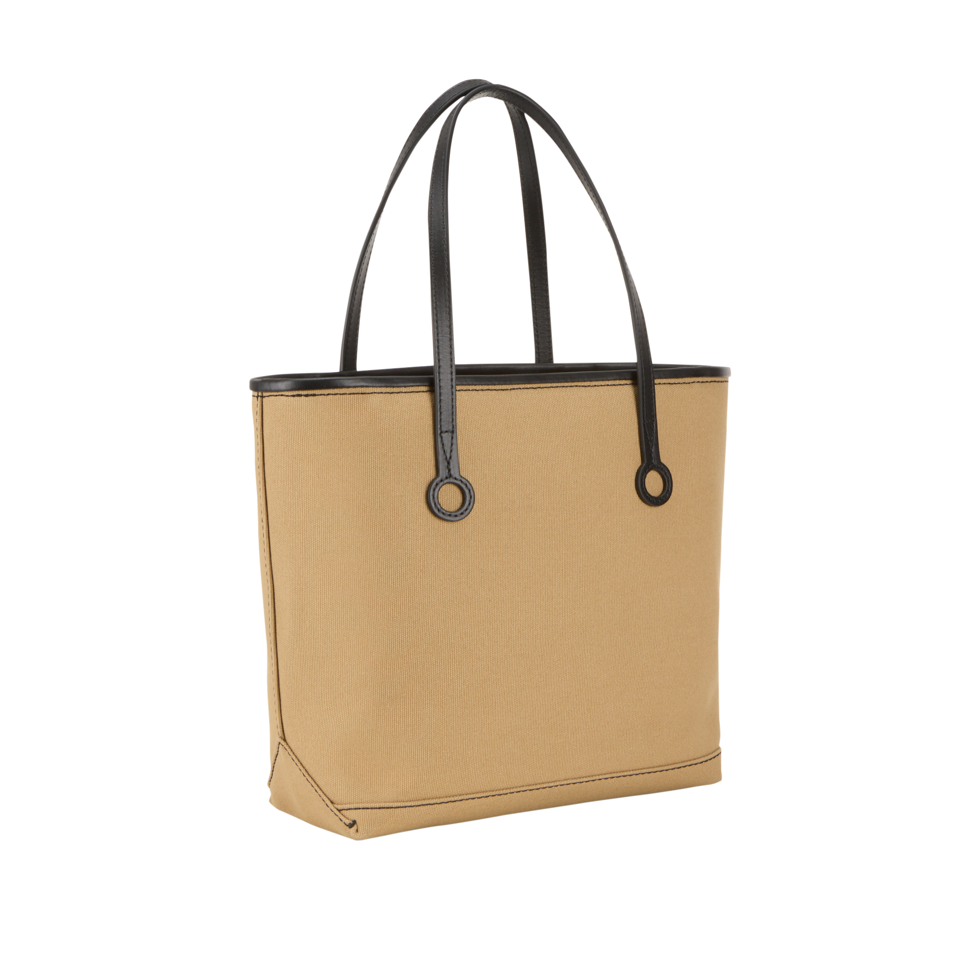 - Top carry handles, canvas fabric, leather trims and logo details, open top