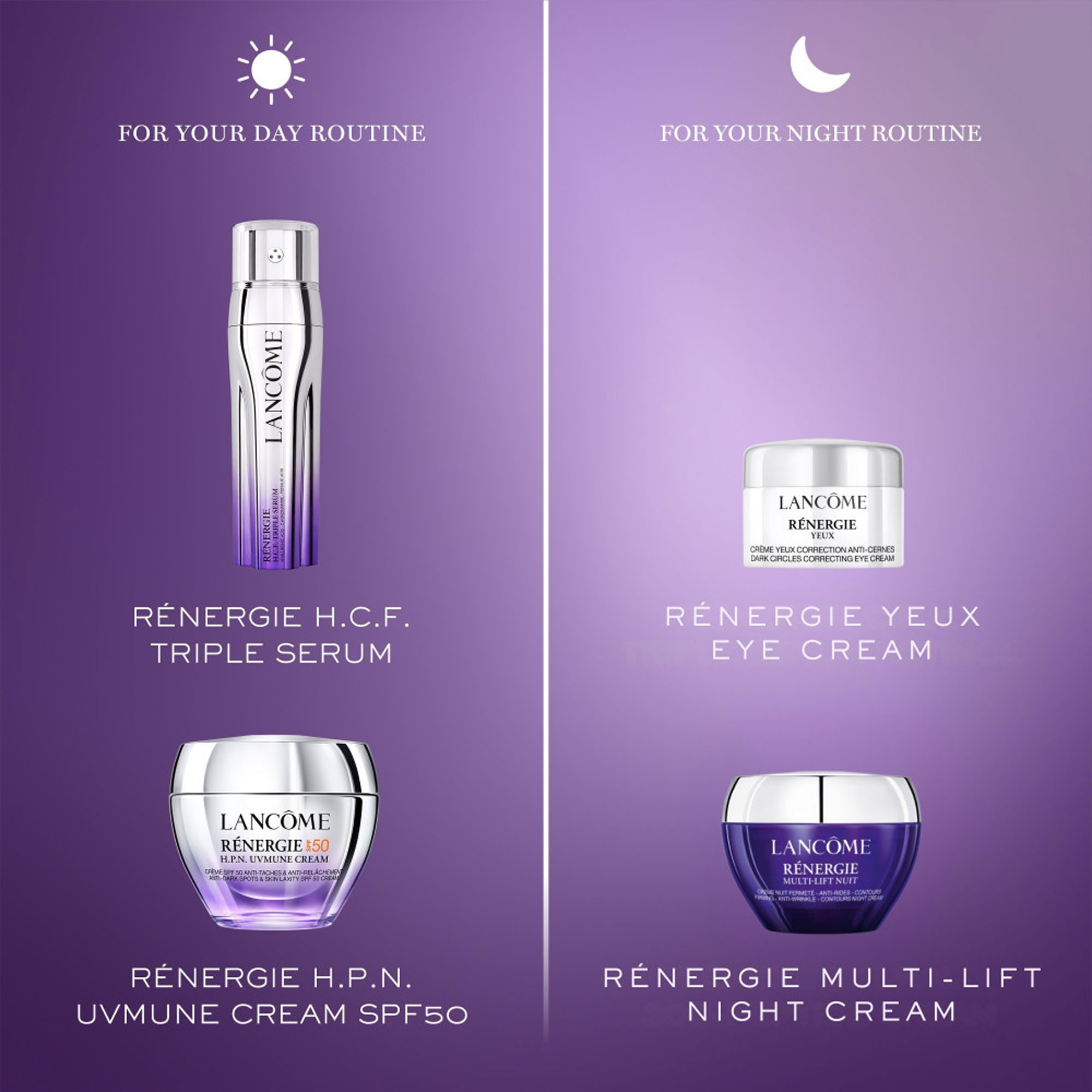 • Rénergie Night Cream: Apply on face and neck in the evening.