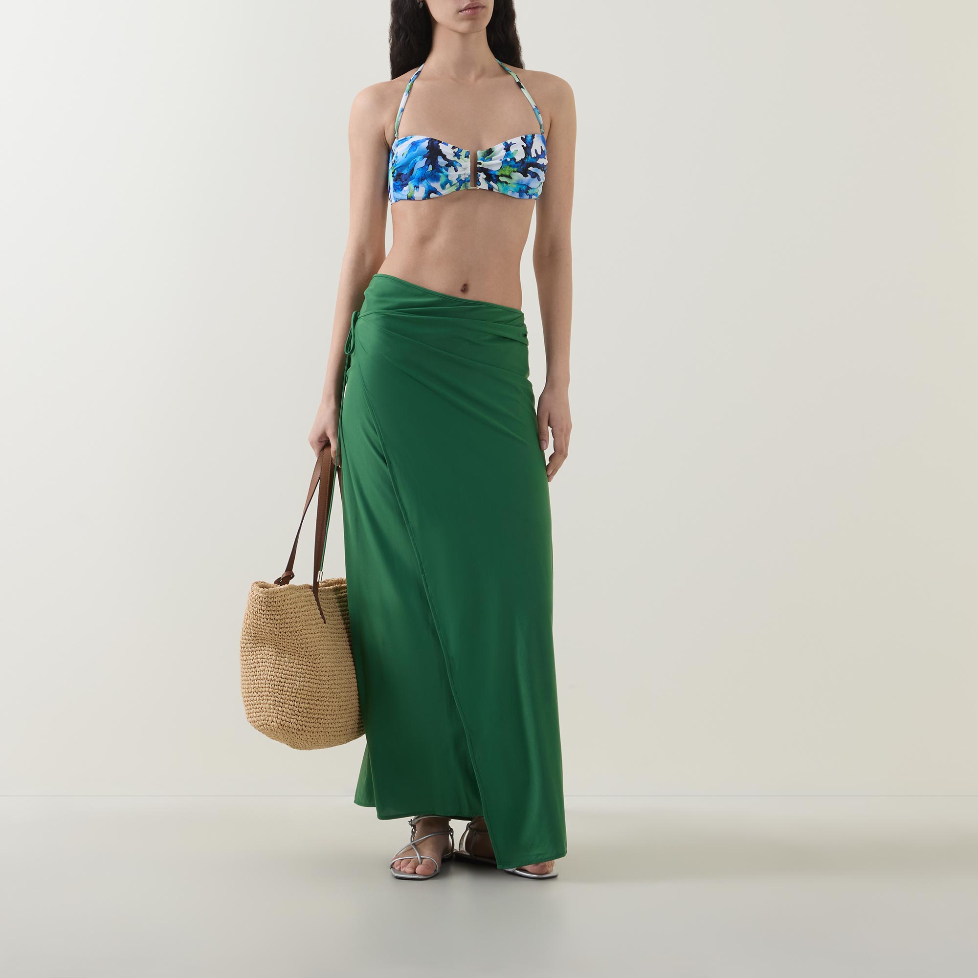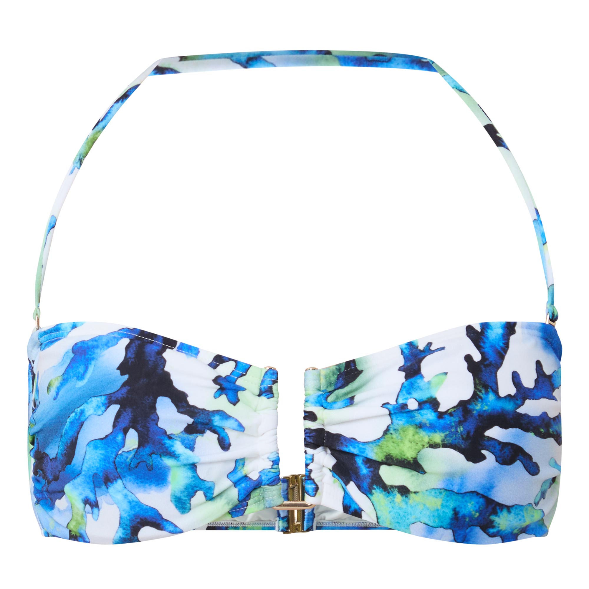 • Detachable halterneck straps, clasp closure to the back, coral print, ruched cups, U-bar detail