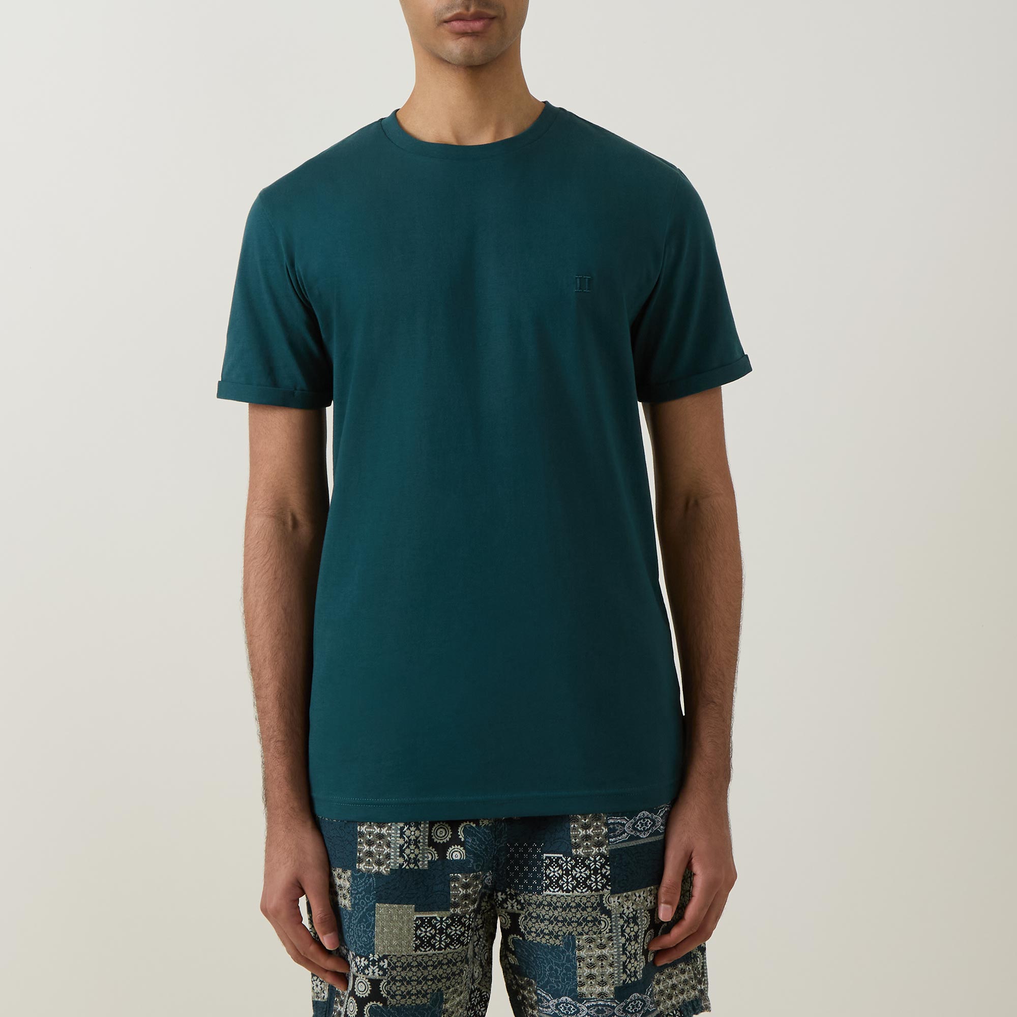 - Crew neck, short sleeves, straight hem, tonal logo embroidery on the chest, tonal stitching, smooth finish