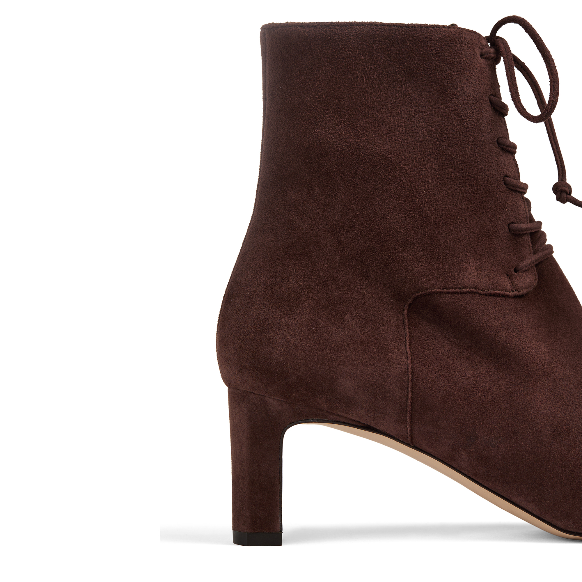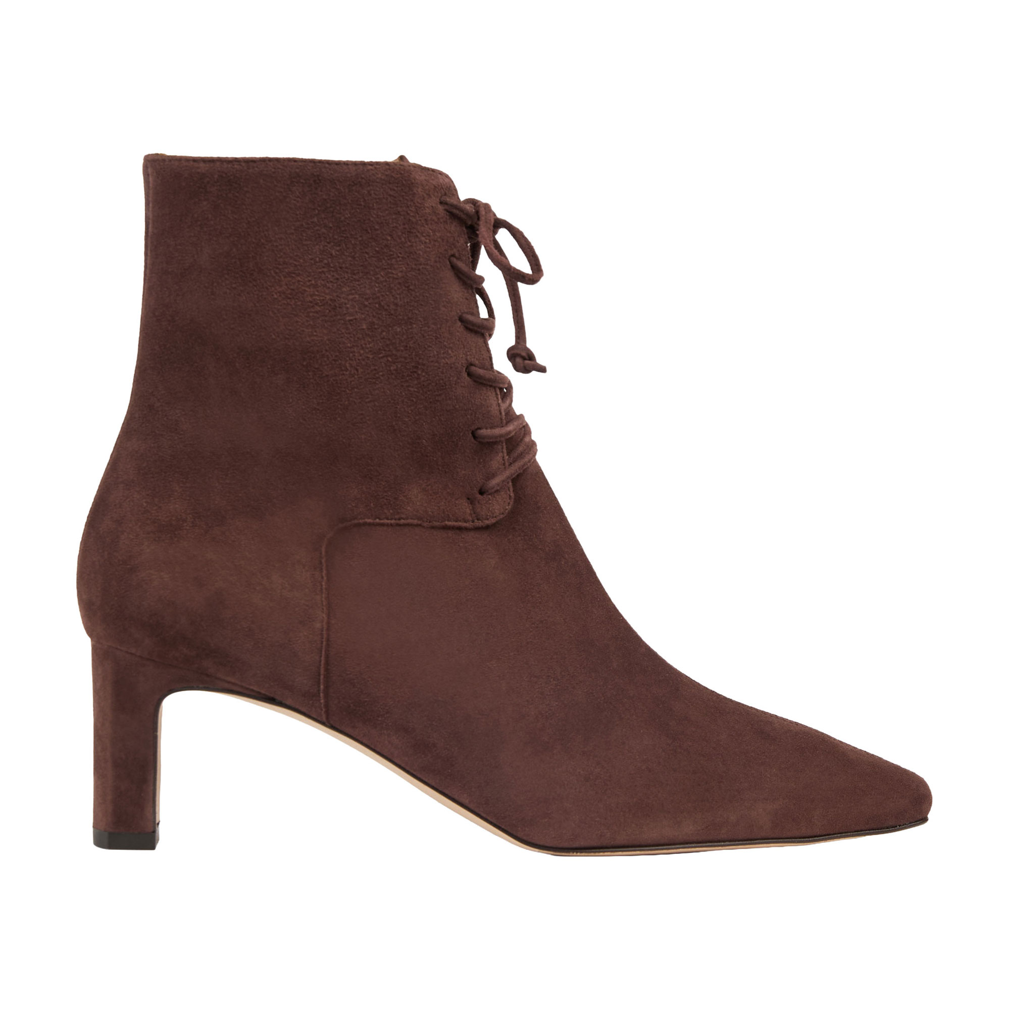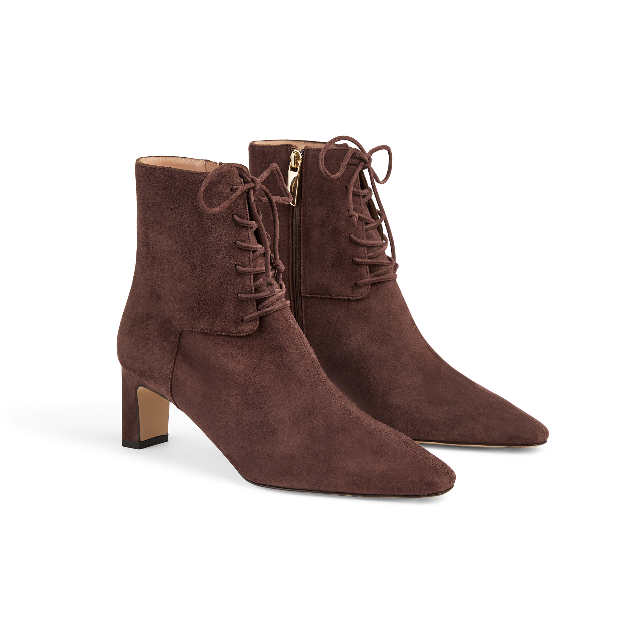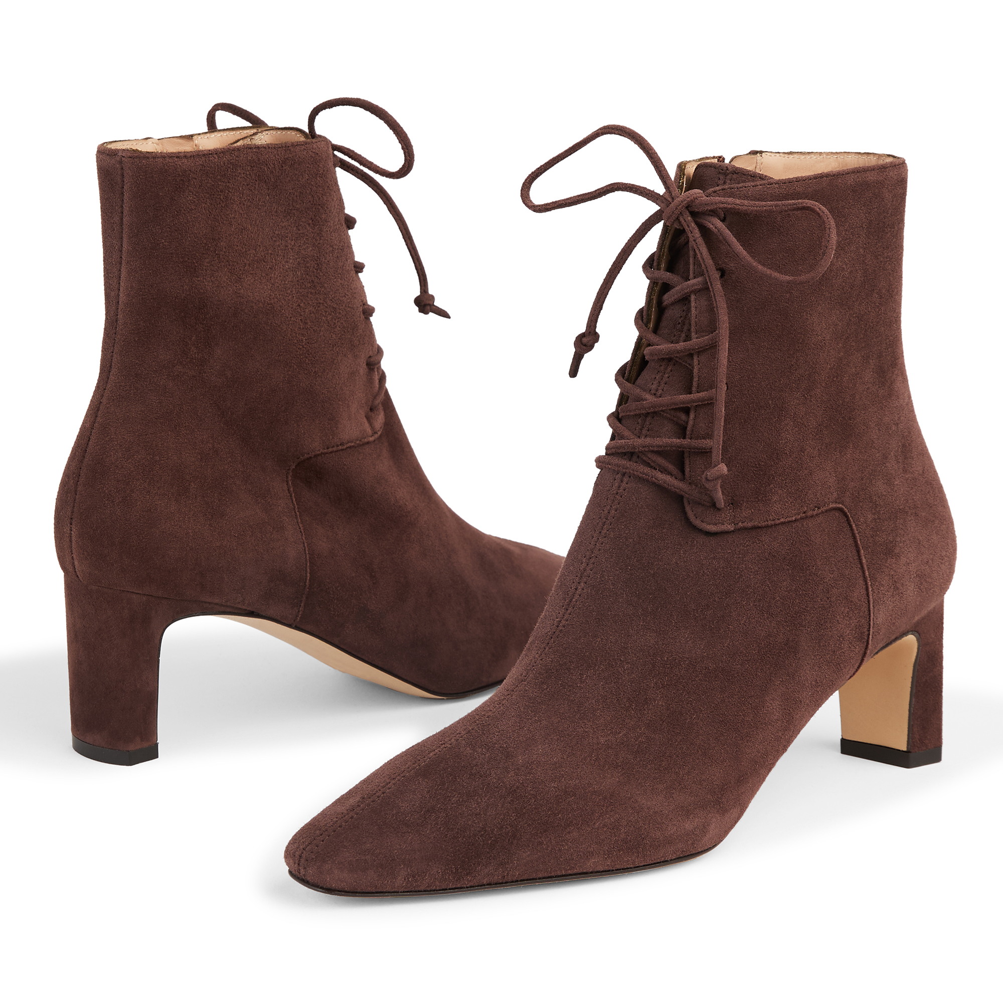 - Lace-up fastening, block heel, textured suede finish, squared toe, ankle style