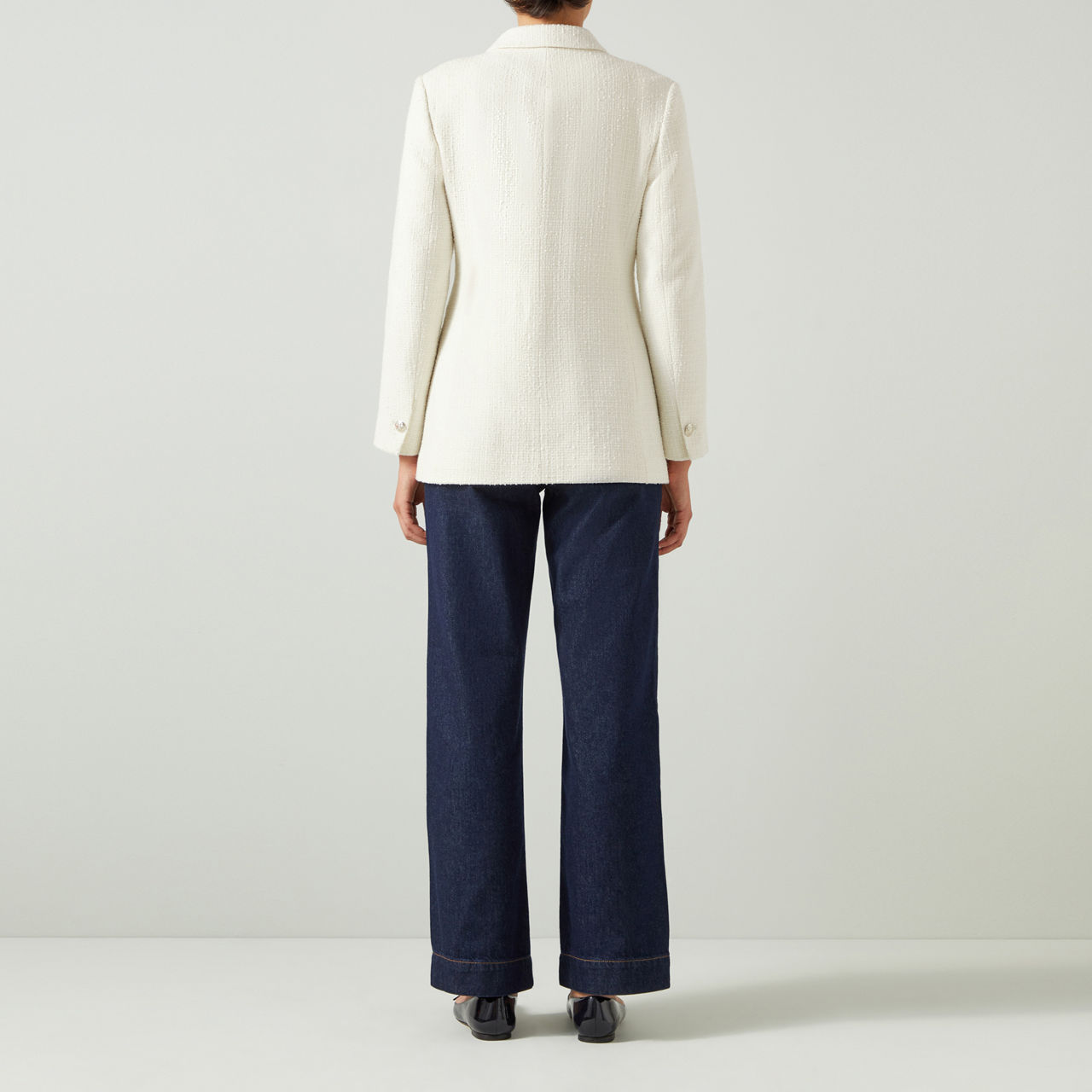 - Double-breasted tailored jacket, collar neck, long sleeve