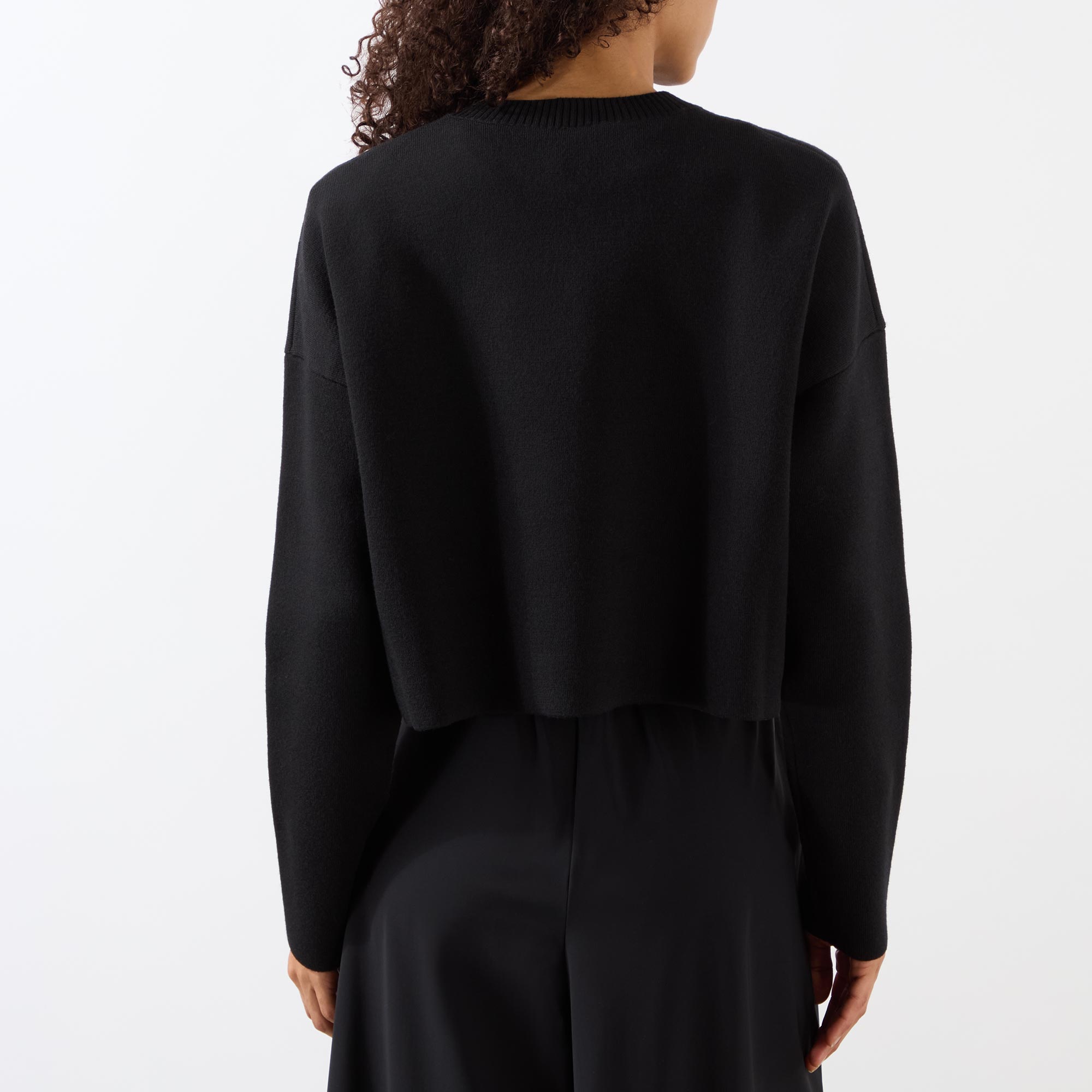- Crew neckline, long sleeves, dropped shoulders, signature Anagram logo to the front, ribbed trims, straight hemline, fine knit finish