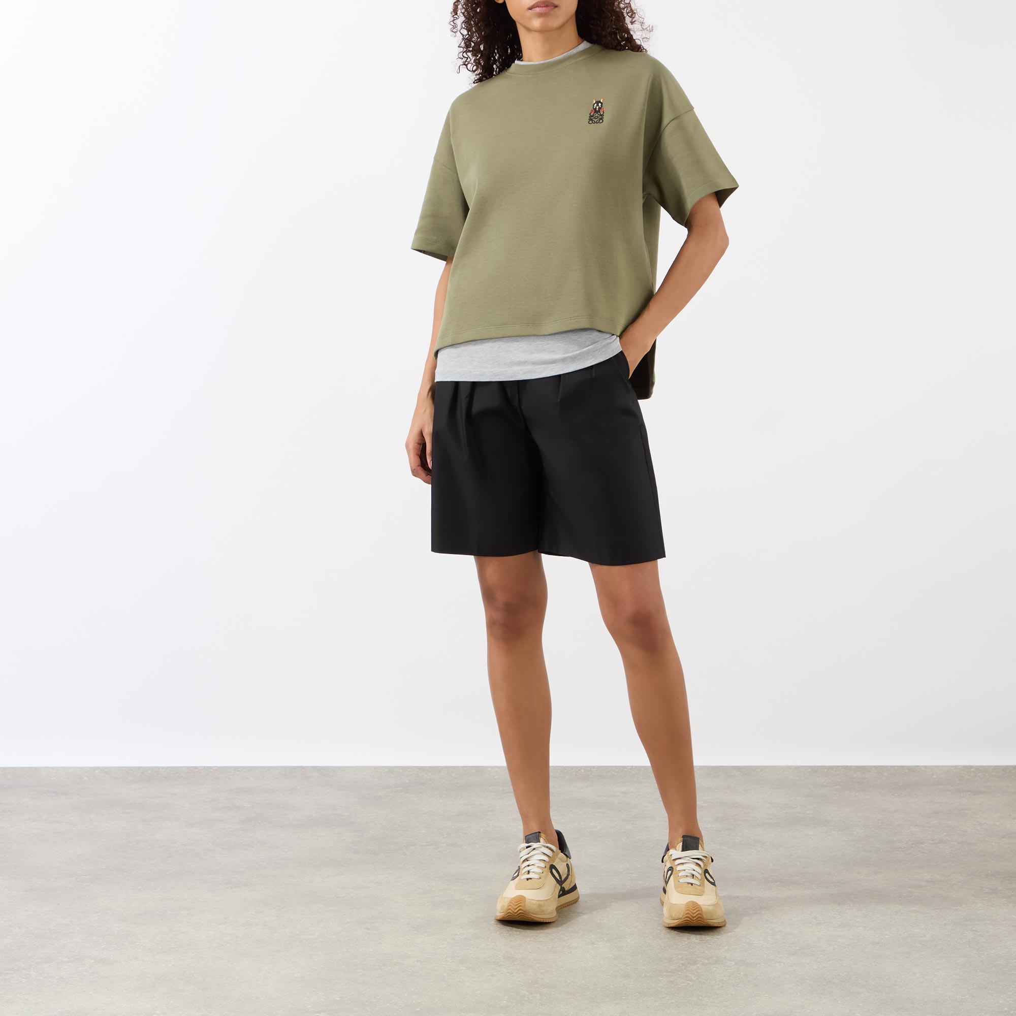 - Crew neckline, short sleeves, dropped shoulders, Anagram logo embroidery with cat, open-cut side seams, graphic slogan printed on back, straight hemline, smooth fabric