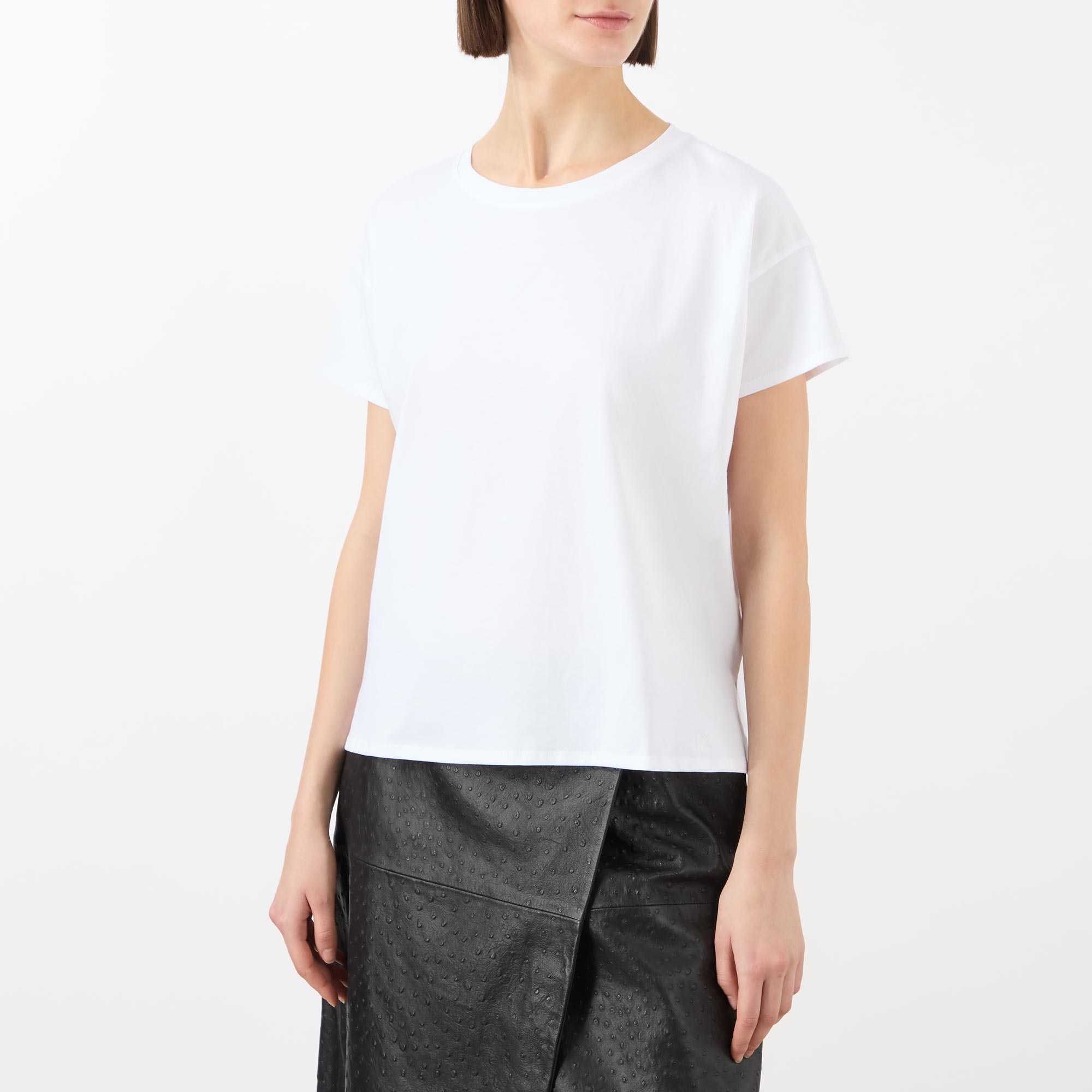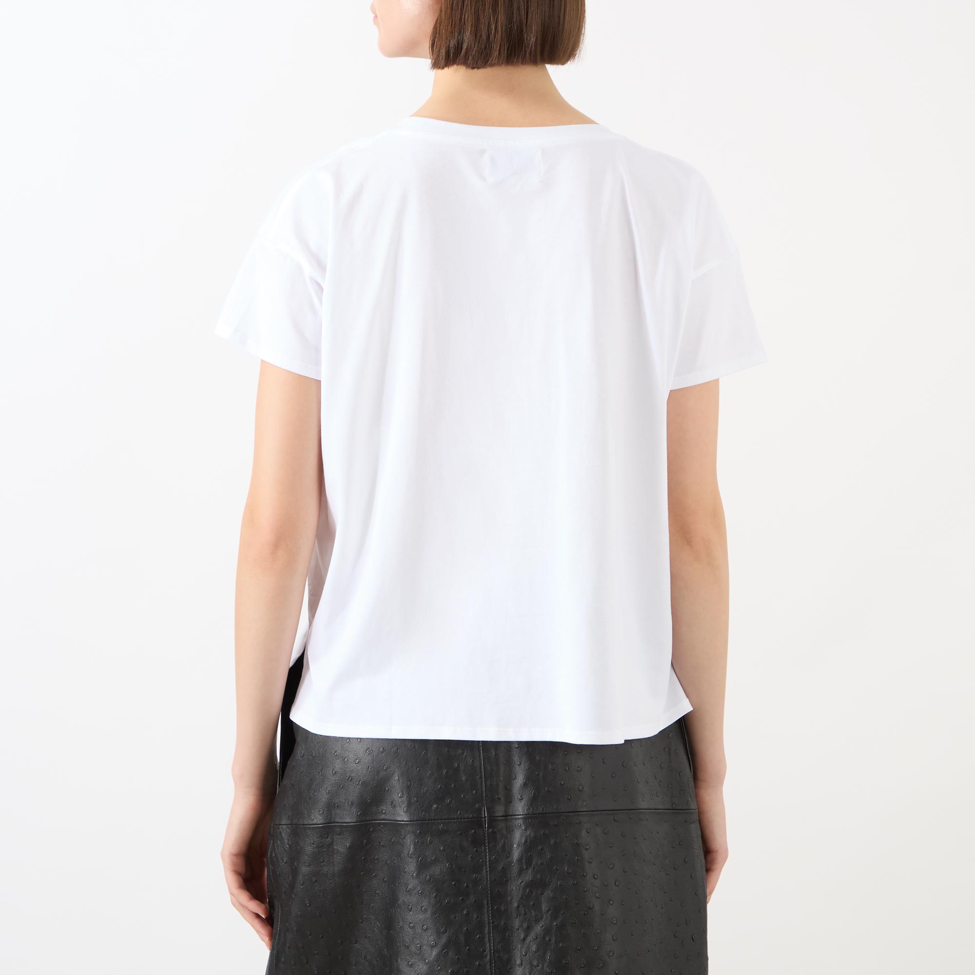 • Round neckline, short sleeves, straight hemline, dropped shoulders, lightweight fabric, side vents, embroidered logo detail