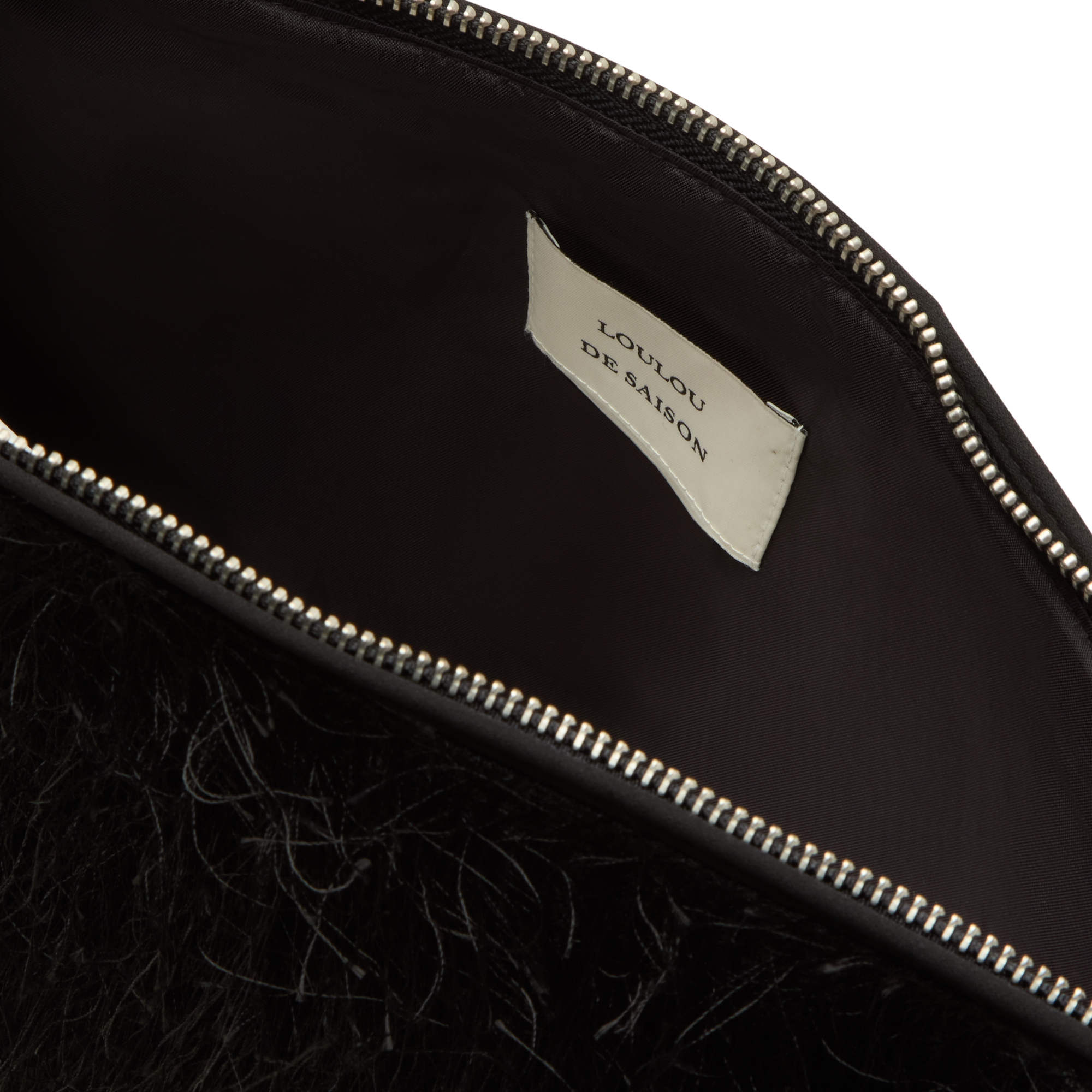 - Top zip fastening, silver-tone hardware, long fringed detailing, textured finish