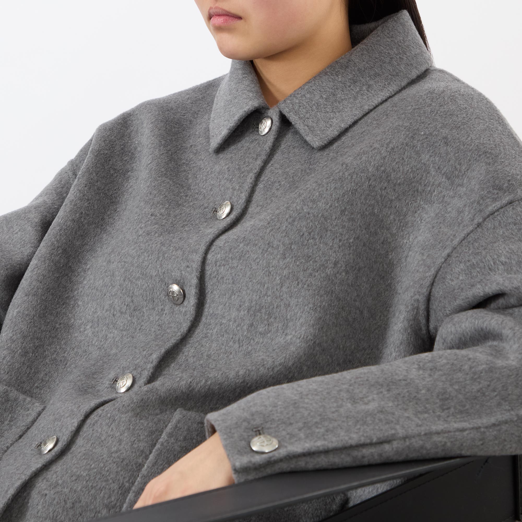 - Flat collar, button fastening, long sleeves, buttoned cuffs, patch pockets with button fastening, cashmere-blend fabric, logo details, raised seams