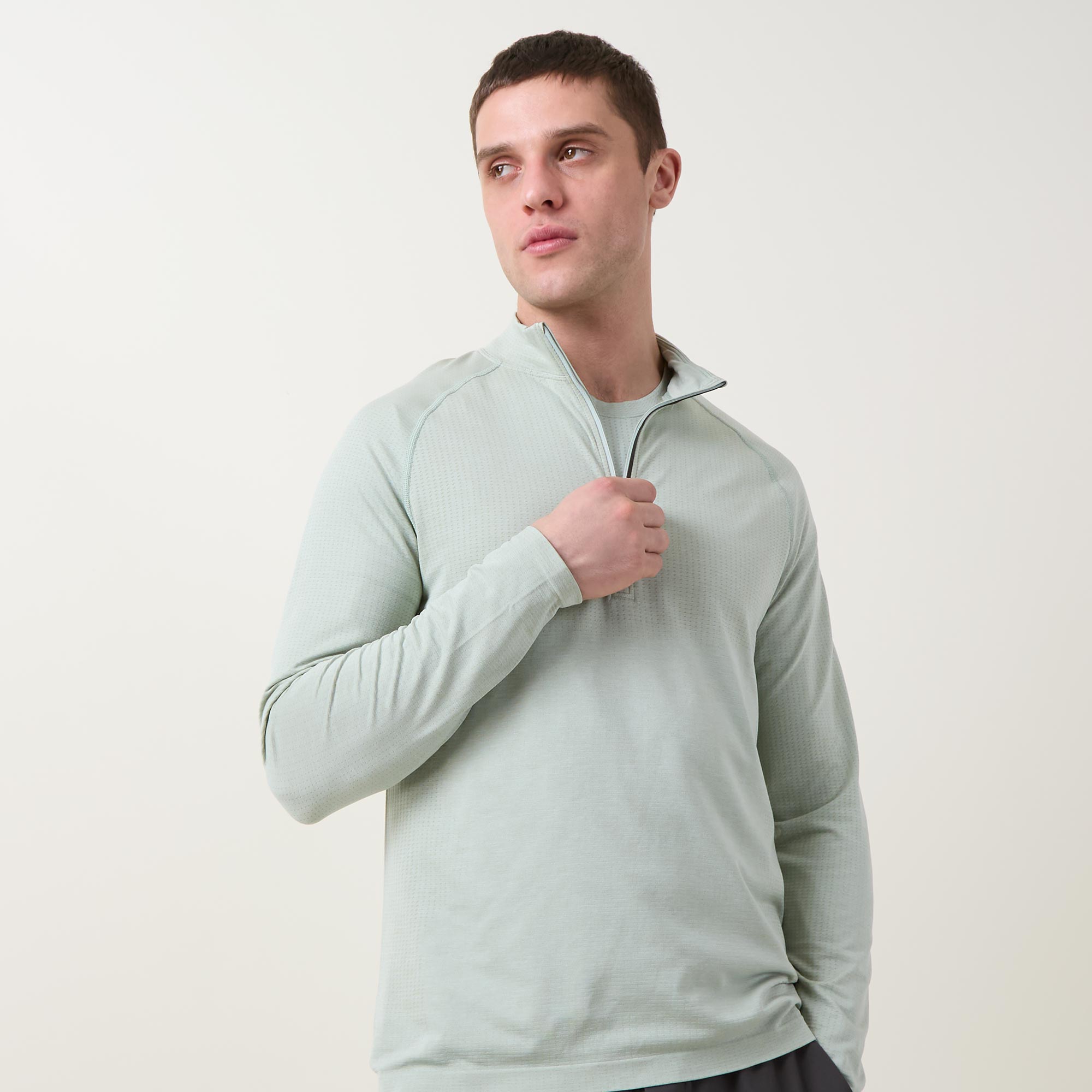 Time to run. Powered by seamless construction, this ventilated, mid-weight half-zip keeps air flowing from first to last mile.