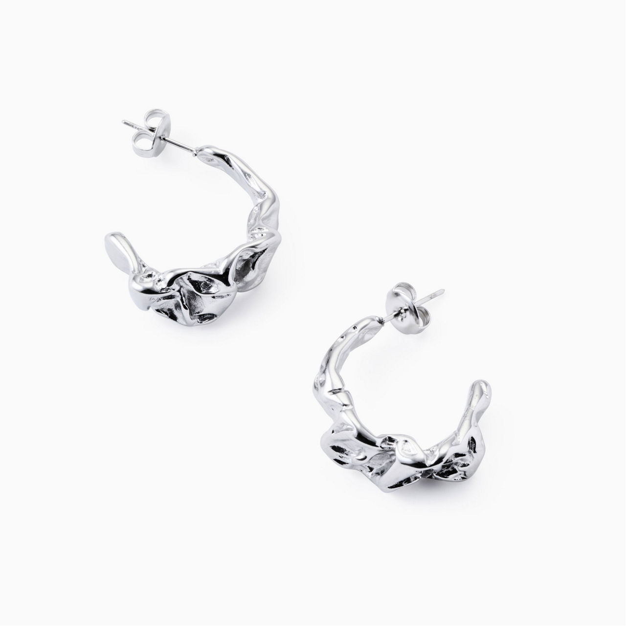 - Hoop-style, high shine, textured design, post and butterfly back fastenings, silver-tone finish, tarnish-resistant, water-resistant, and green-proof for lasting wear, comes with a reusable branded pouch