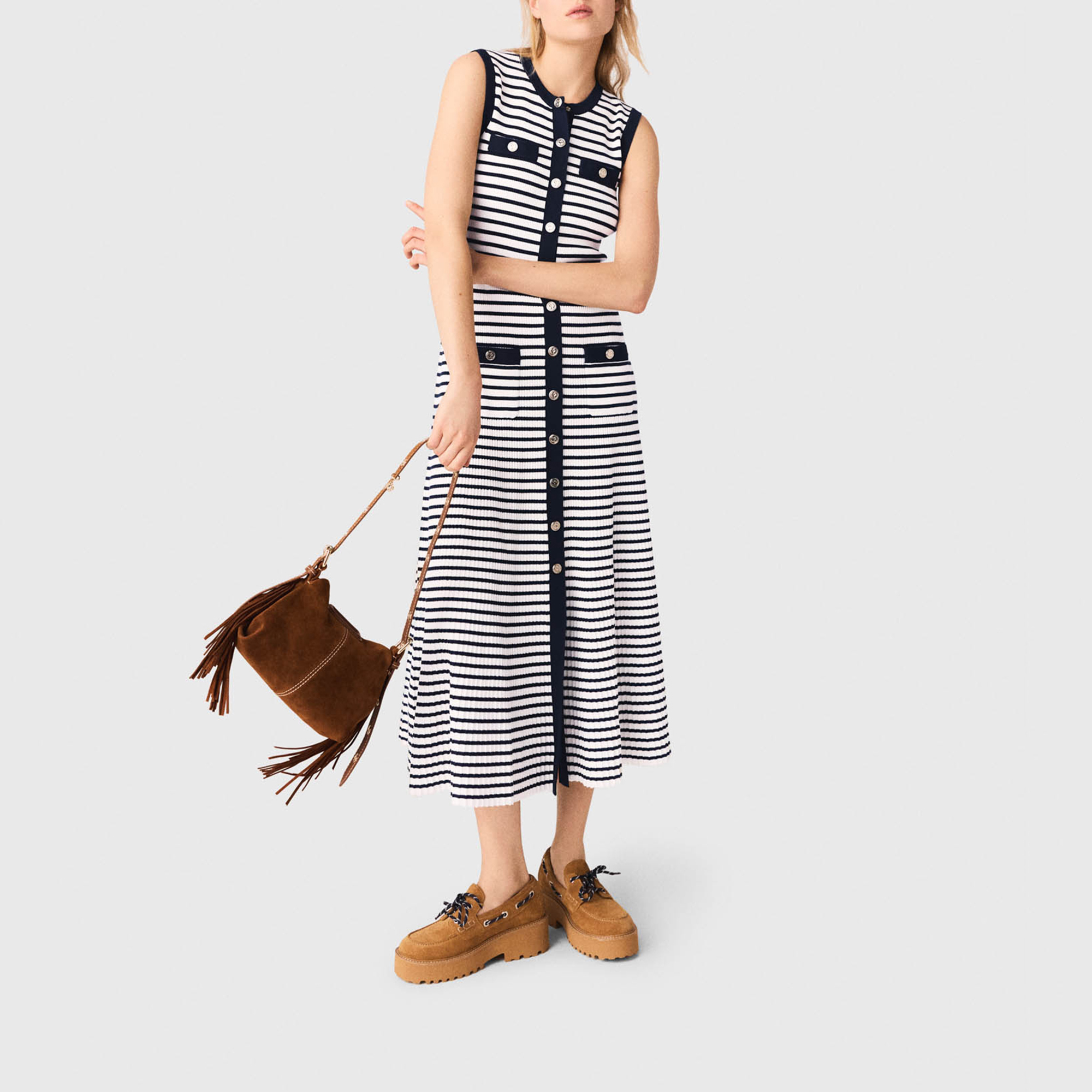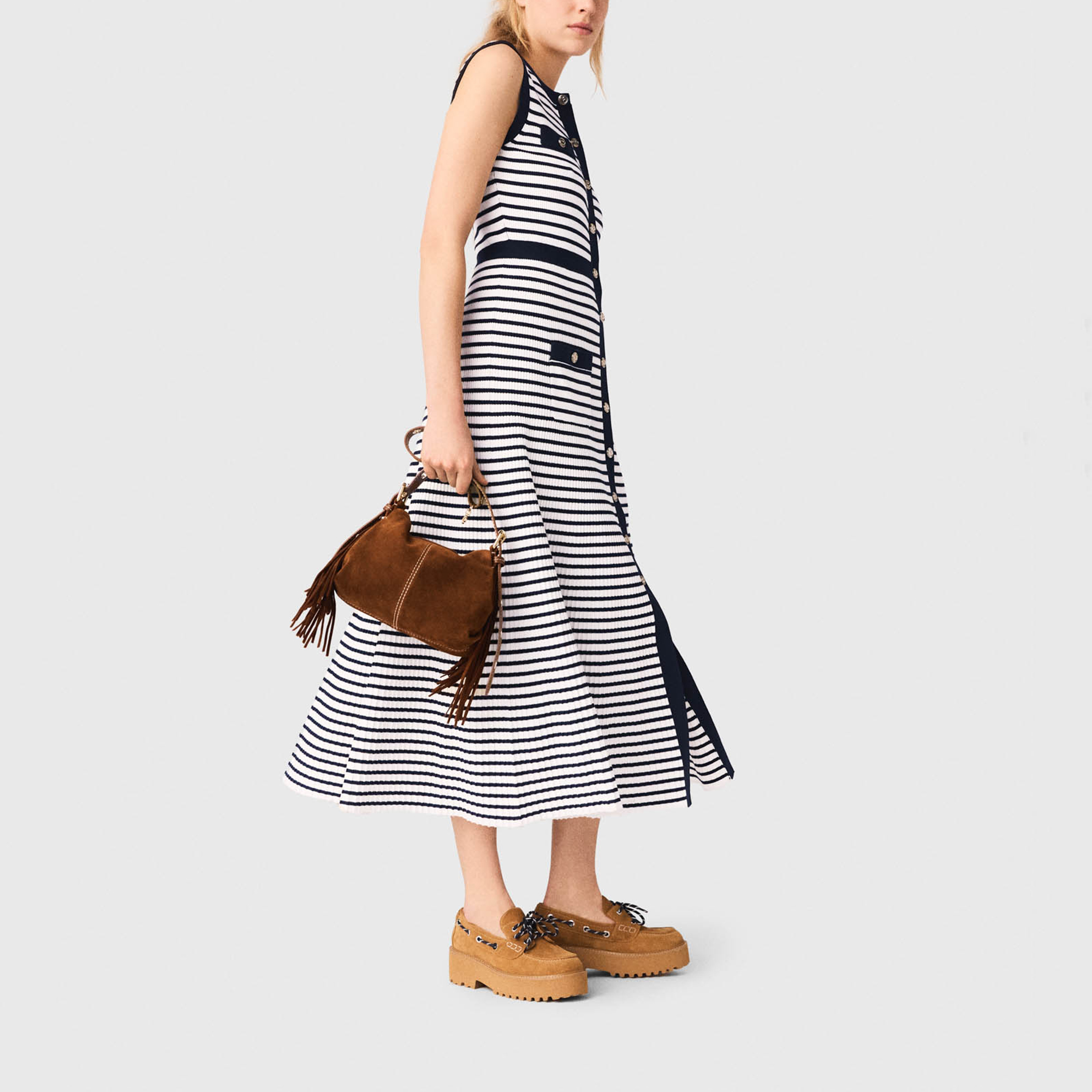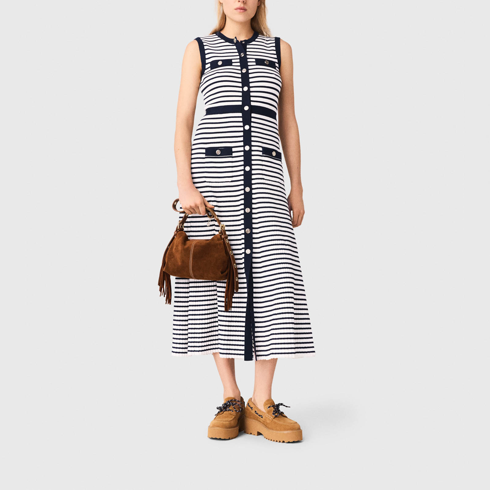 MAJE Breton Stripe knitted Flared Dress