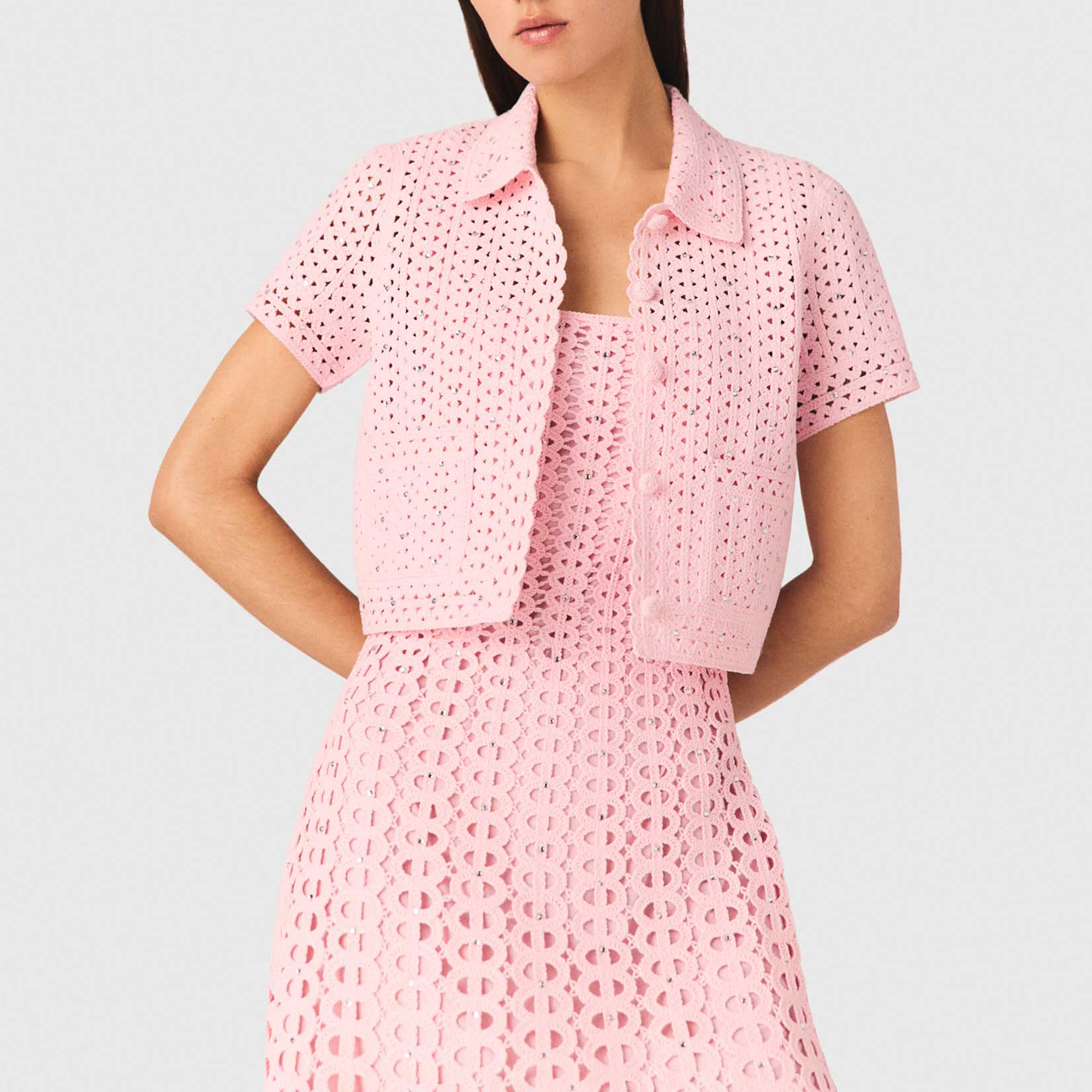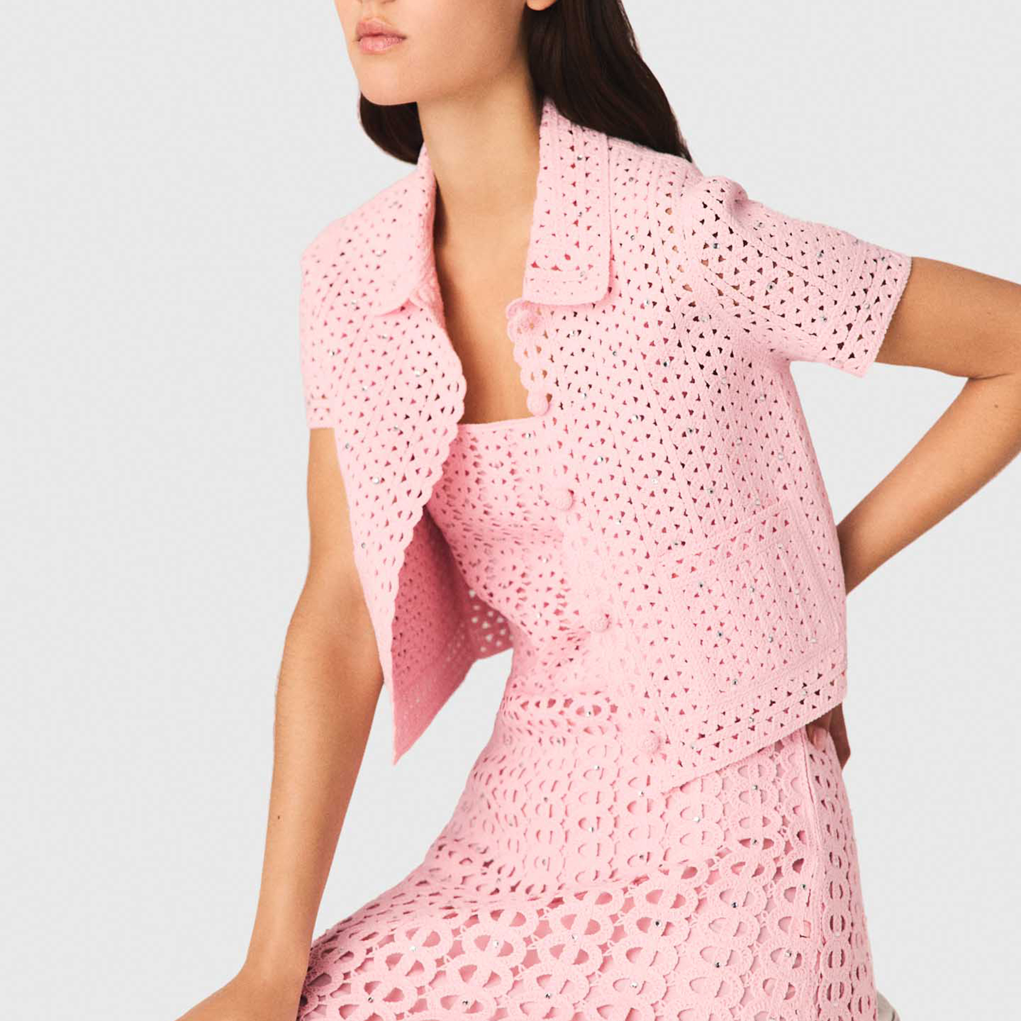 MAJE Embellished Crochet Cardigan