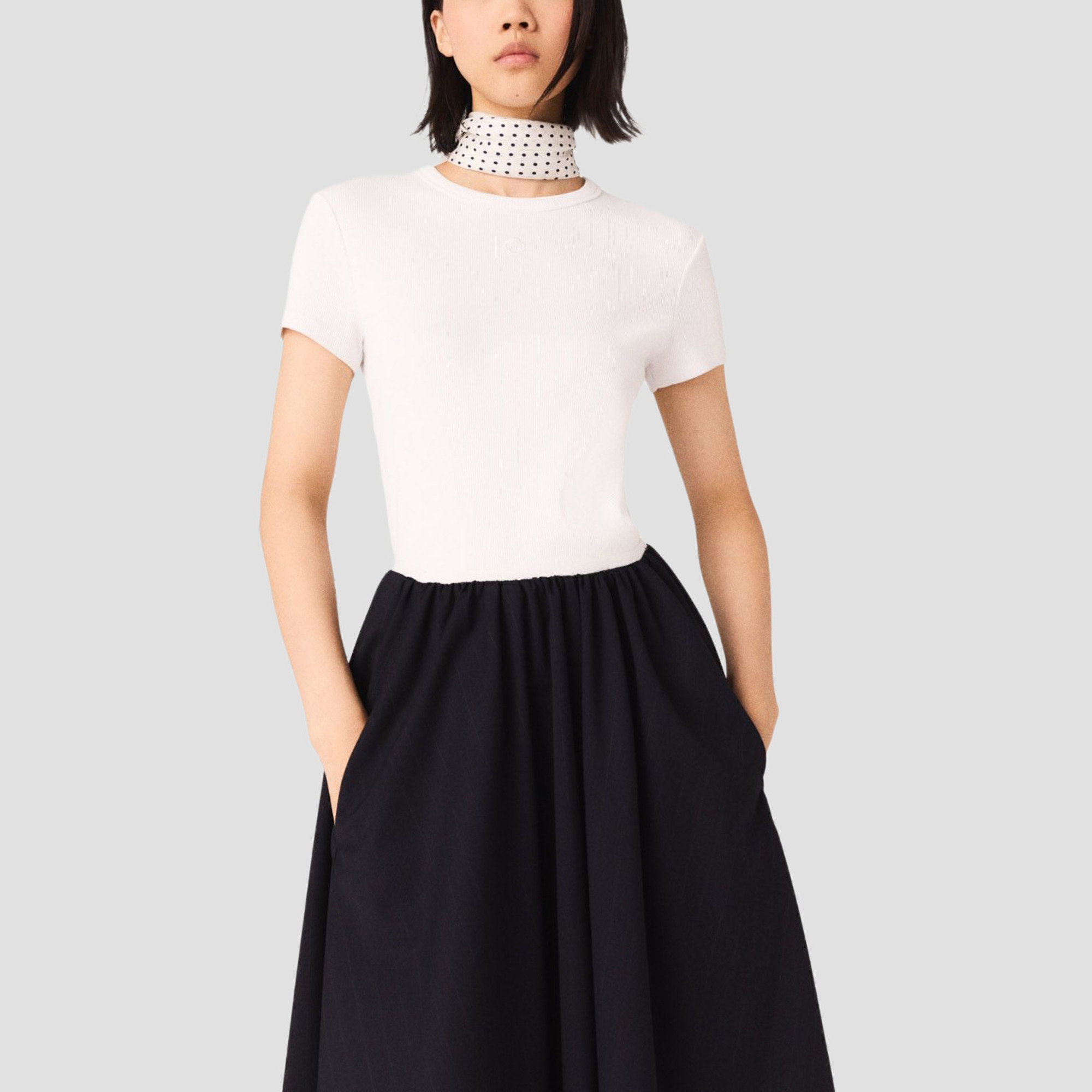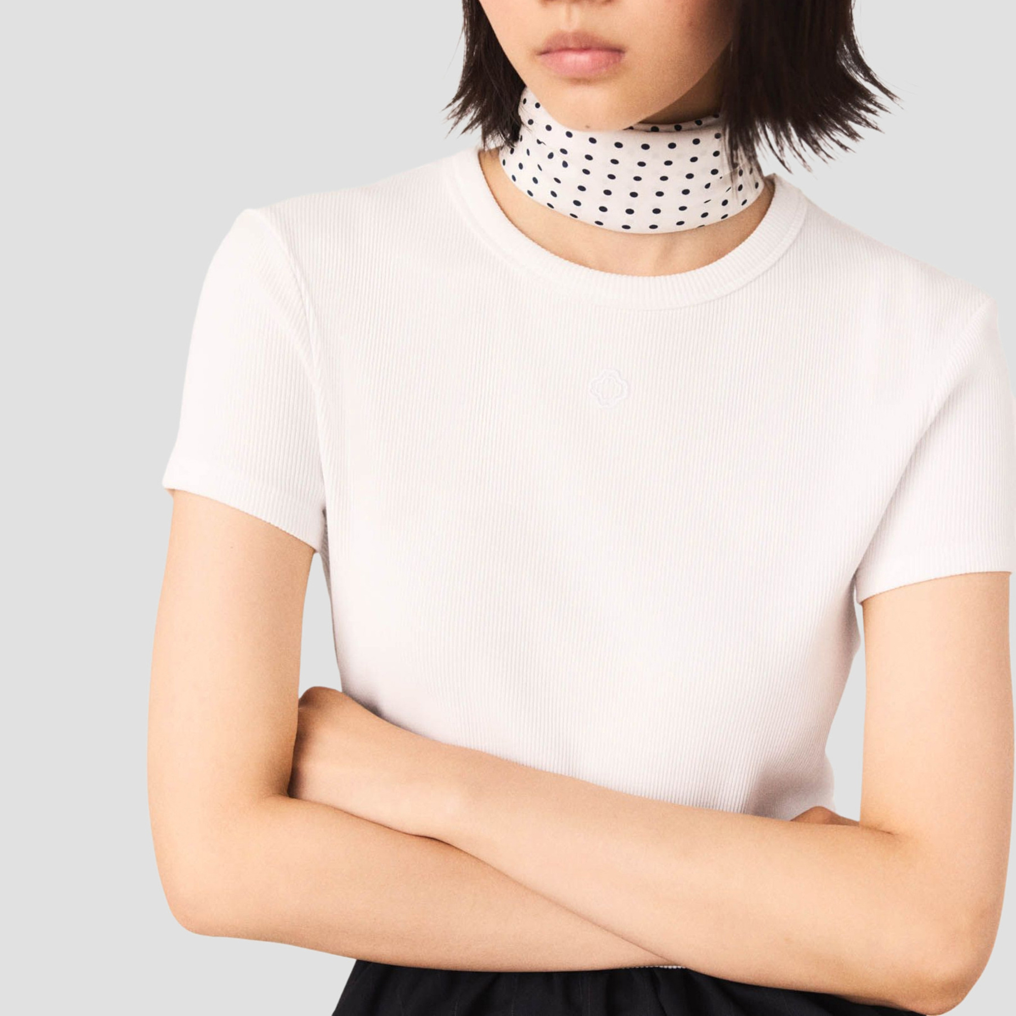 MAJE Embroidered Logo Ribbed T-Shirt