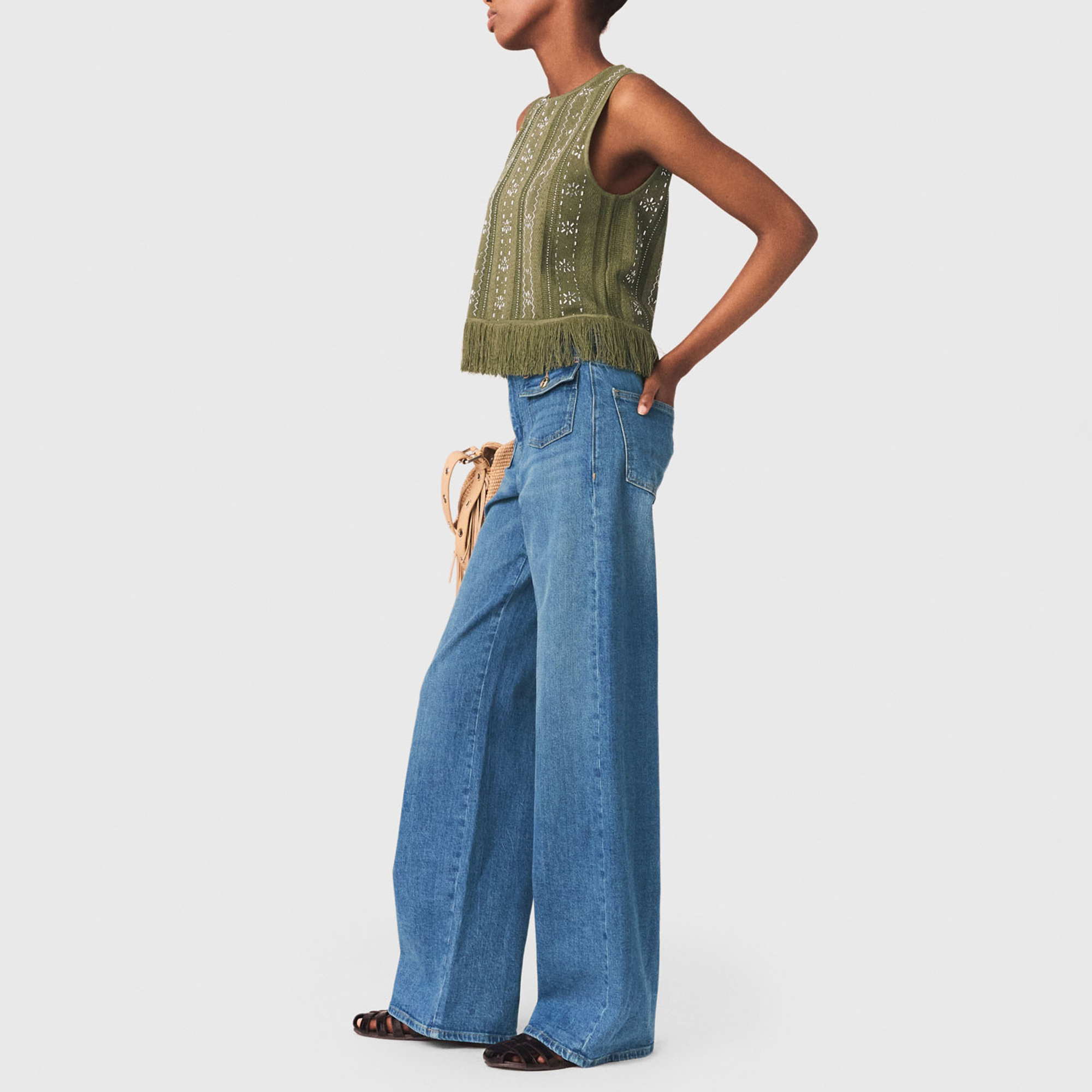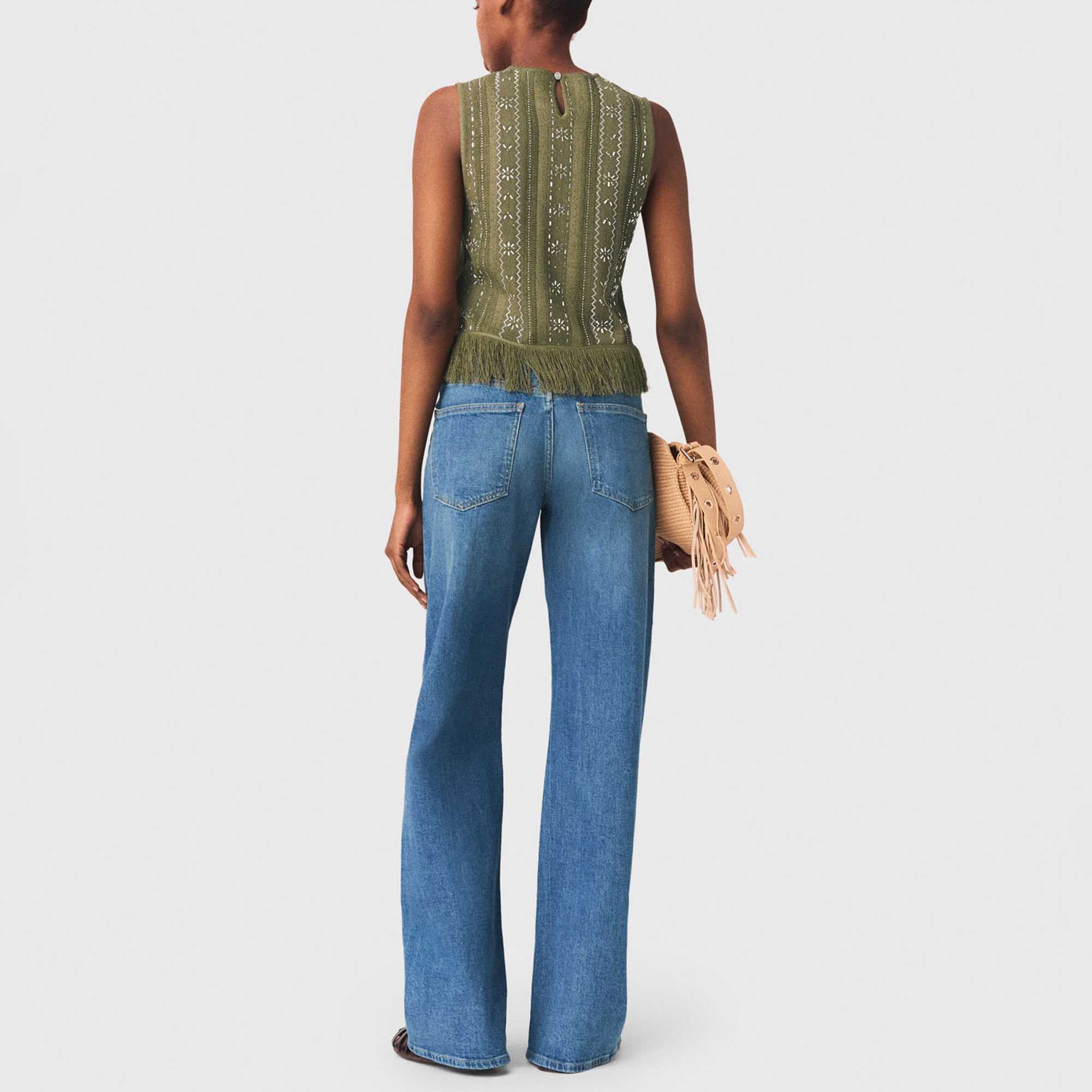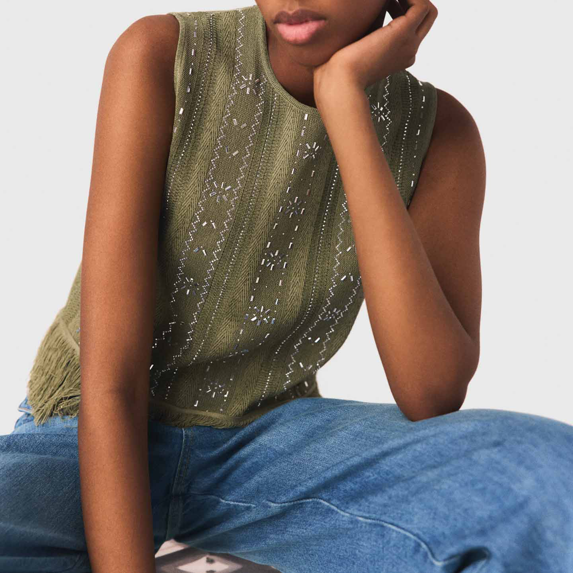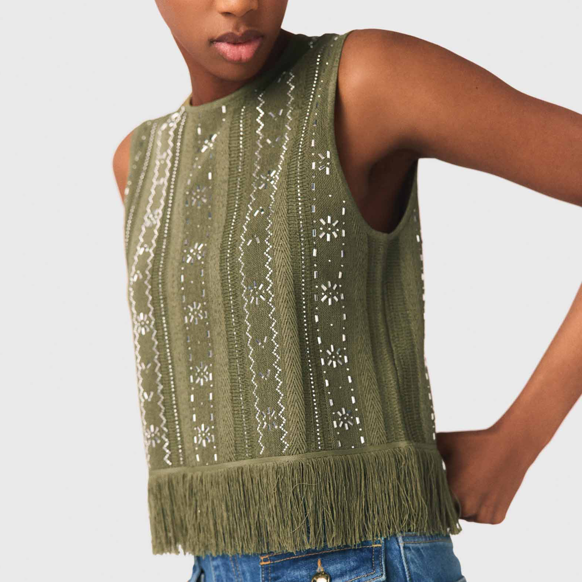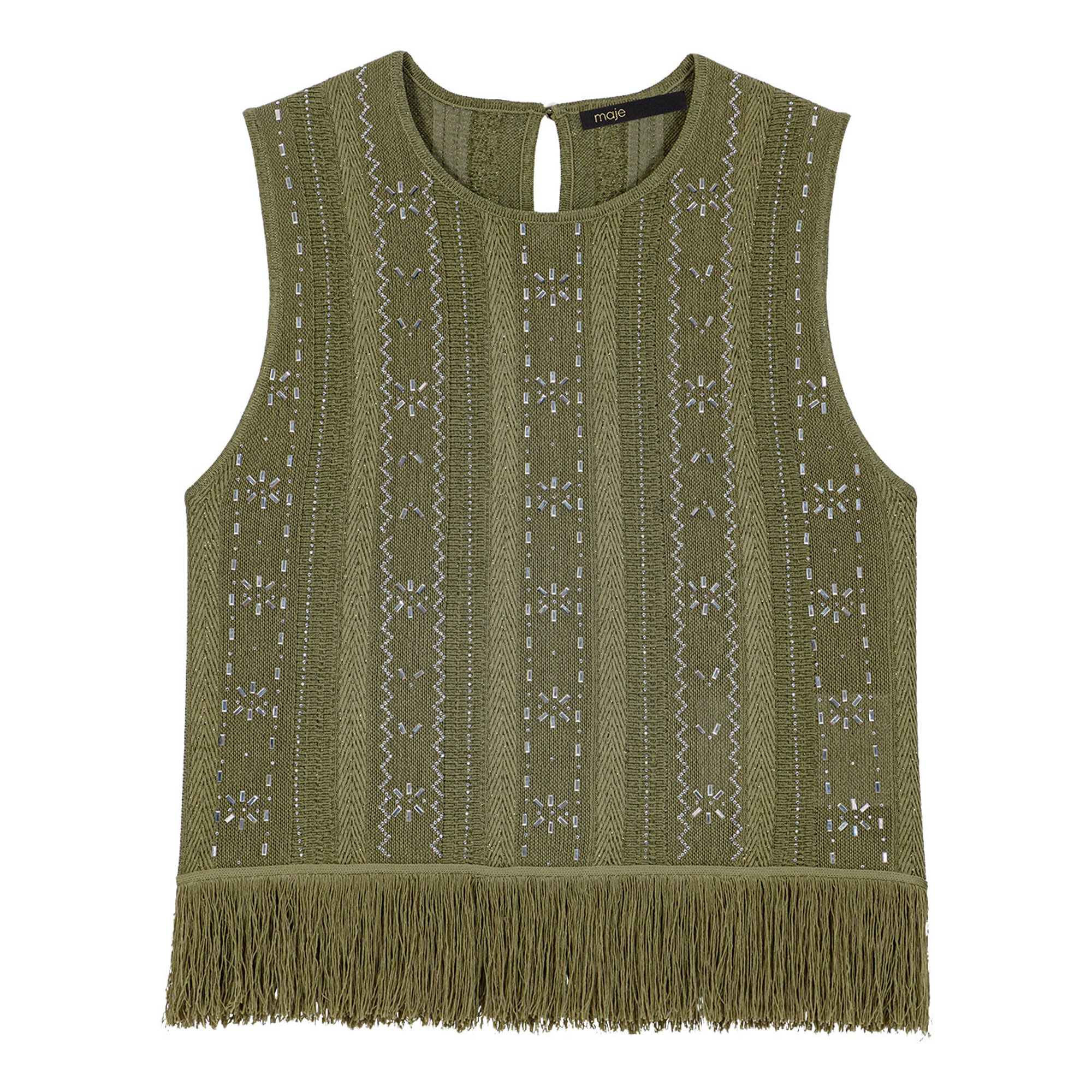 MAJE Floral Rhinestone Fringed Top