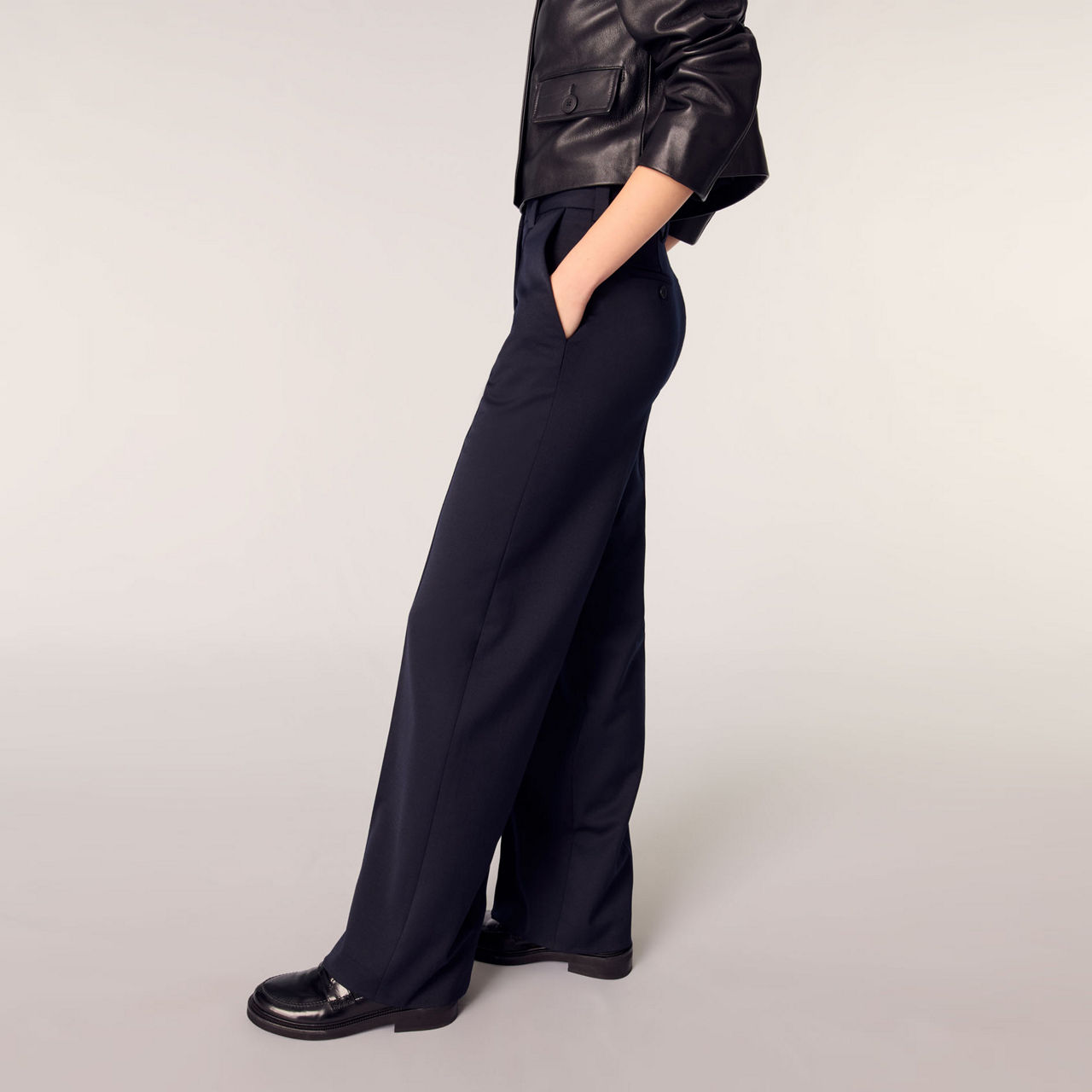 MAJE The Sustainable Edit Pintuck Mid-Rise Straight Leg Trousers