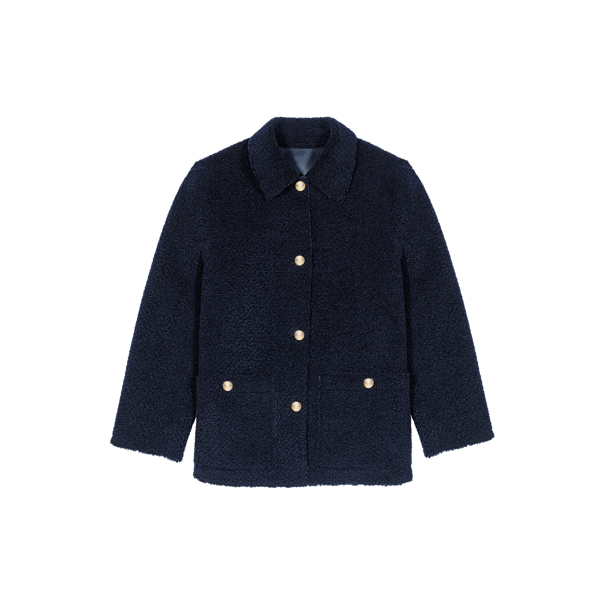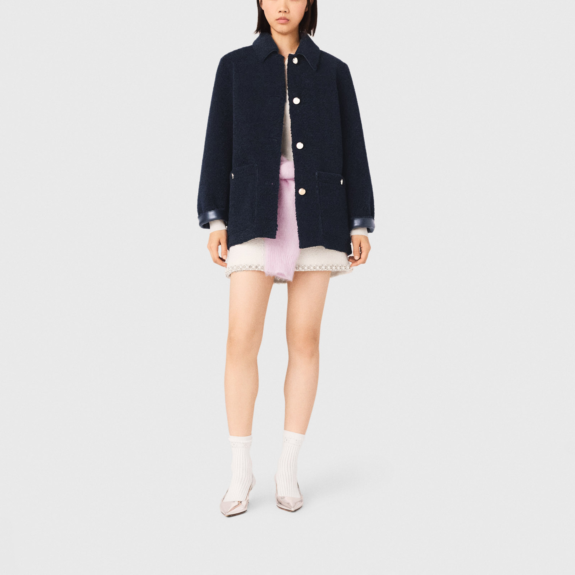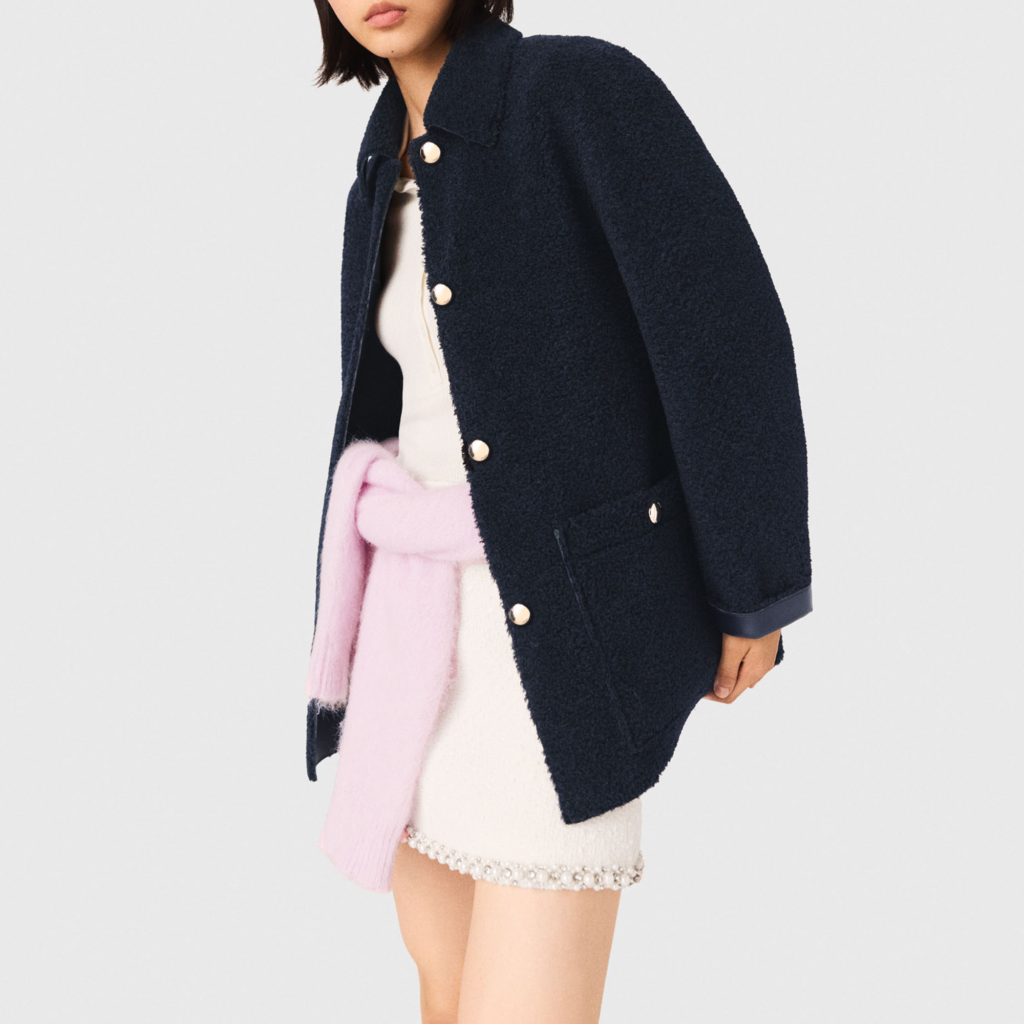 - Reversible, faux-leather side, bouclé faux-shearling side, large gold-tone metal buttons, two large pockets, buttoned flaps, contrasting trim