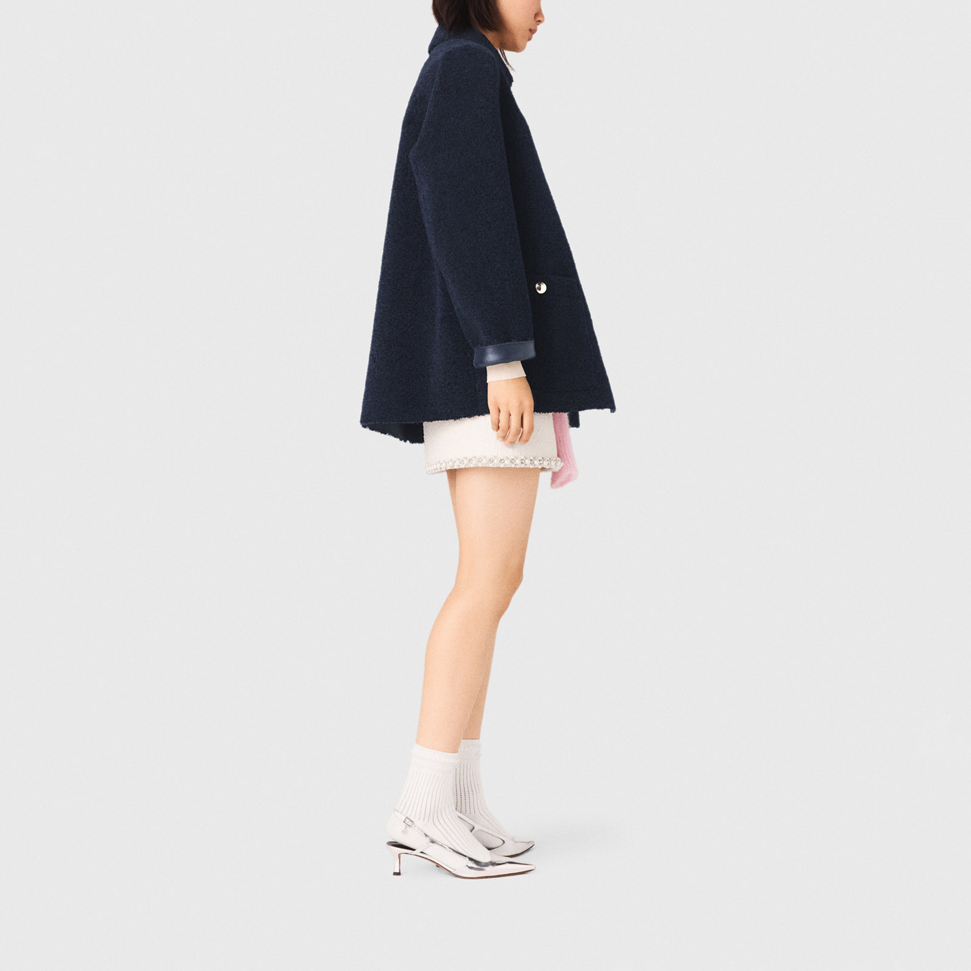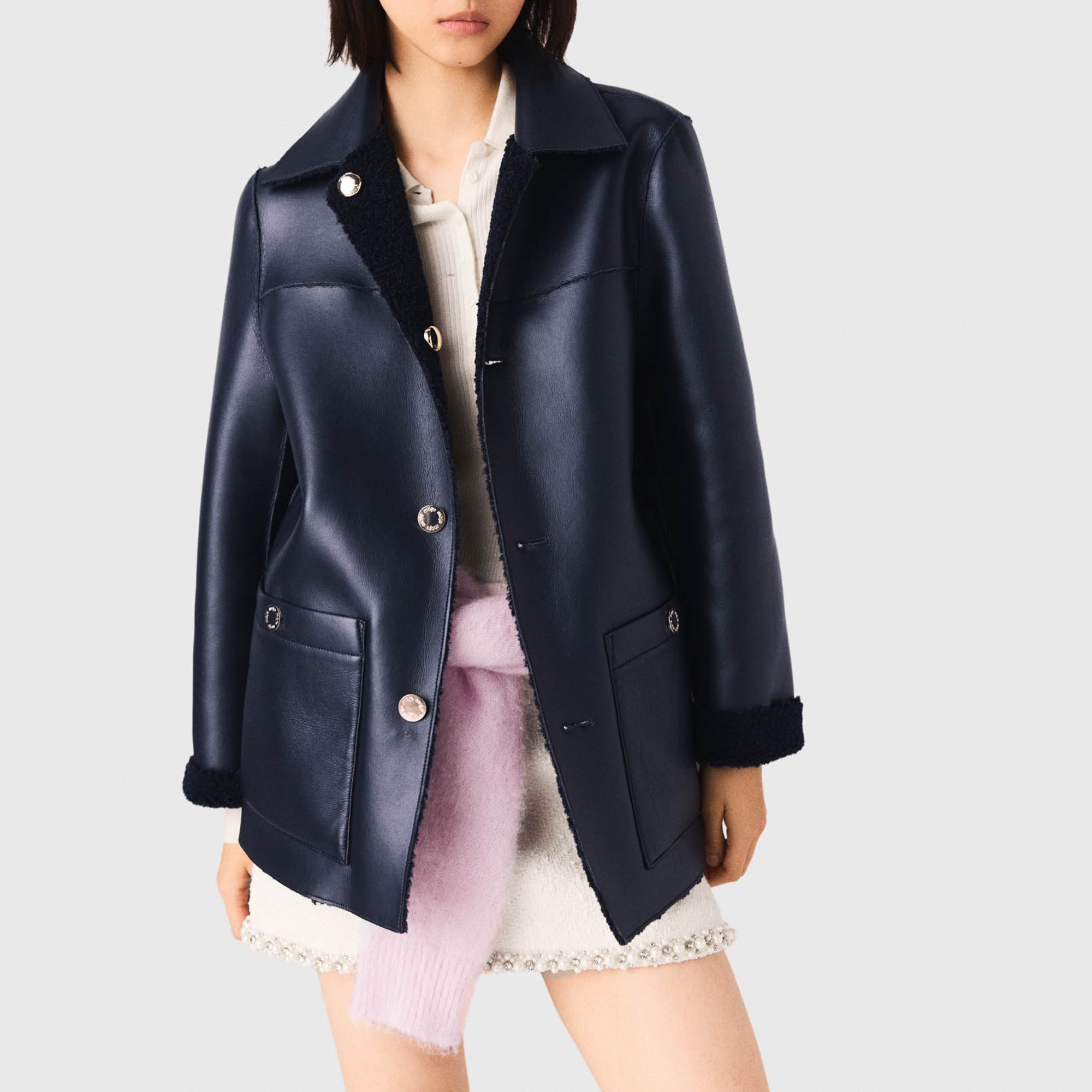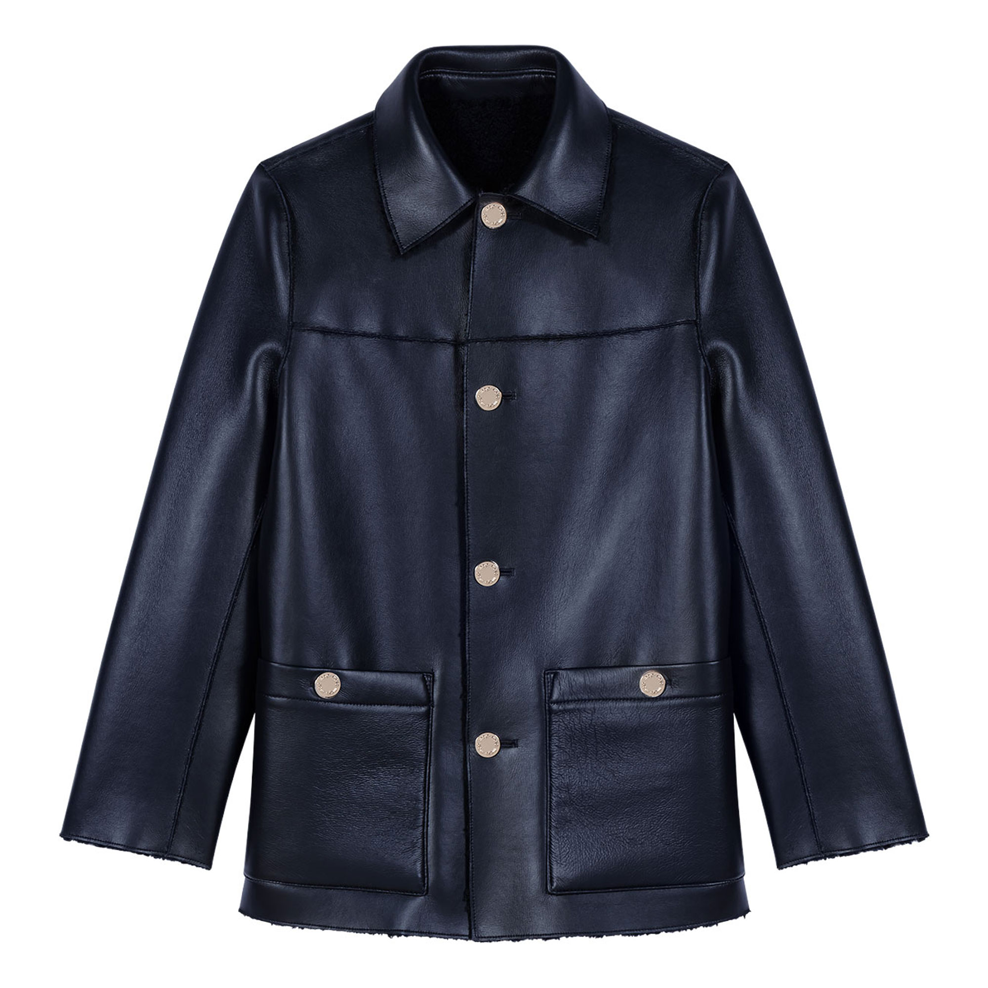 - Reversible, faux-leather side, bouclé faux-shearling side, large gold-tone metal buttons, two large pockets, buttoned flaps, contrasting trim