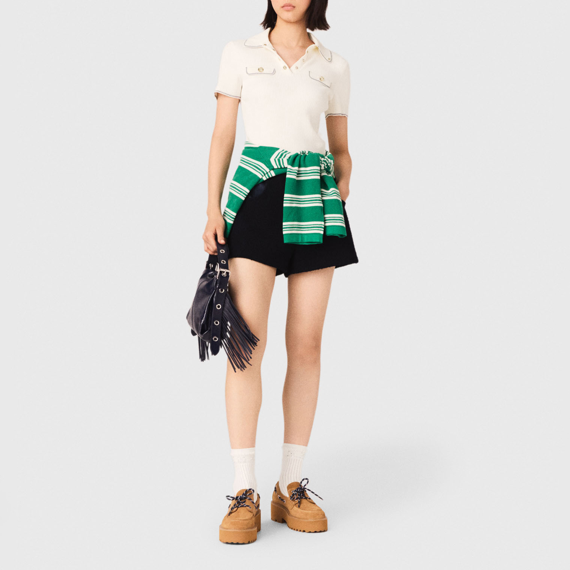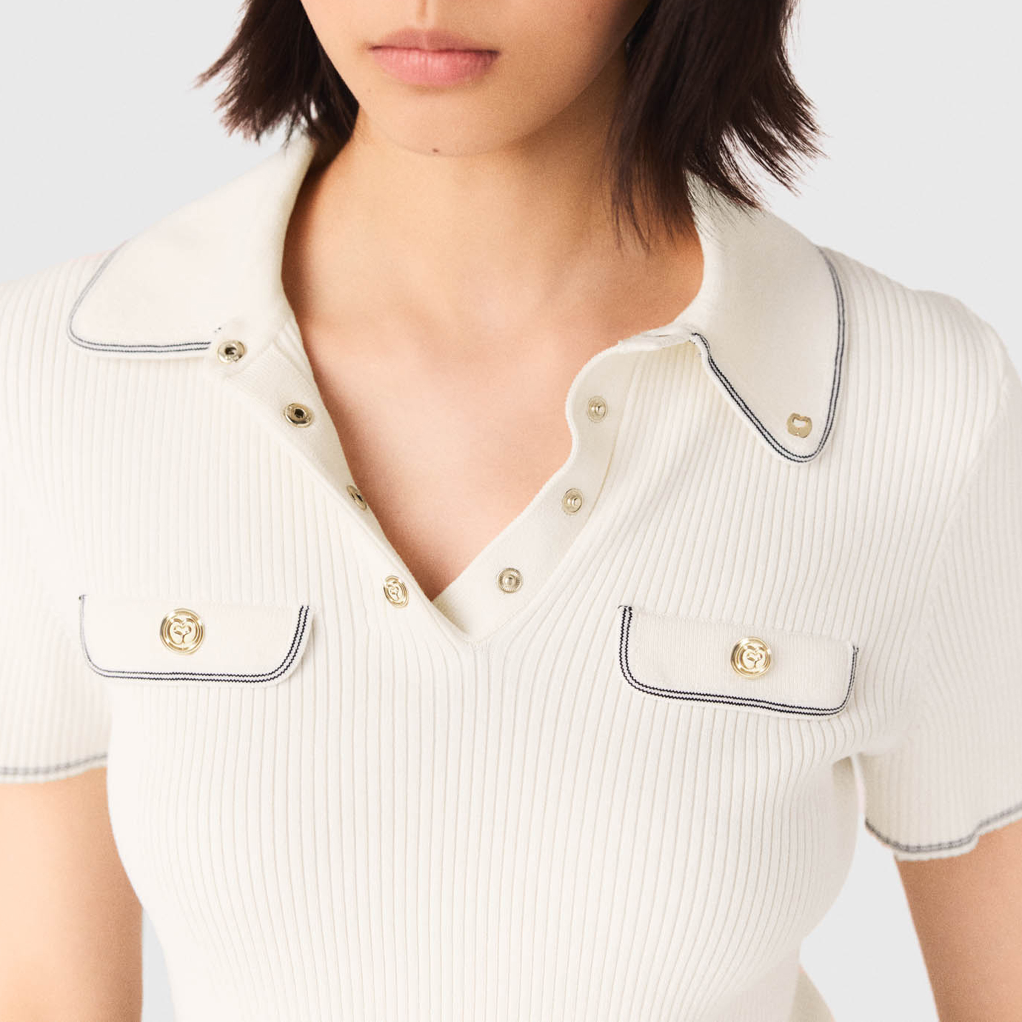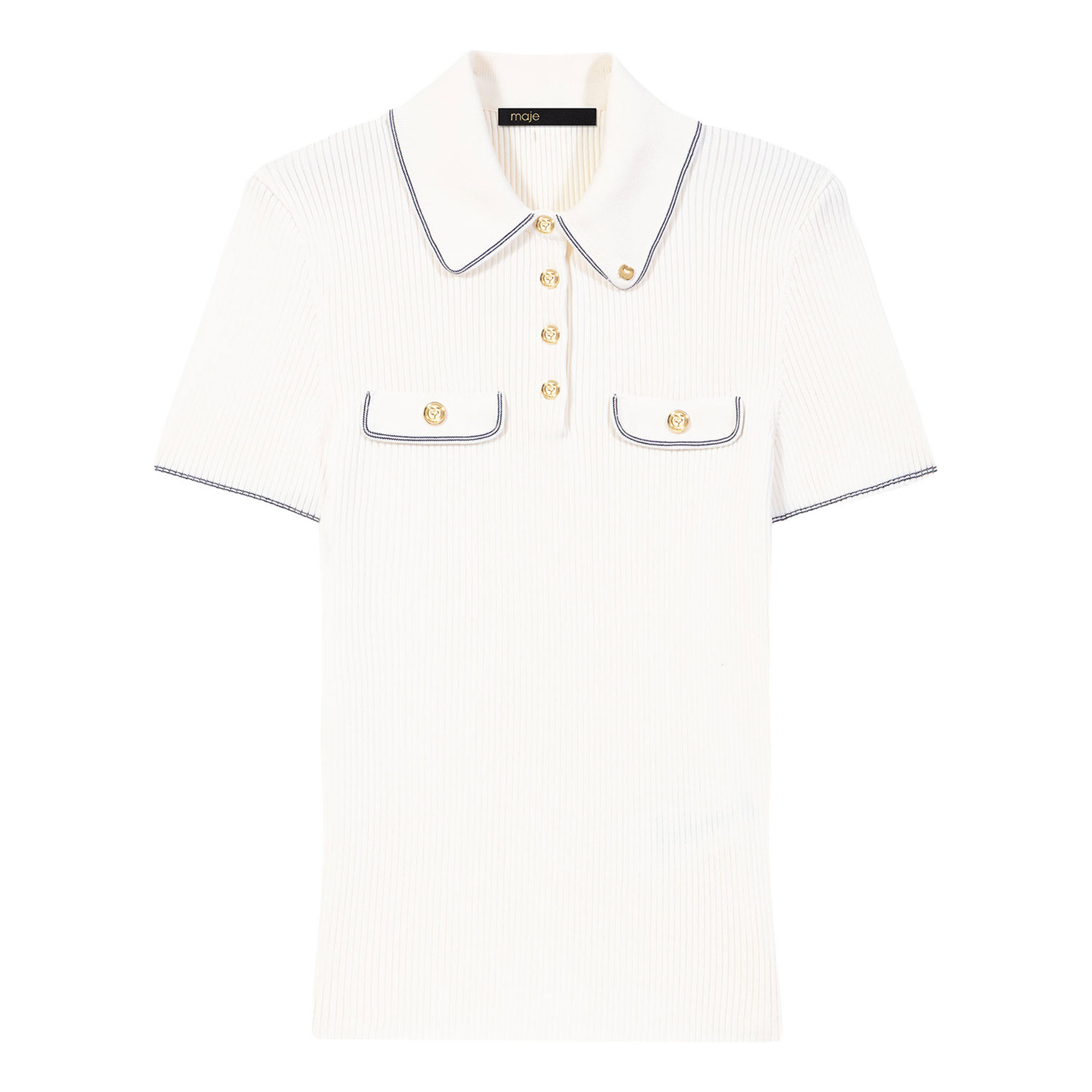 MAJE Ribbed Knitted Polo Shirt