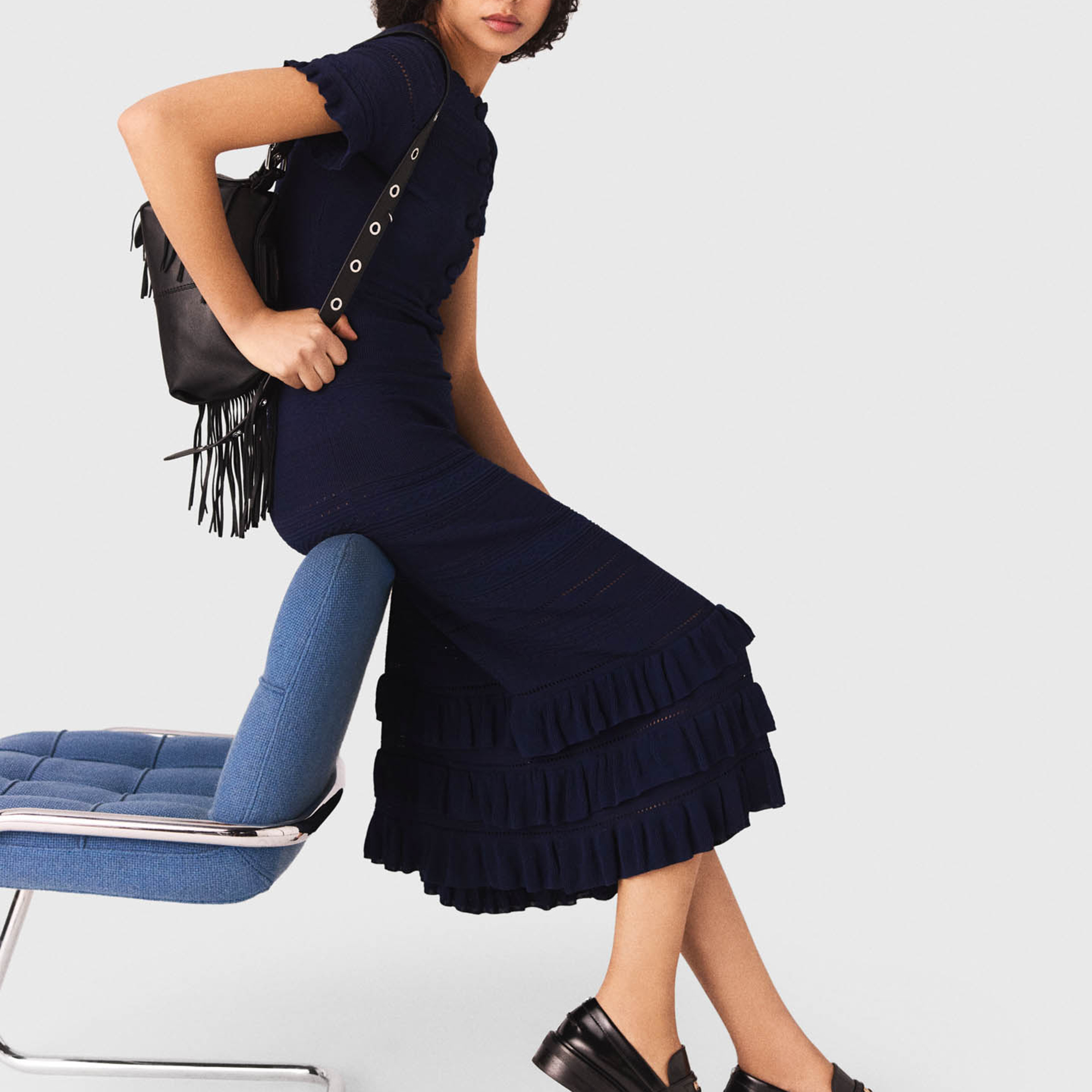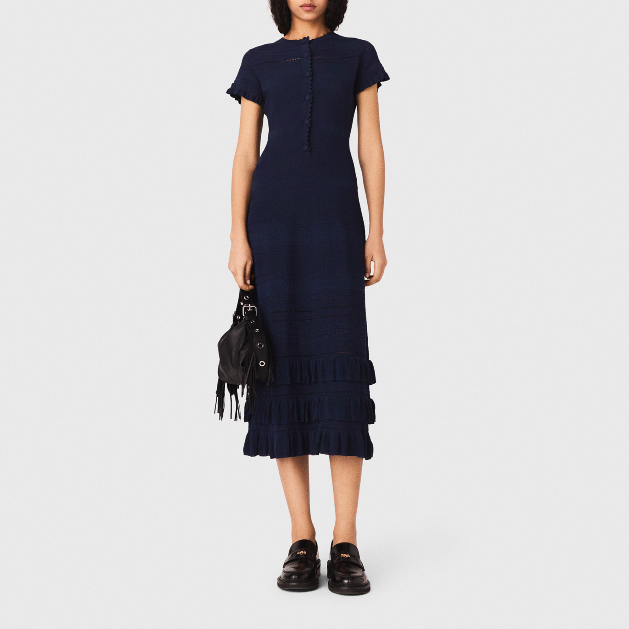 MAJE Ruffle Trim Knitted Dress