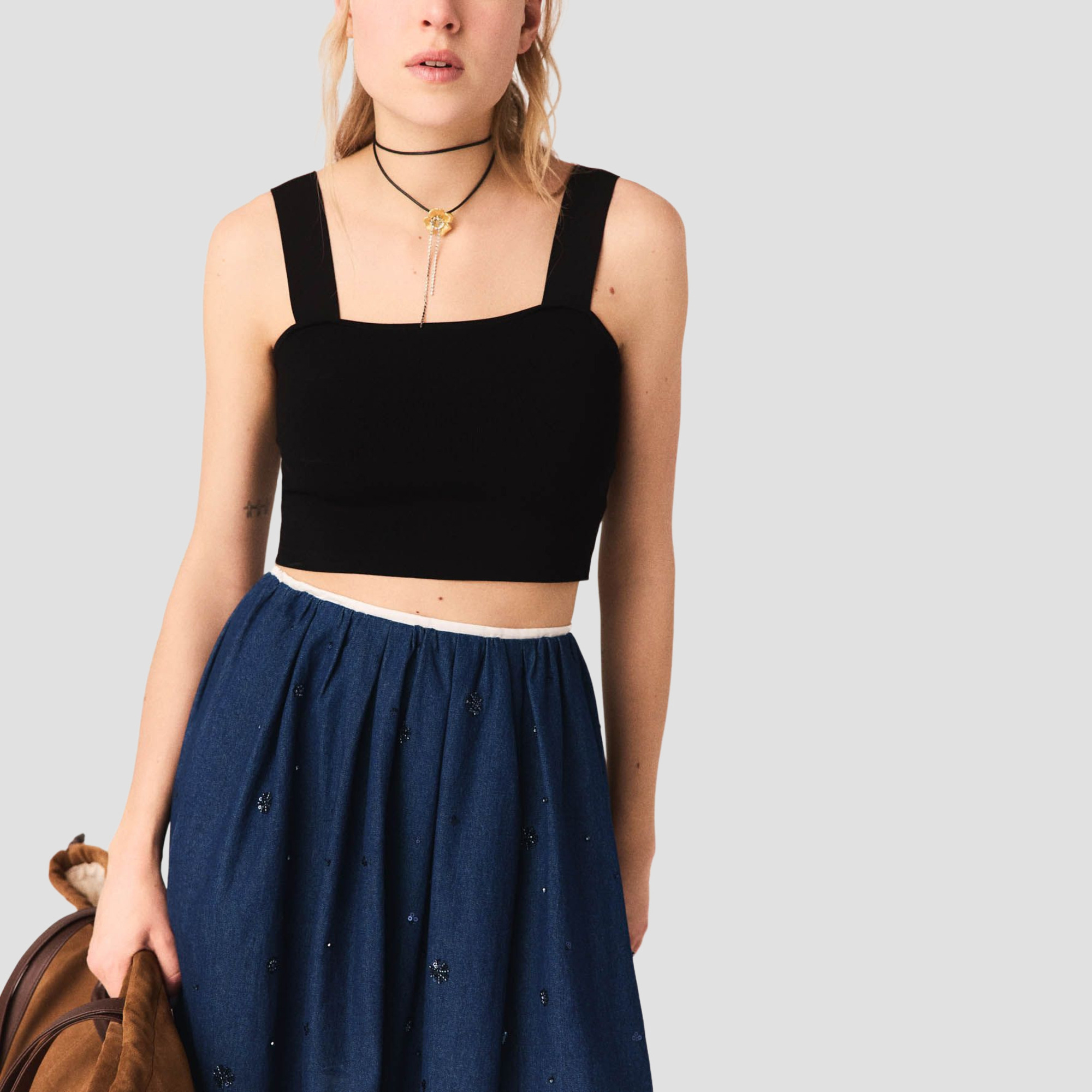 • Composition and Care: Main: 68% viscose, 30% polyamide, 2% elastane. Strap: 81% viscose, 19% polyamide. Hand wash