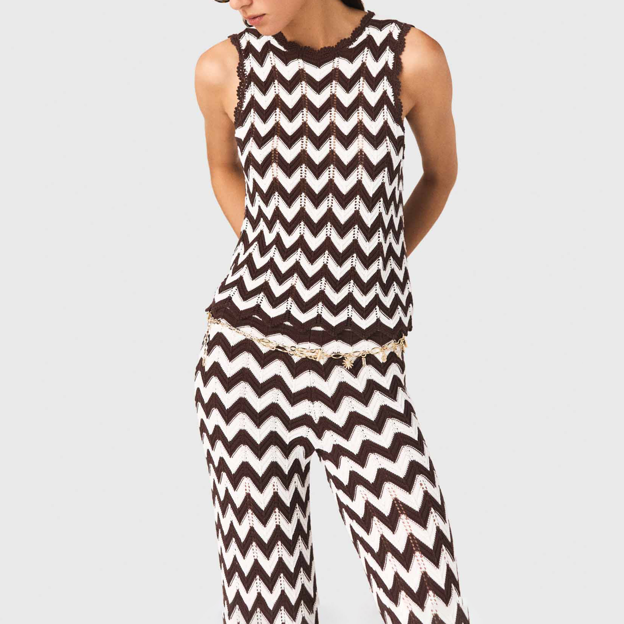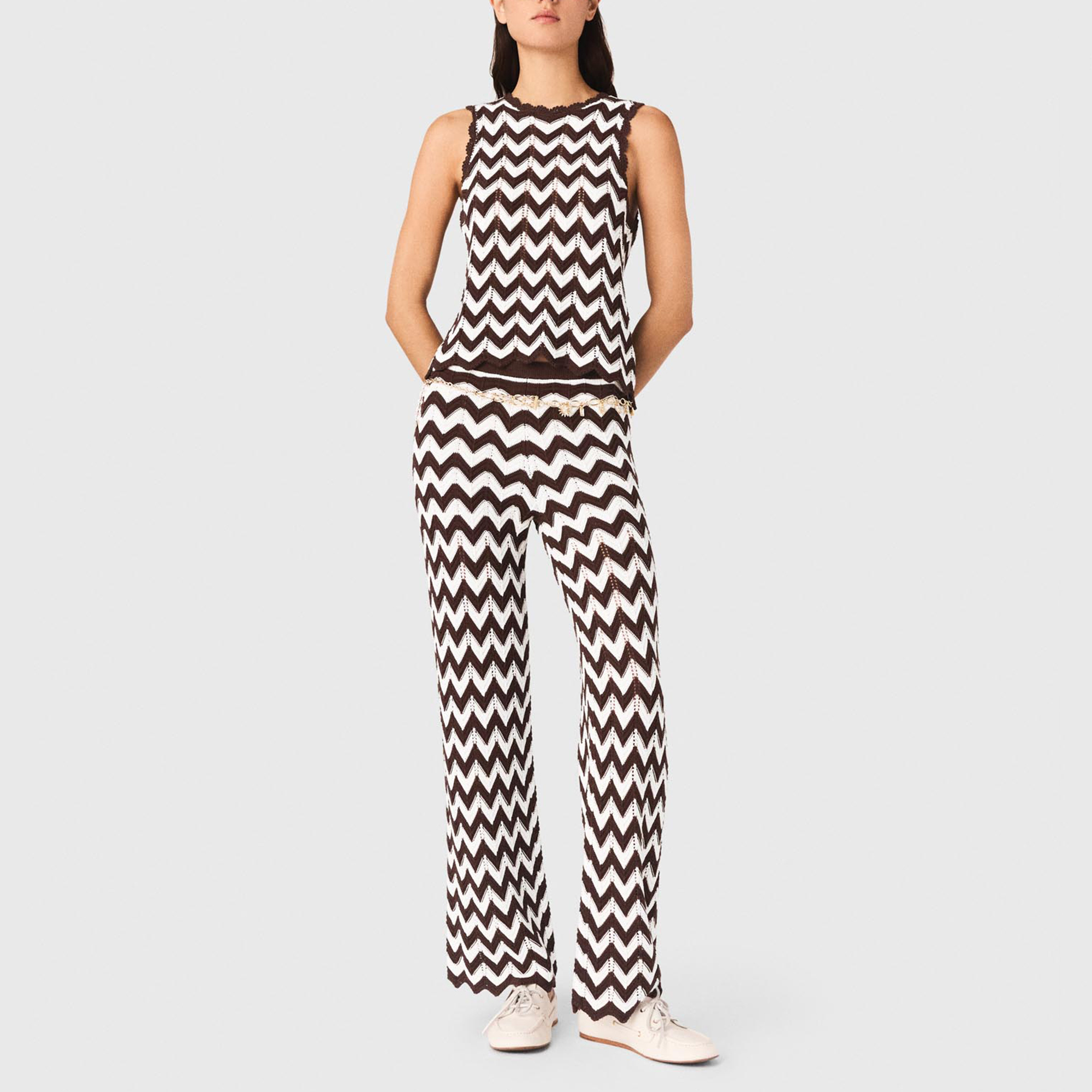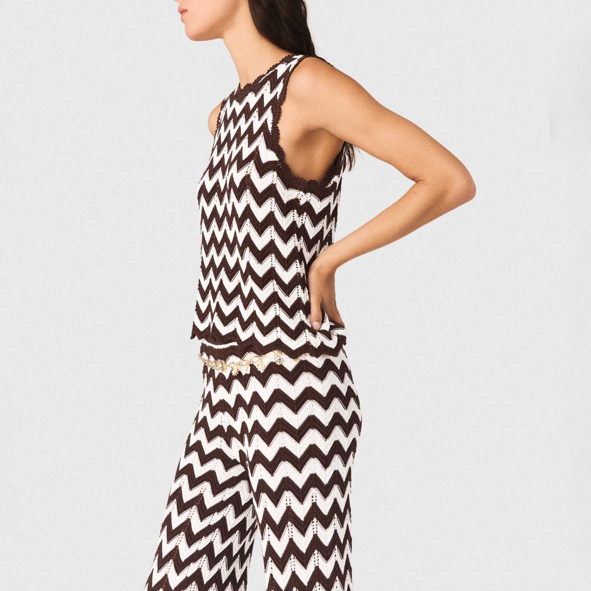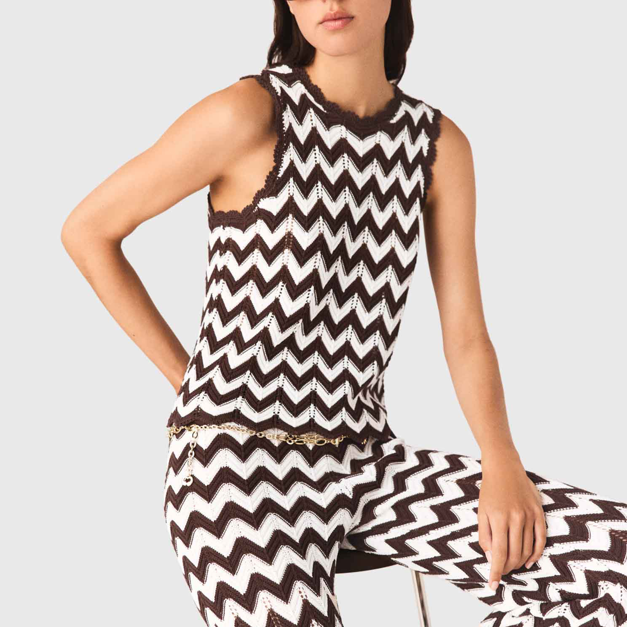 MAJE Zig Zag Crochet Tank Top
