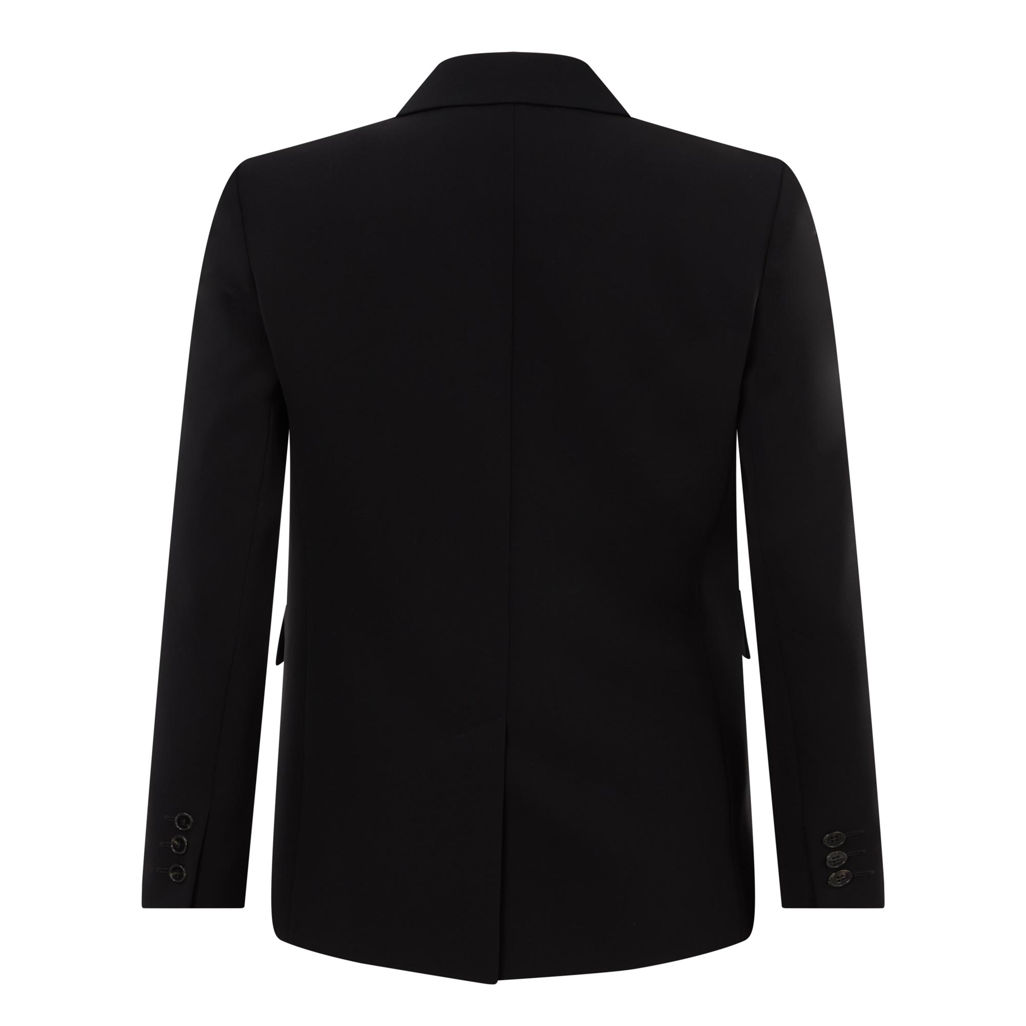 • Double-breasted, button fastening, notched lapels, chest pocket, flap pockets, buttoned cuffs, darted side panels on the front and back, slit to the rear