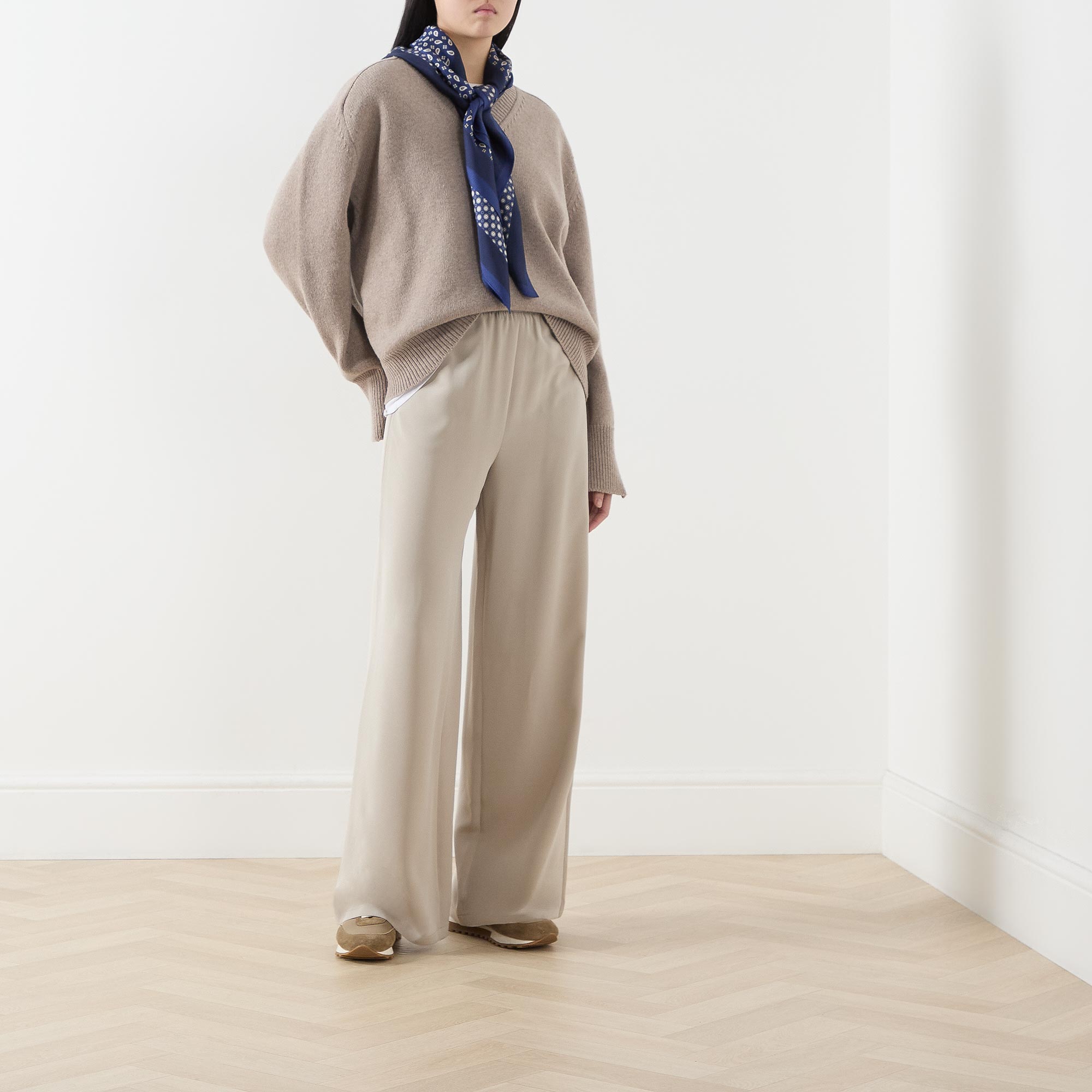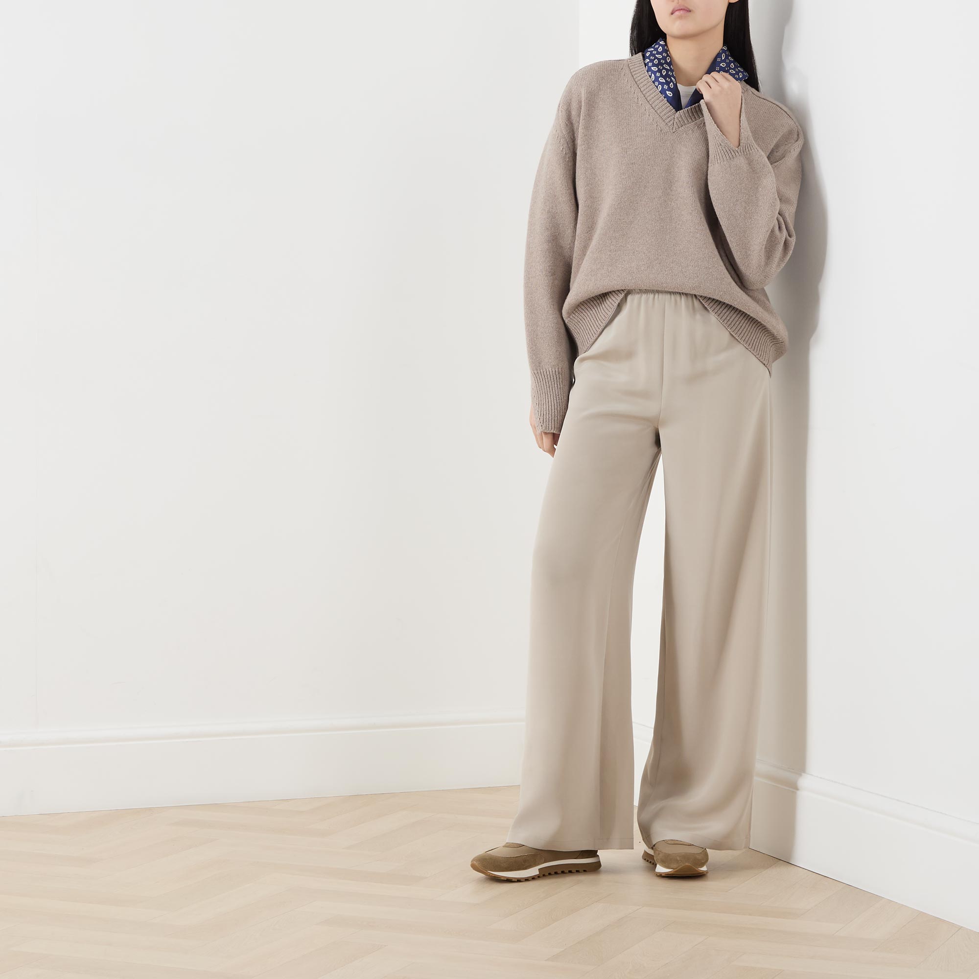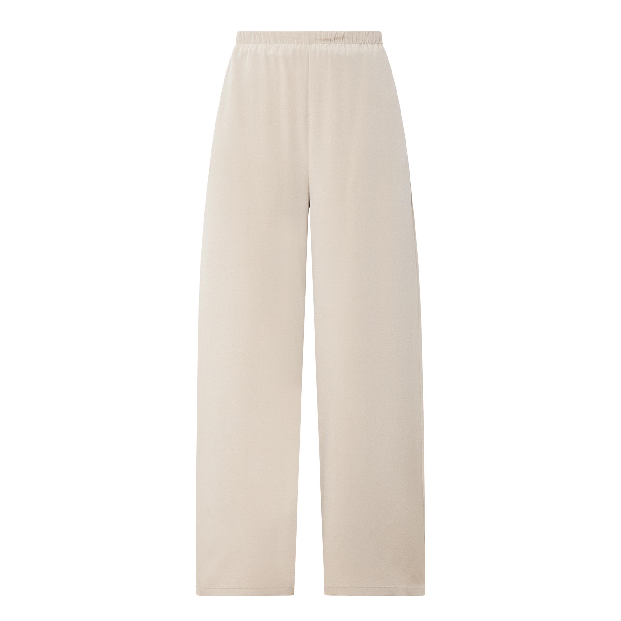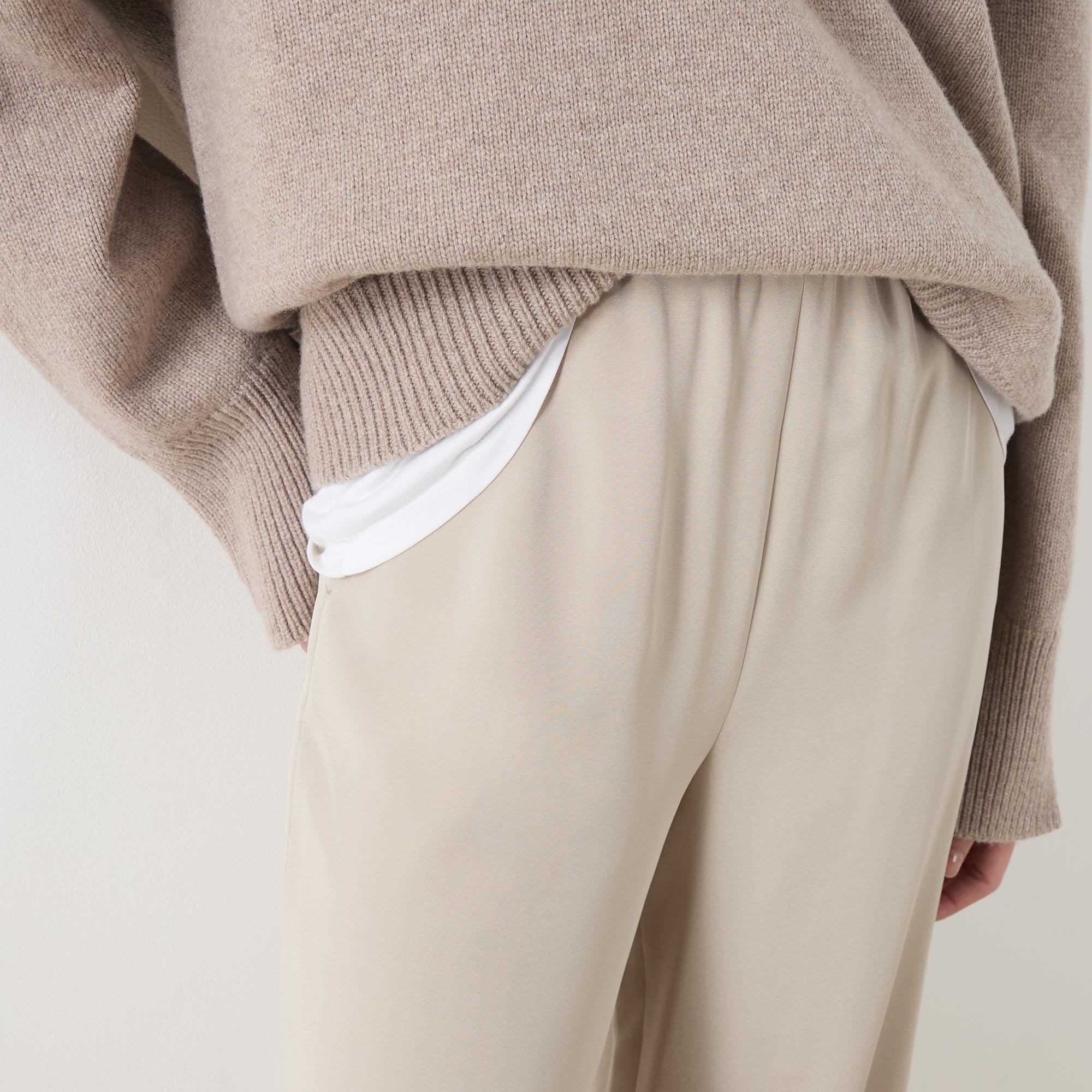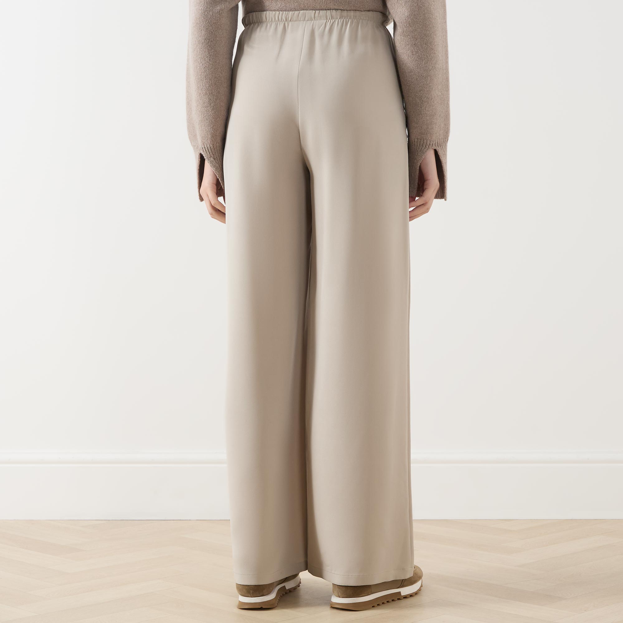 - Elasticated waistband, side entry pockets, wide-cut leg, stretch-fused fabric