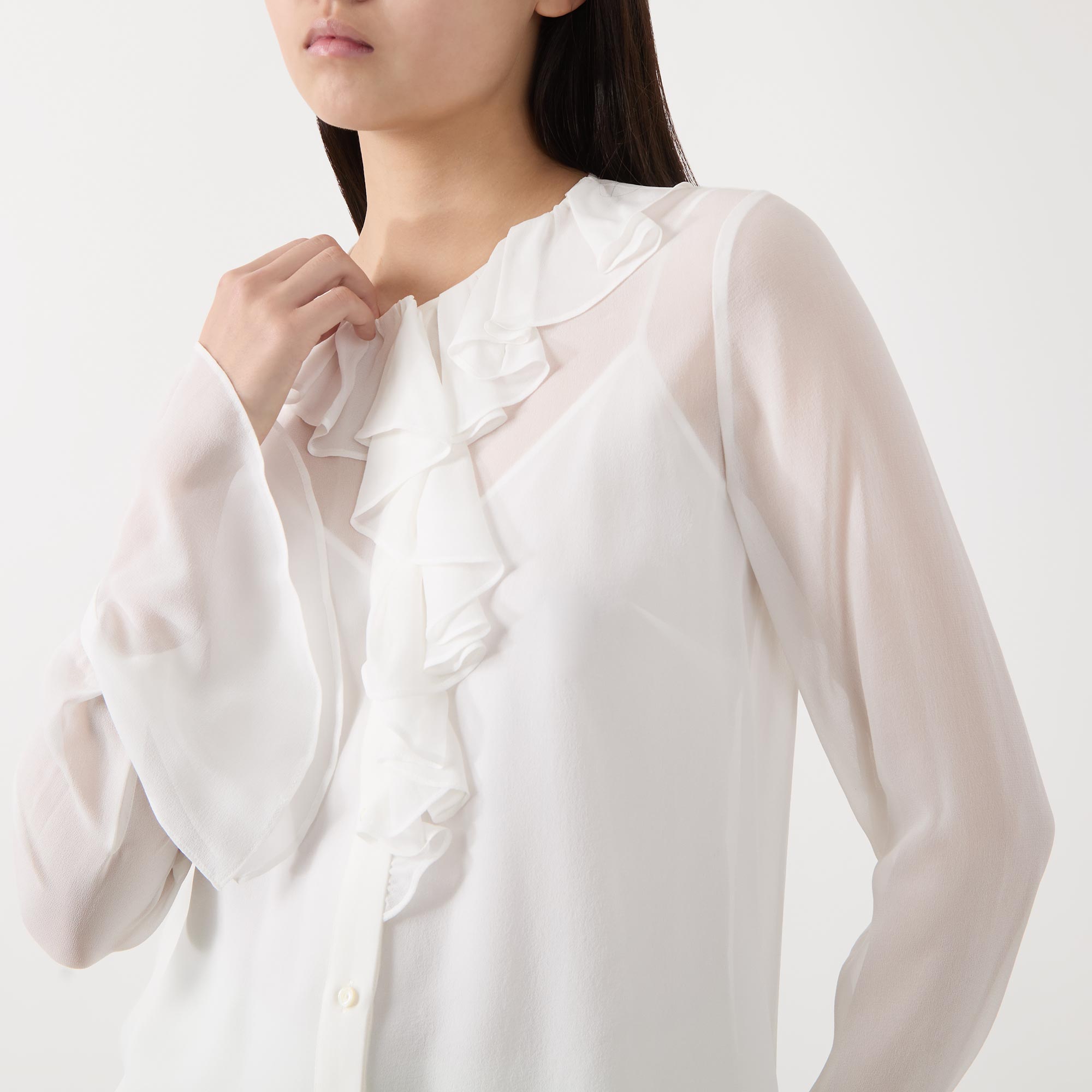 - Button fastenings, camisole underneath, long sleeves, ruffle detail, button fastenings